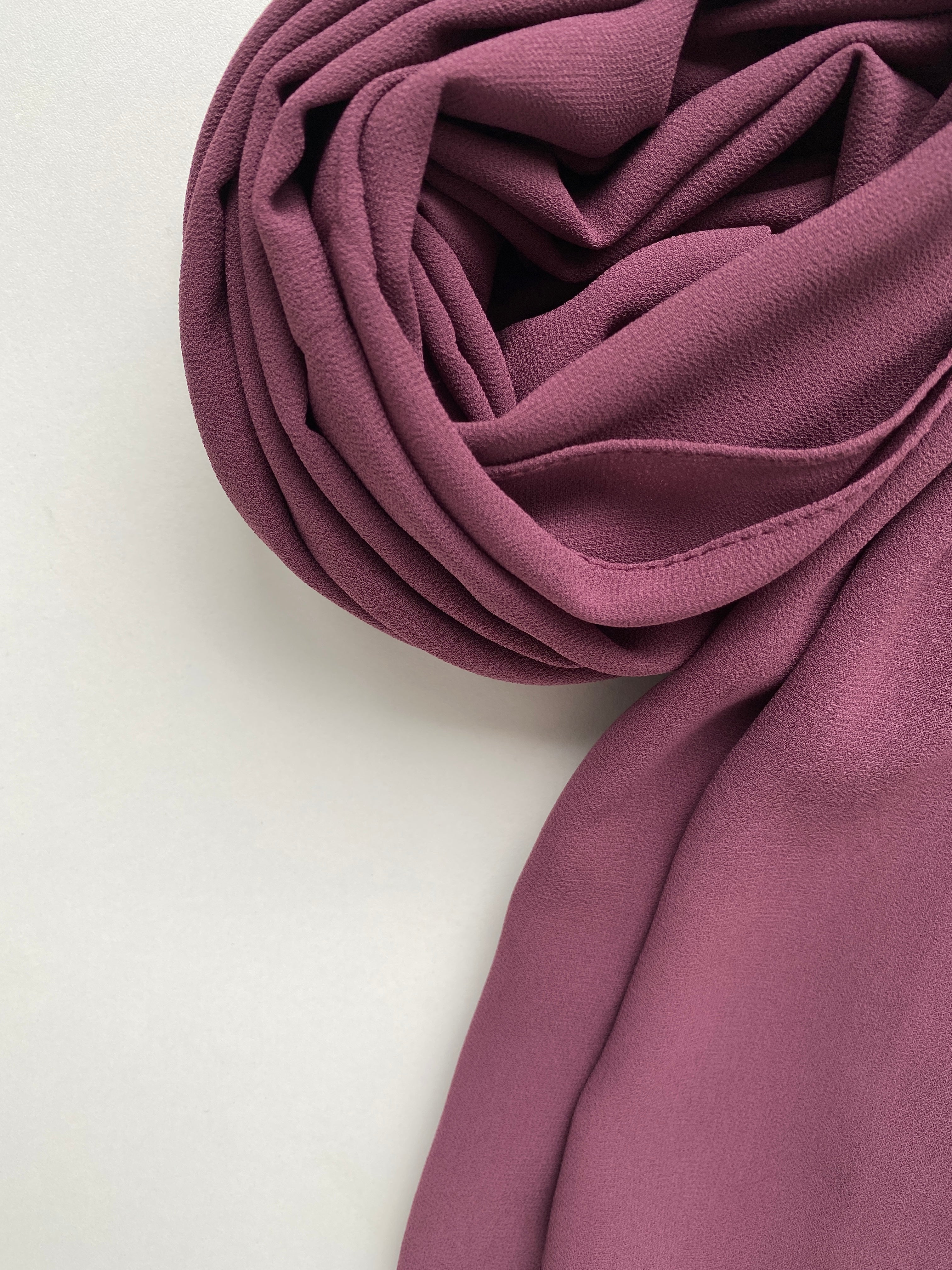 Un écrin d'élégance regroupant 6 hijabs en mousseline premium, soigneusement sélectionnés pour un dégradé harmonieux allant des tons nudes aux nuances prunes profondes.