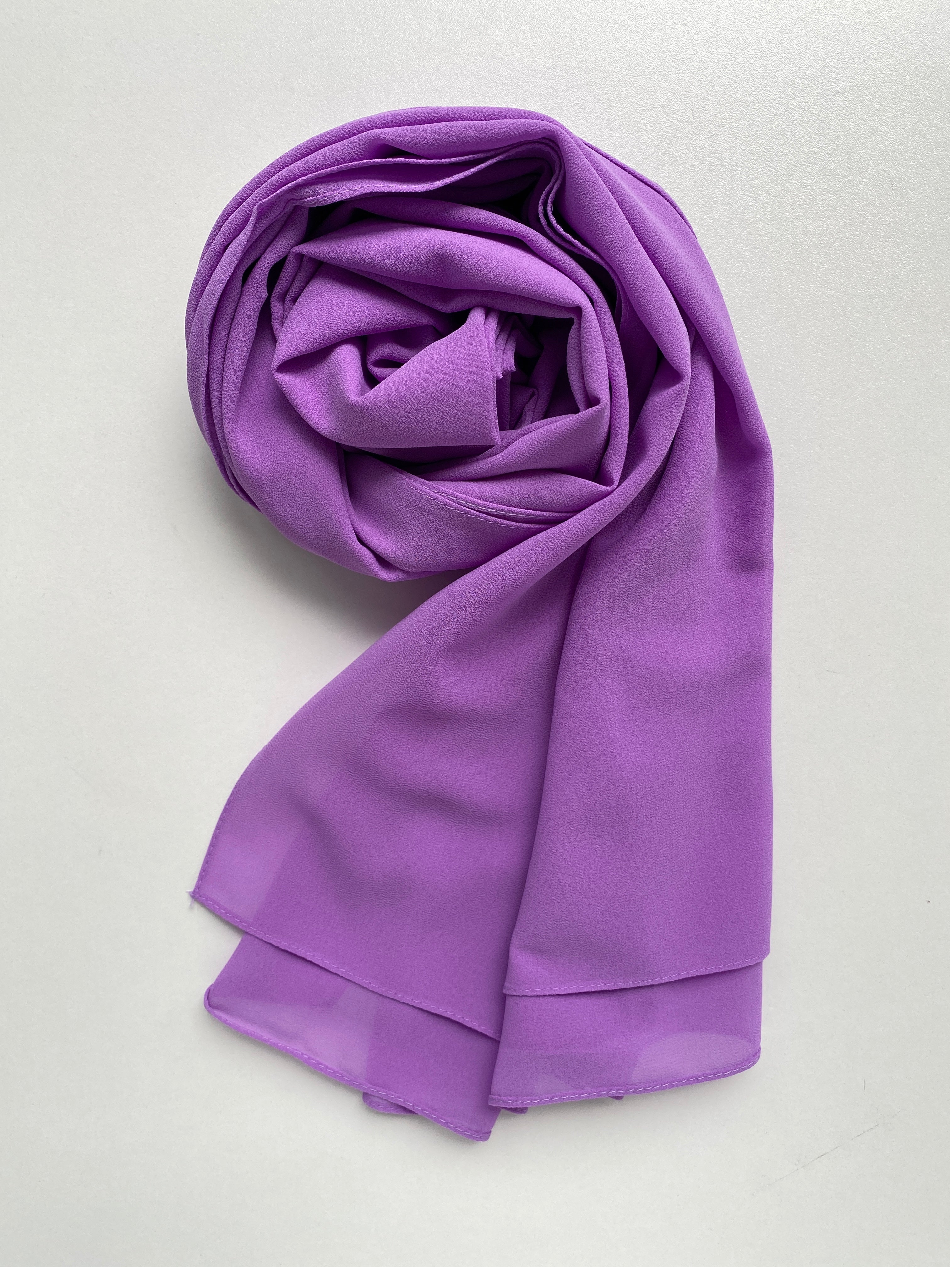 Un écrin d'élégance regroupant 6 hijabs en mousseline premium, soigneusement sélectionnés pour un dégradé sophistiqué mêlant des tons boisés à des nuances de lavande et de prune.