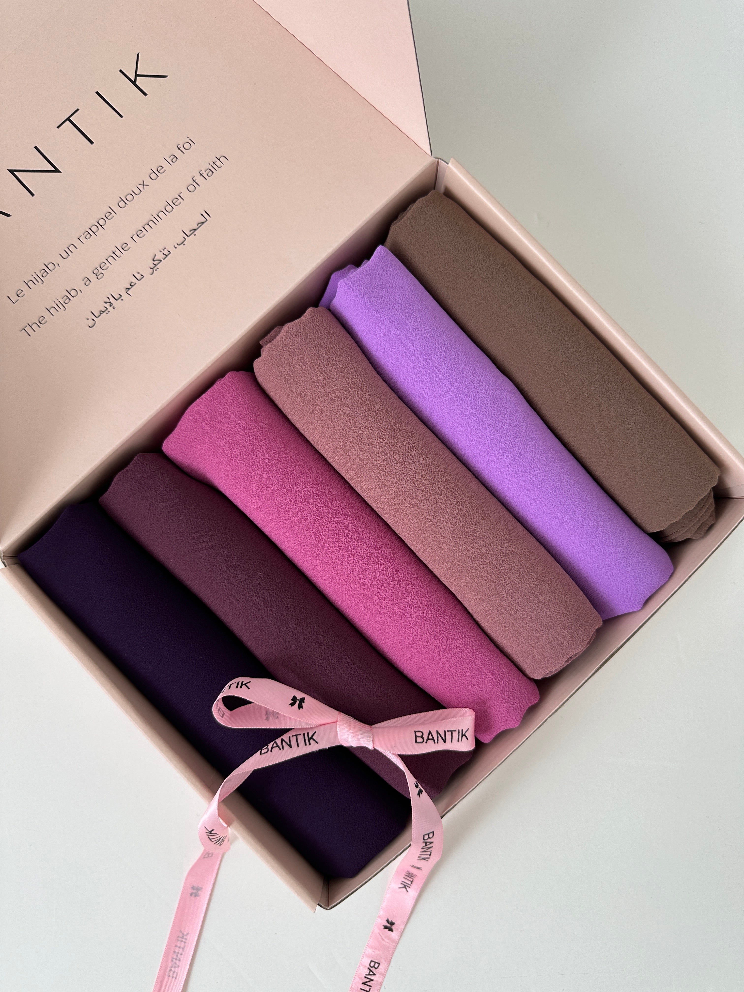 Coffret Prestige Bantik – Nuances de Lavande & Bois de Rose 6 Hijabs