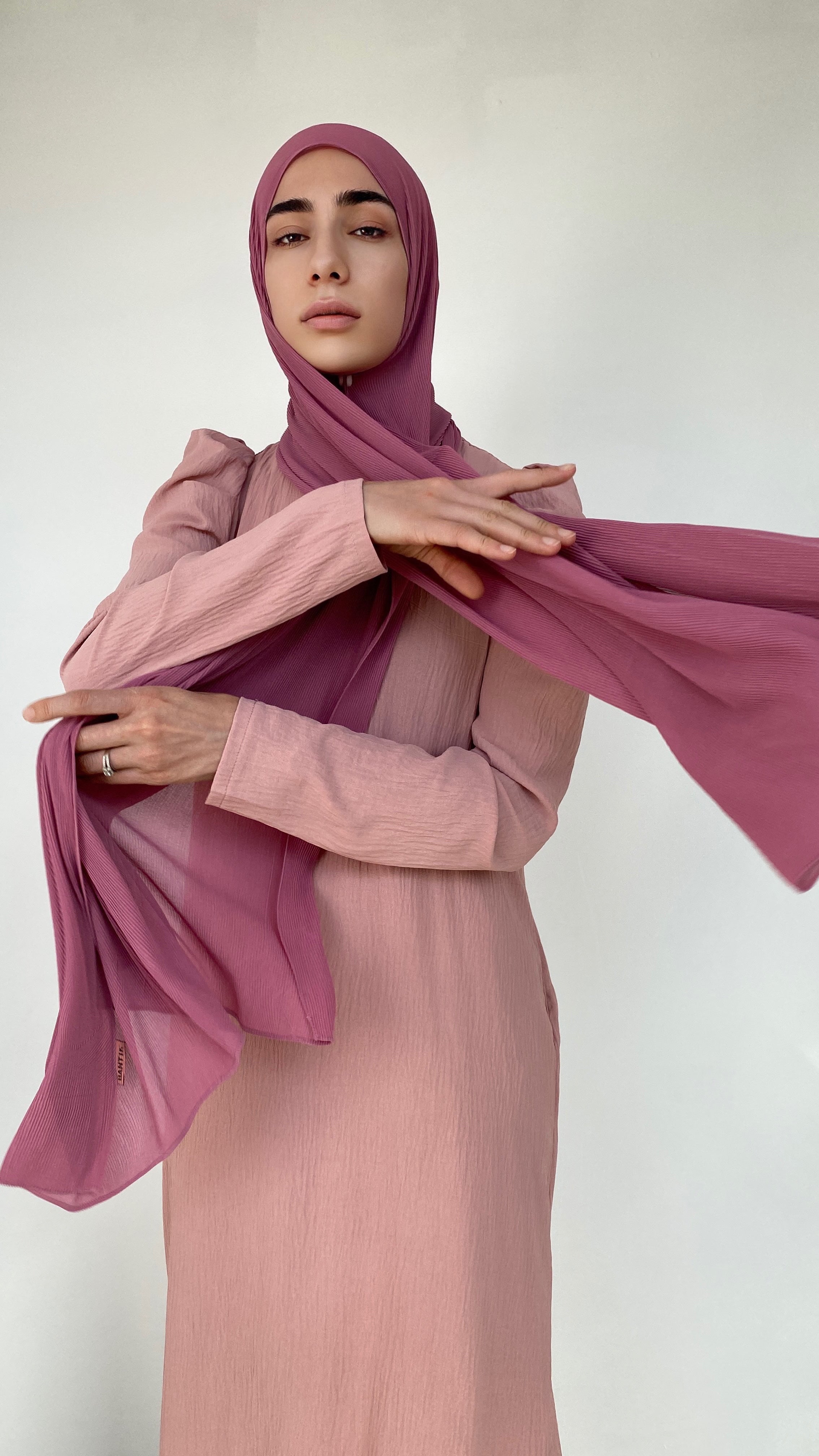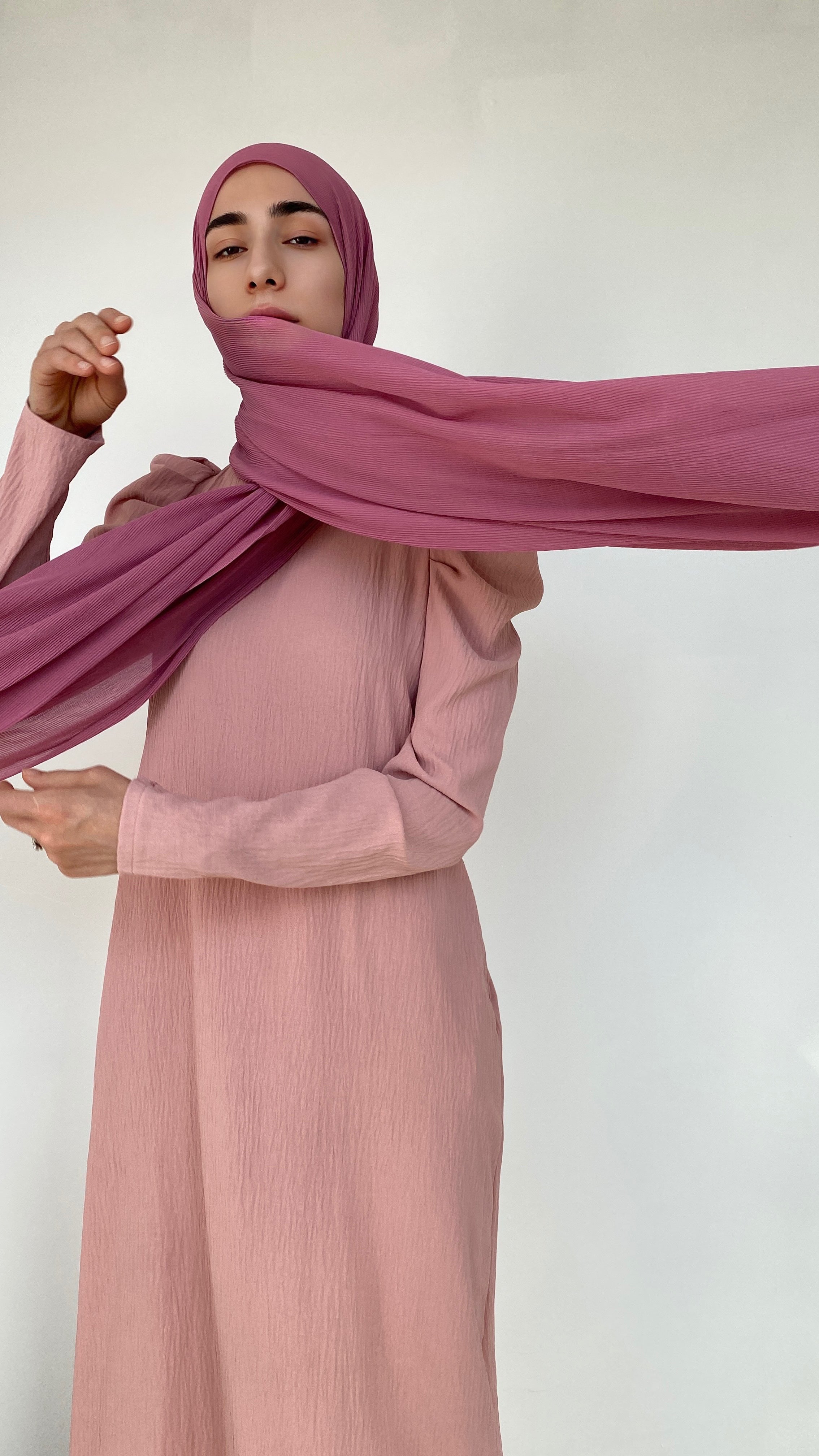 Ce hijab est en Mousseline mais dans un style unique : il est finement côtelé/plissé.