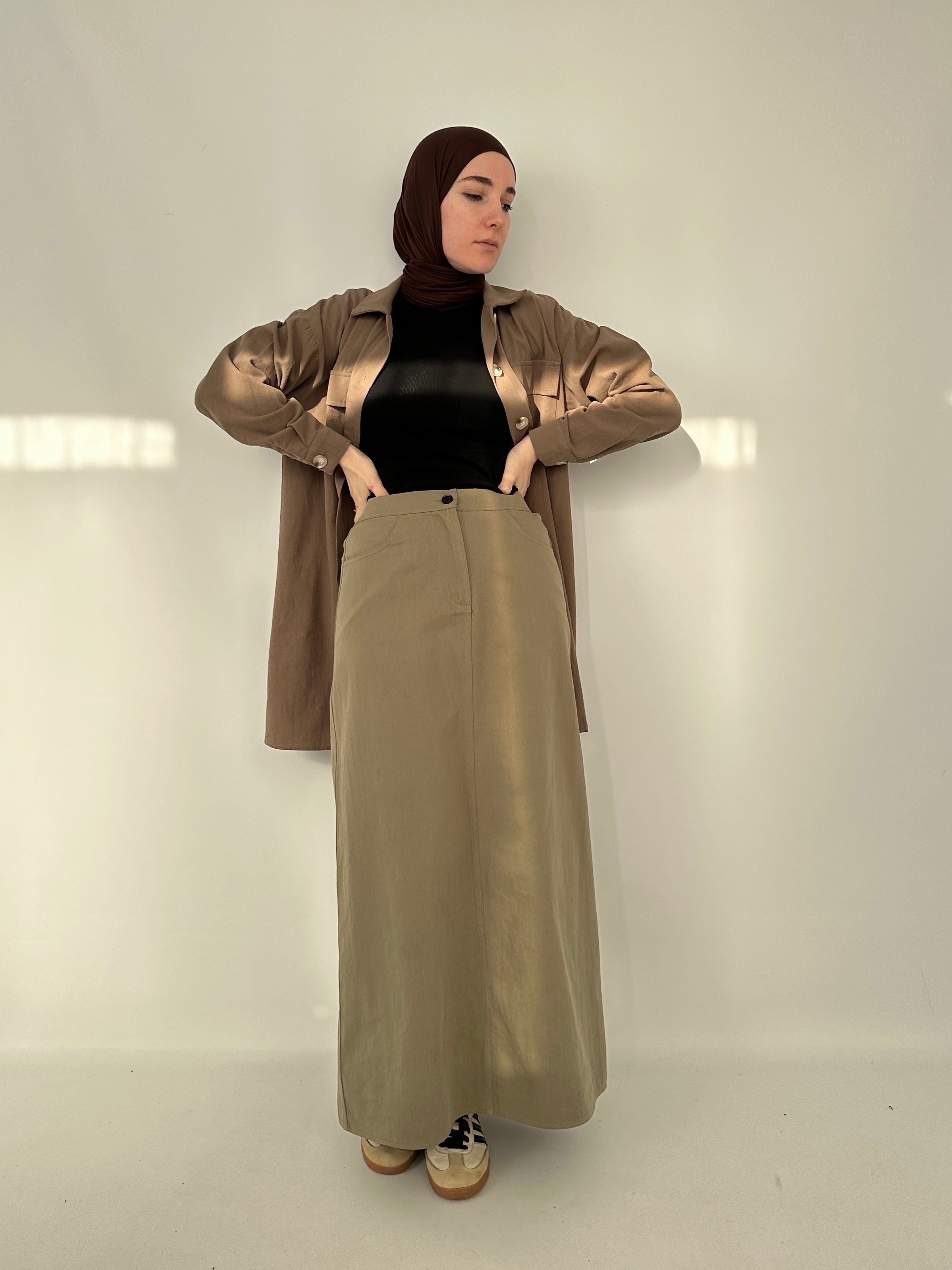 LANGER ROCK AUS OLIVENHOLZ-DENIM