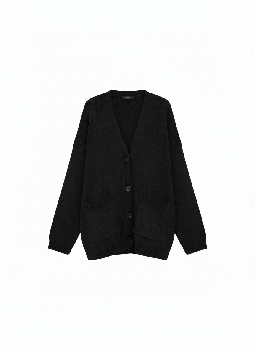 SCHWARZE ÜBERGRÖSSE STRICKJACKE