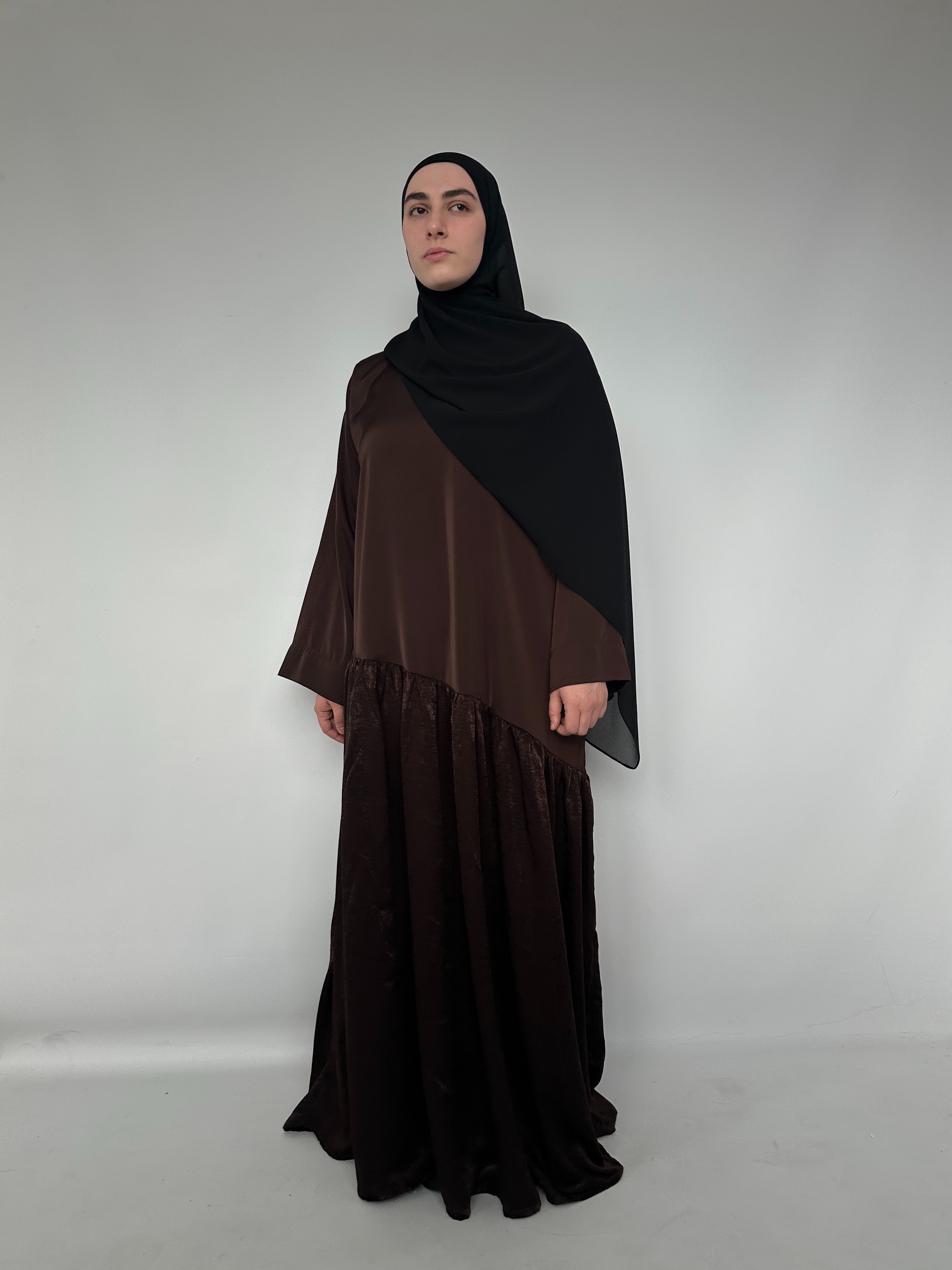 Elegante Abaya mit strukturiertem Rock – Dunkelbraun