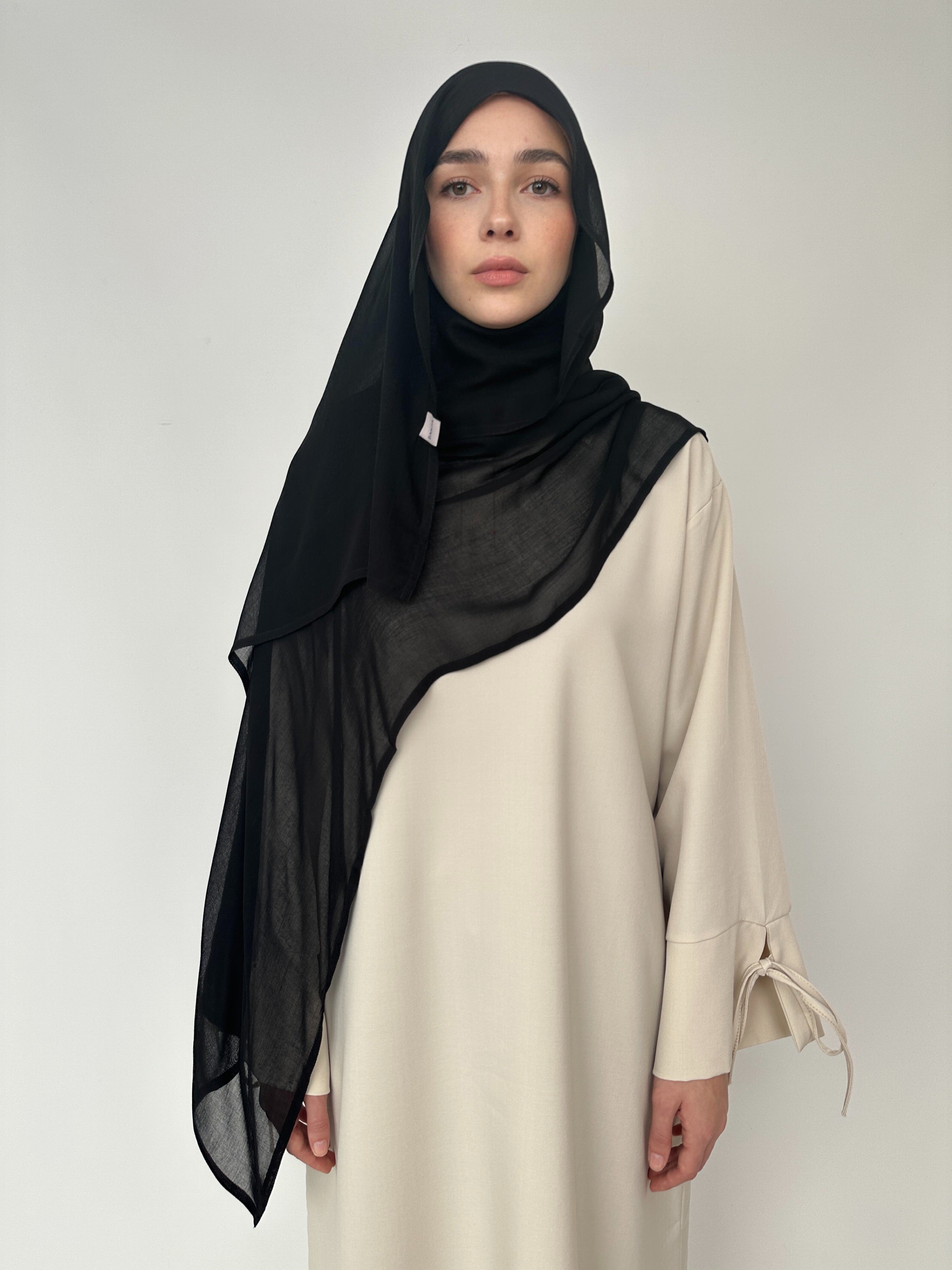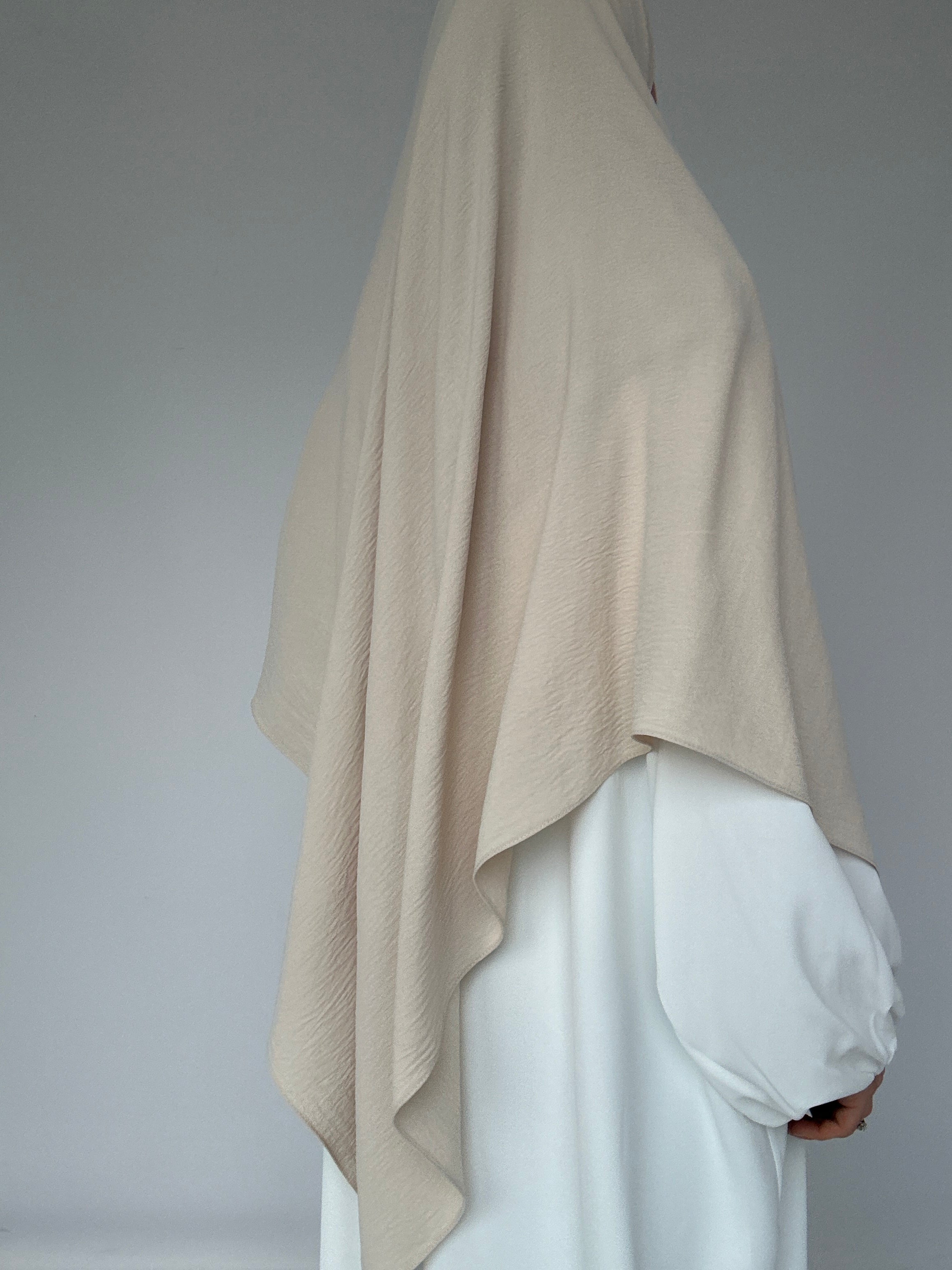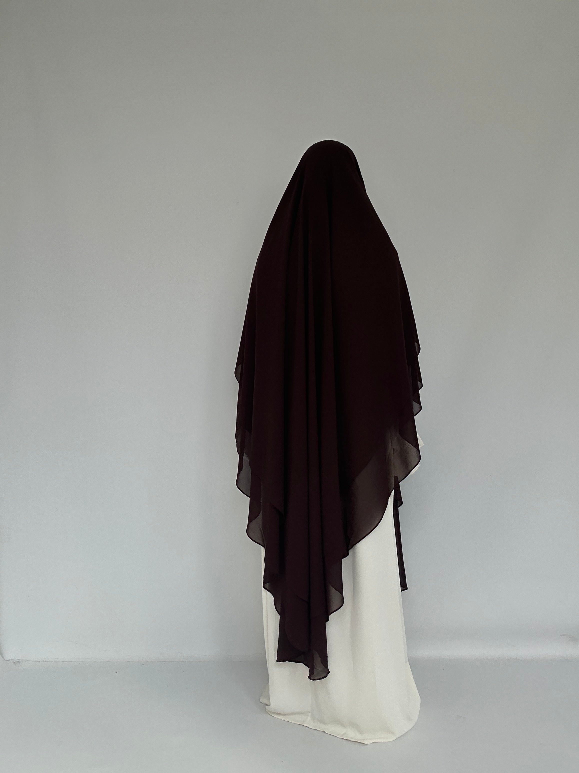 Extra langer Khimar aus leichtem Chiffon, ideal für einen eleganten und bedeckenden Look.