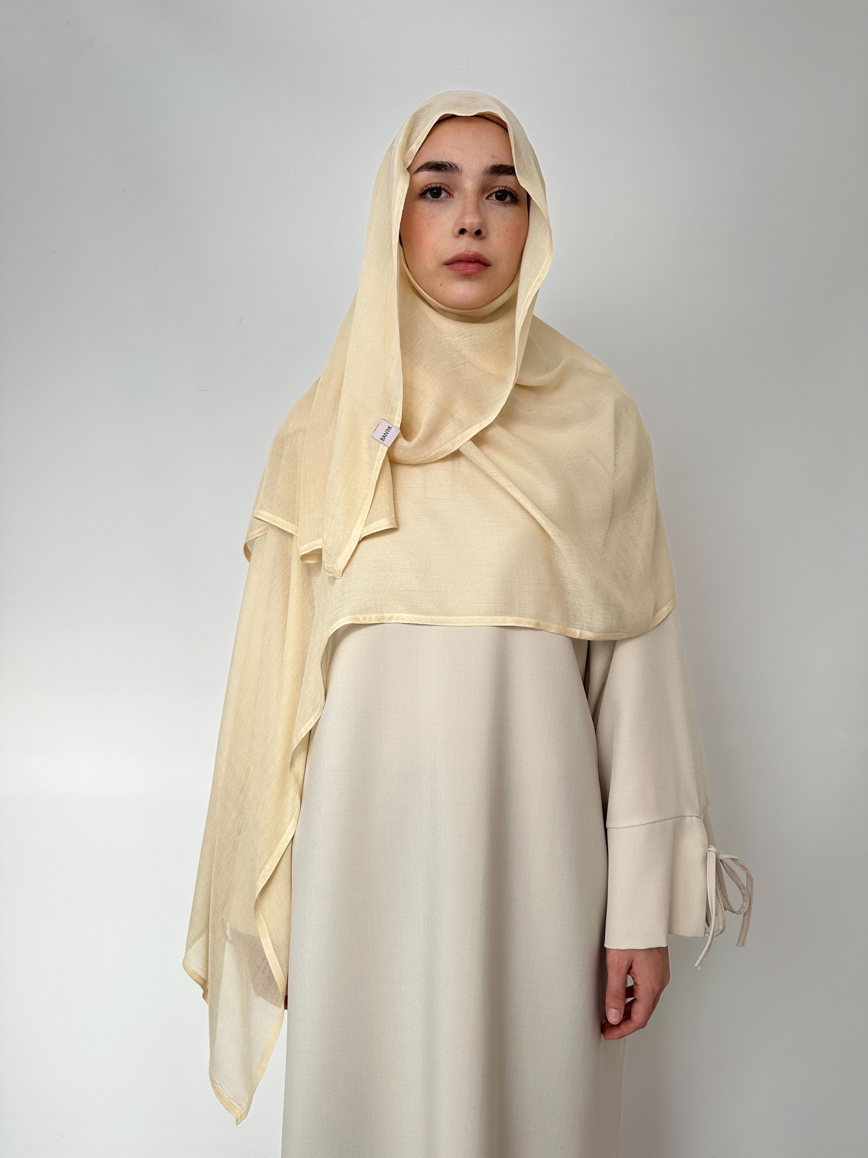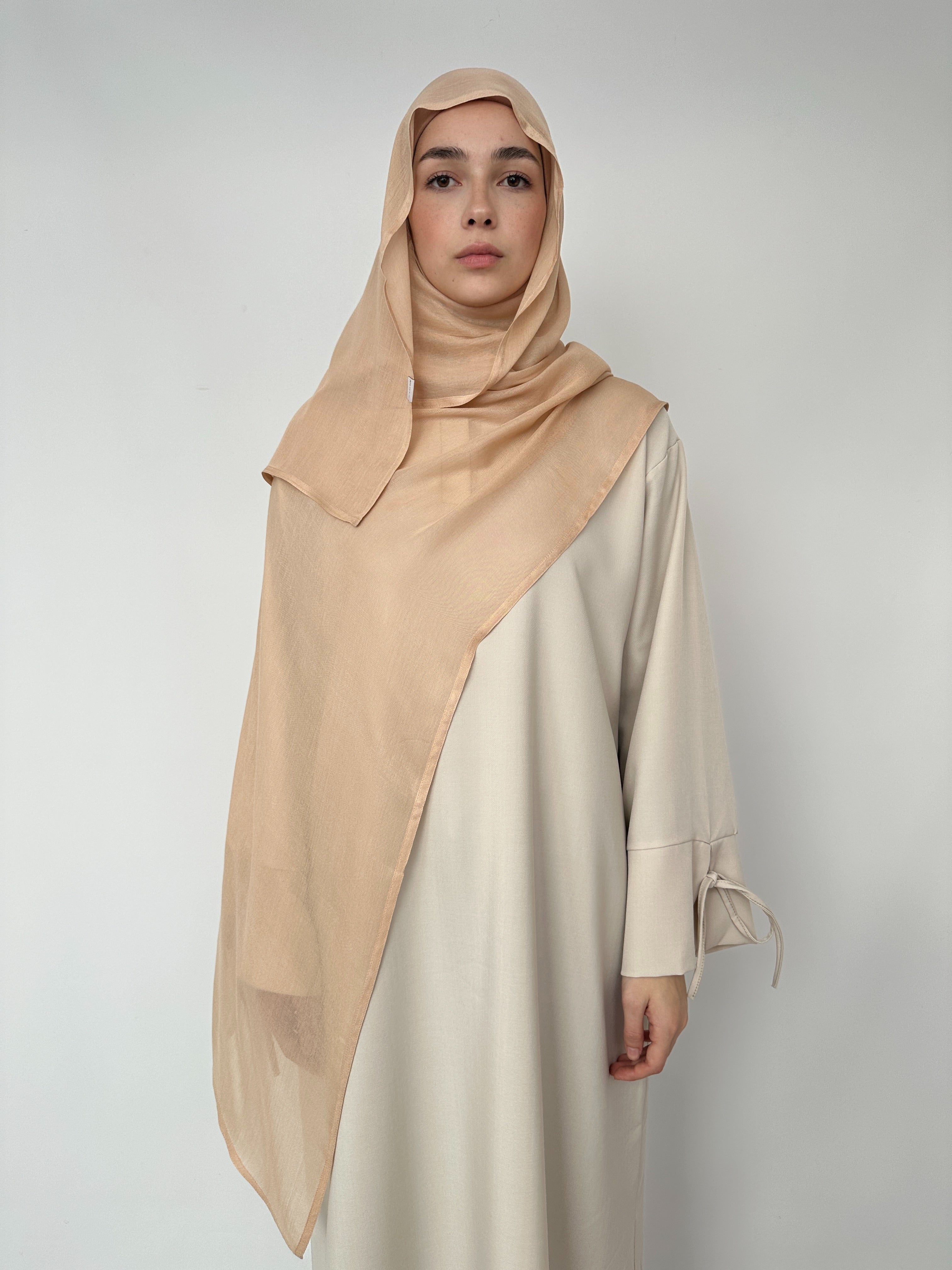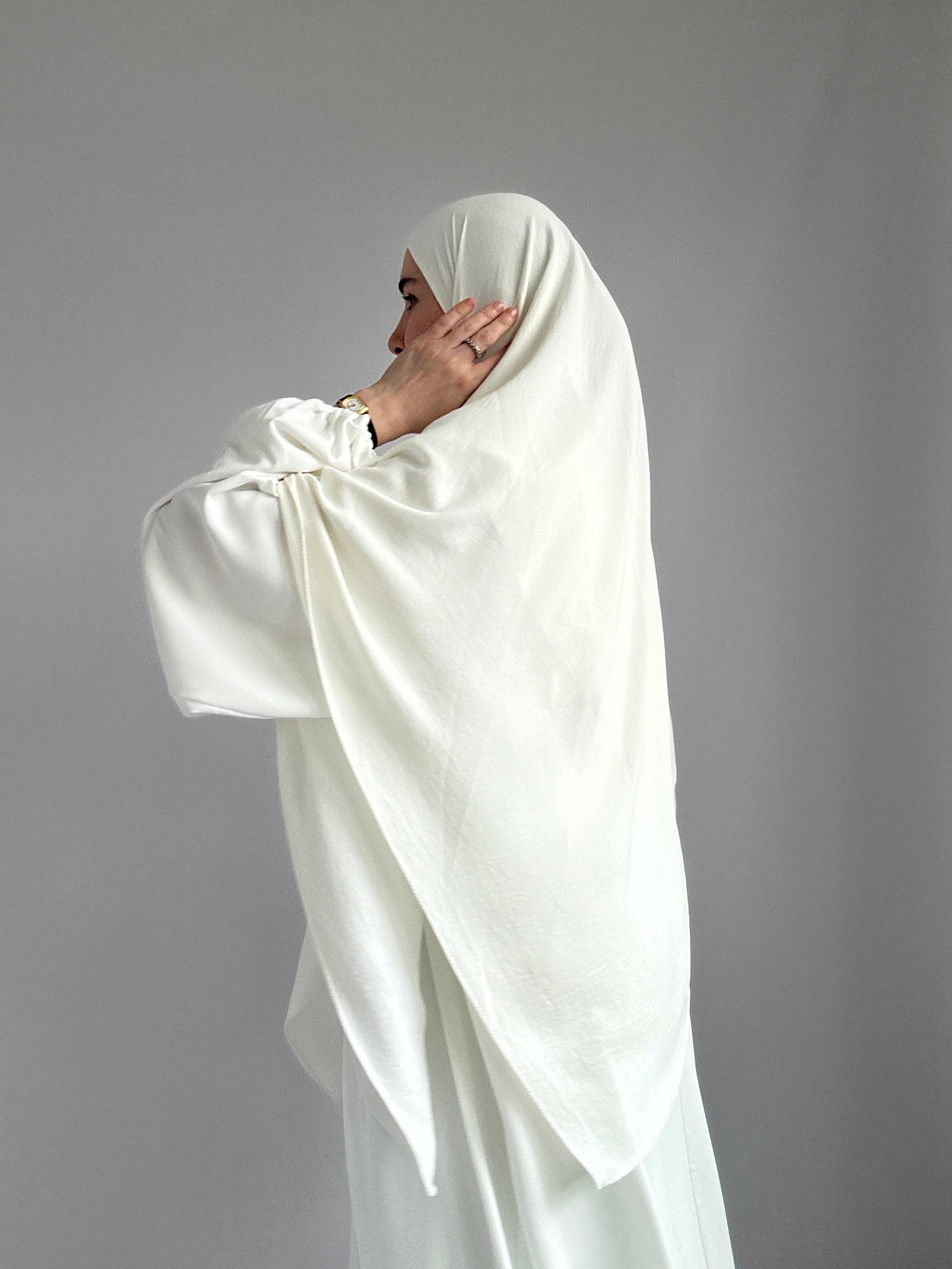 Extra langer Khimar aus leichtem Chiffon, ideal für einen eleganten und bedeckenden Look.