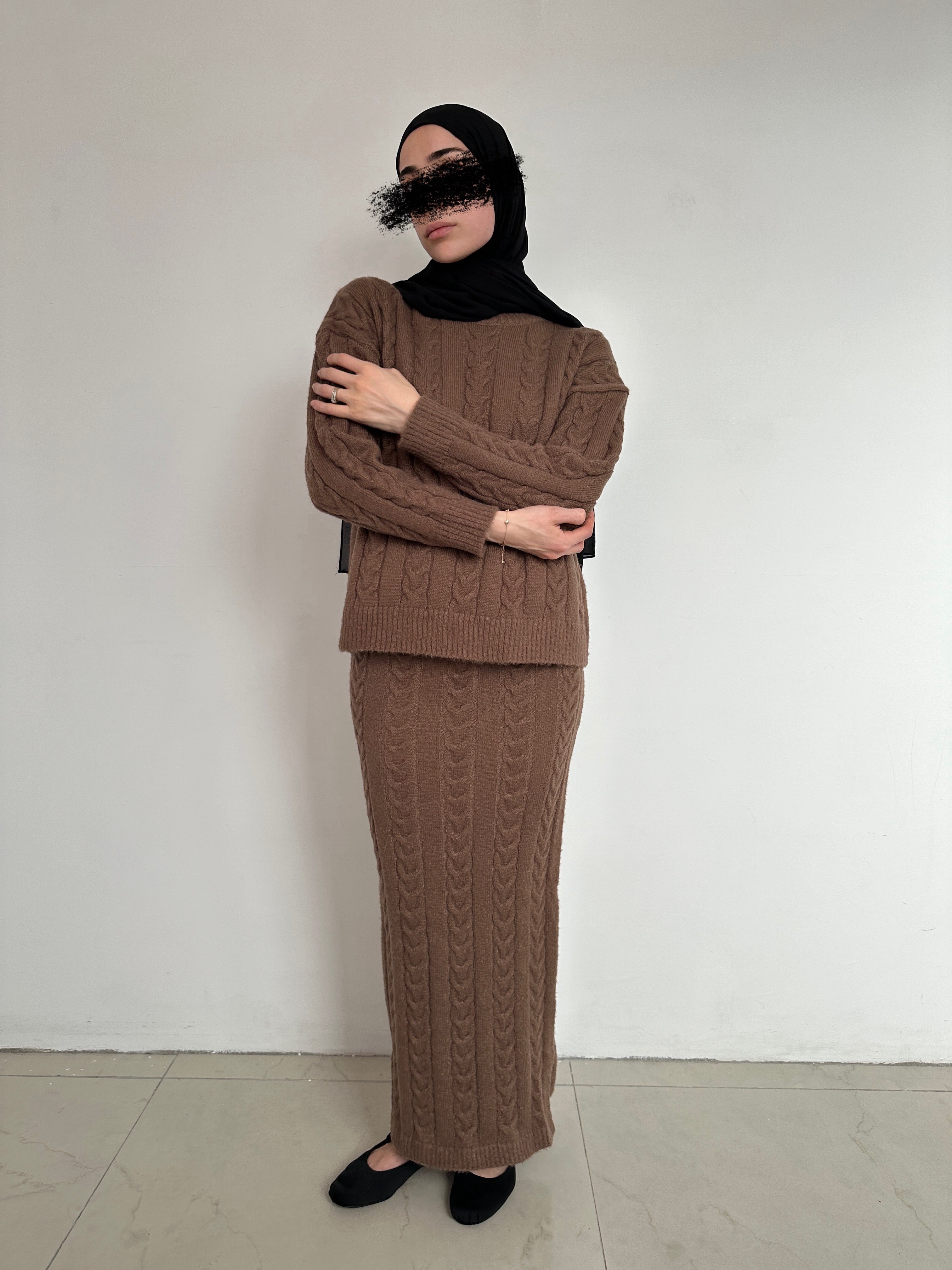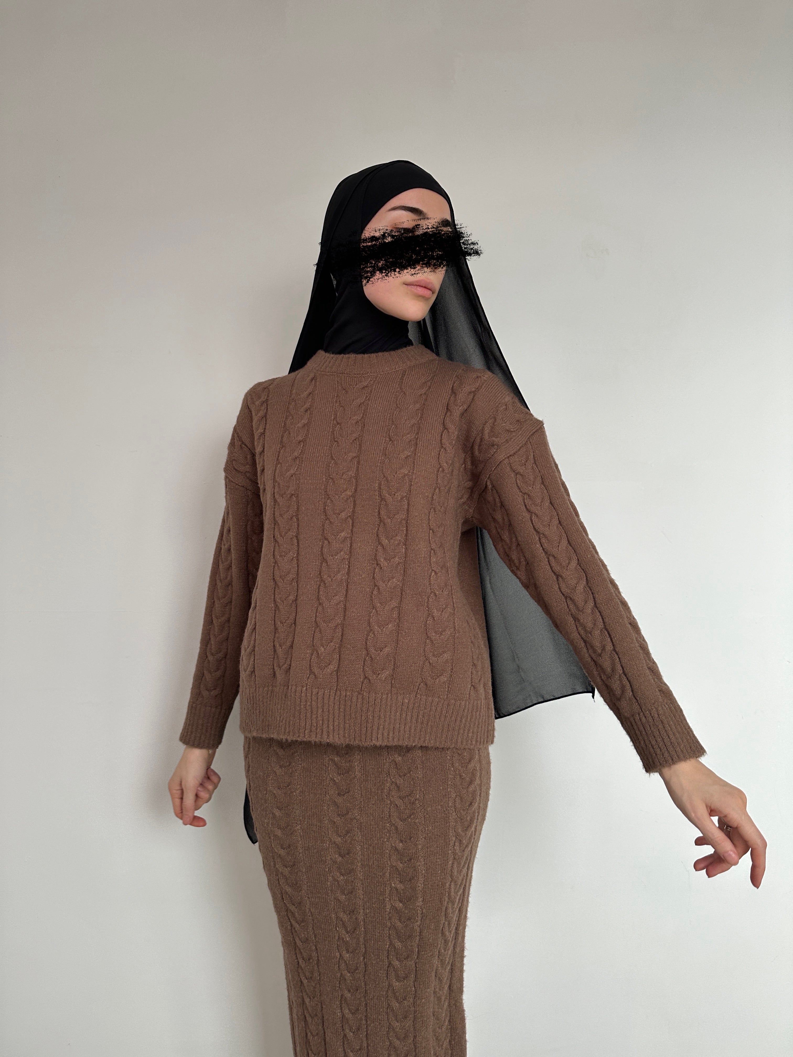 Ein gemütlicher Winter mit diesem weichen Set, das Sie perfekt warm hält. Der Rollkragenpullover hat hübsche Rippdetails.