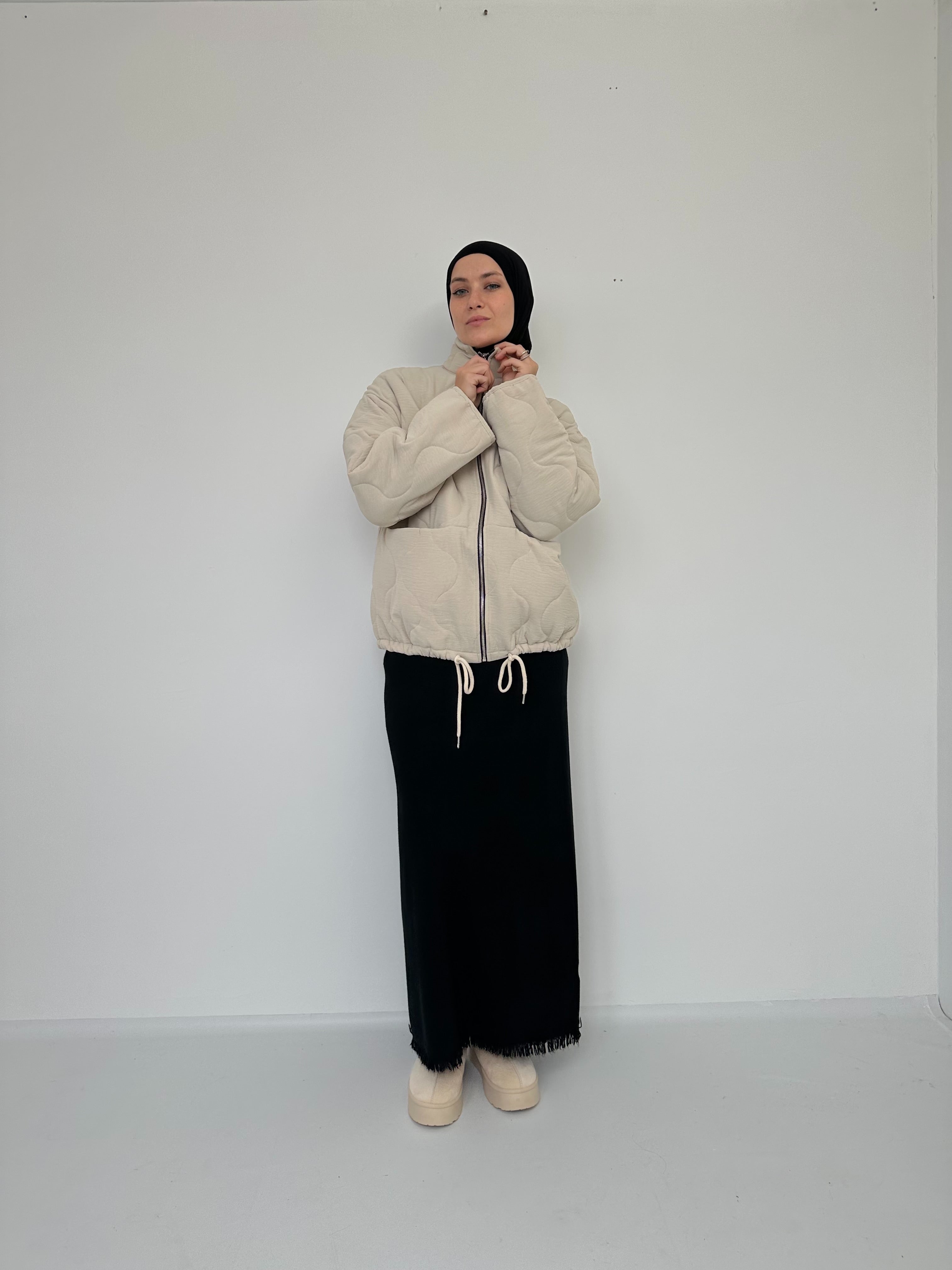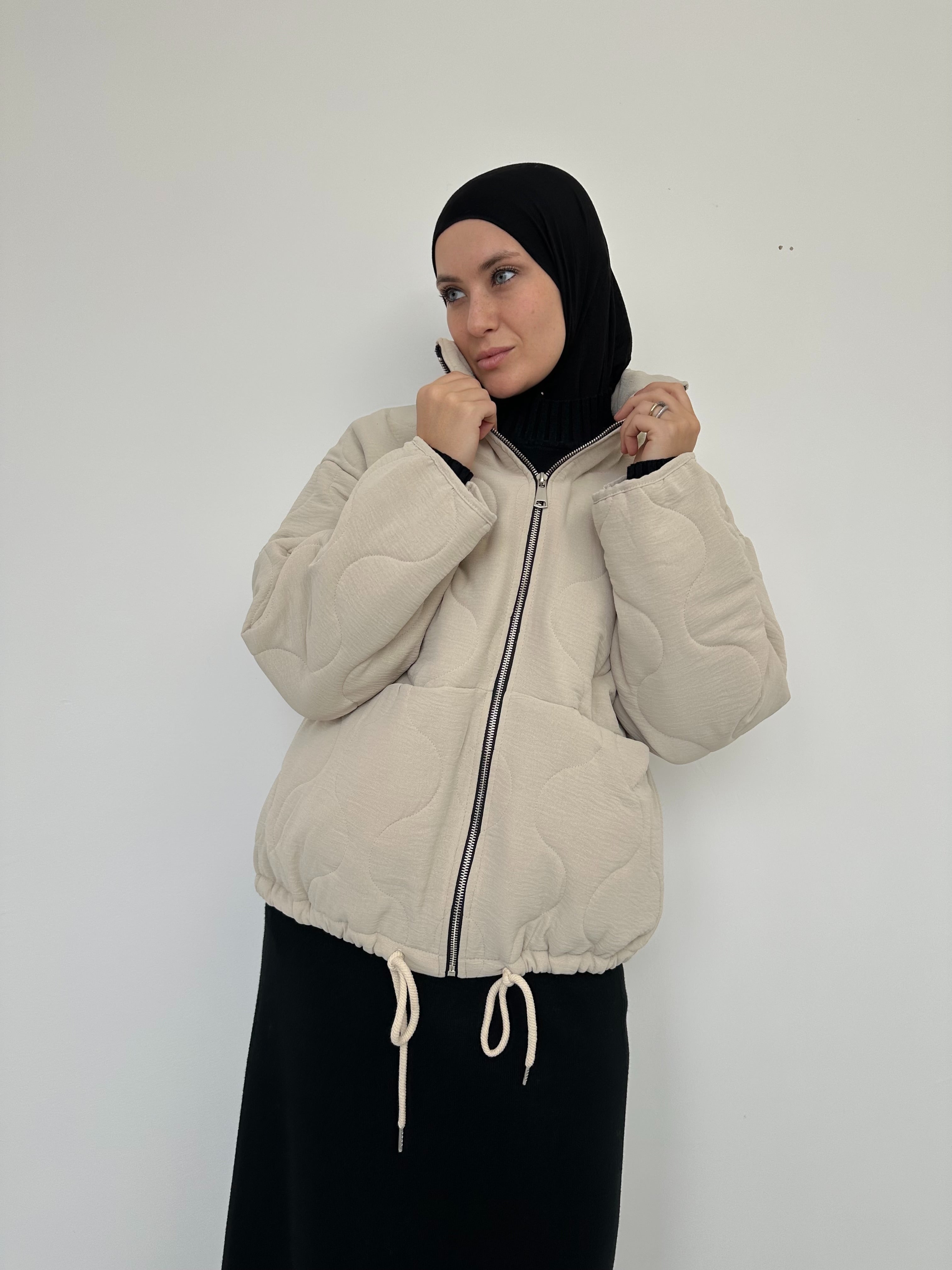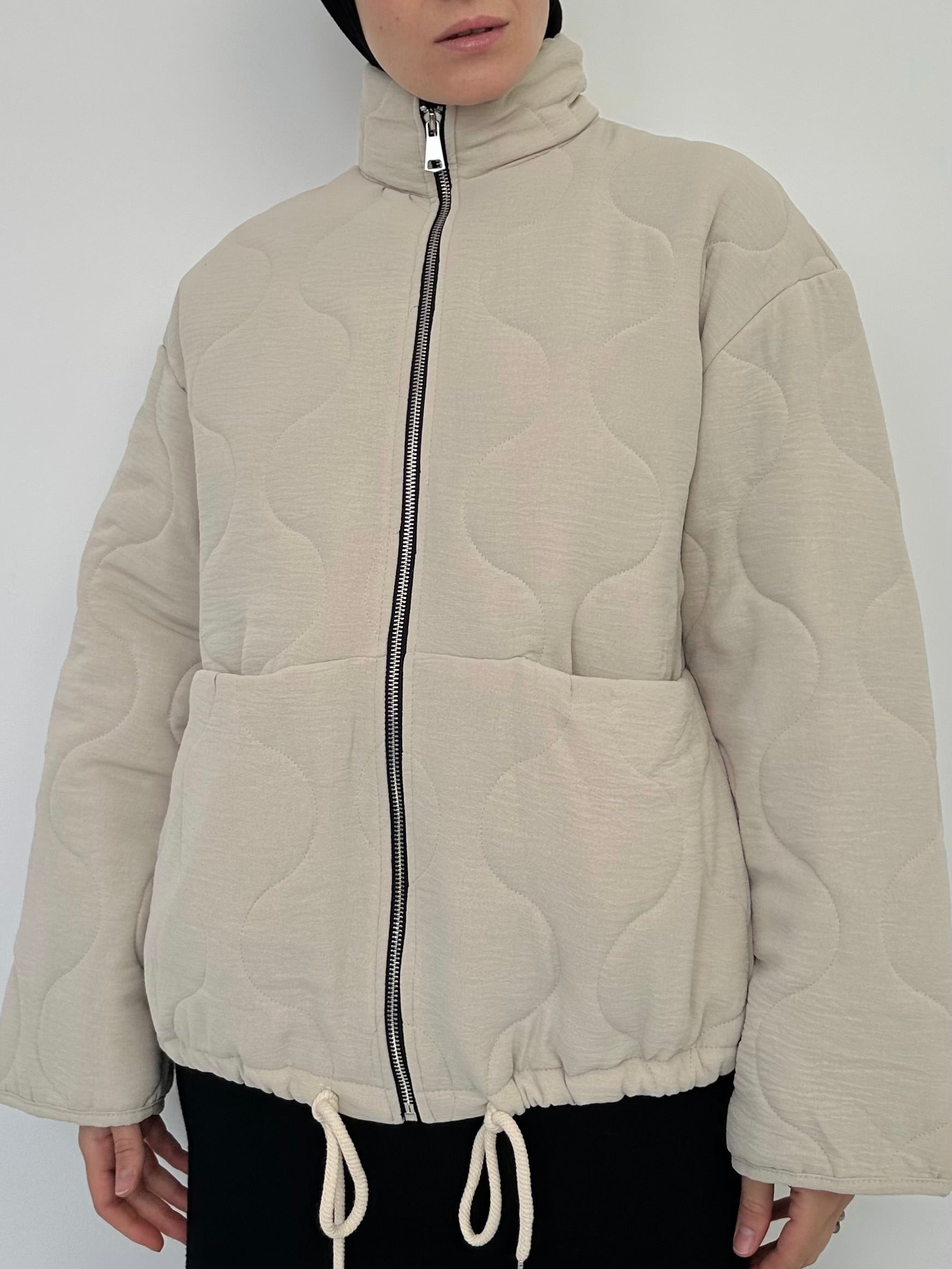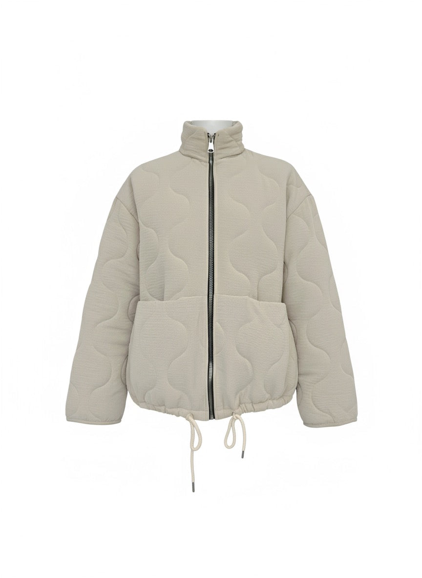 • Détails : Fermeture zippée, col montant, motif matelassé texturé, cordon de serrage réglable à la taille.
