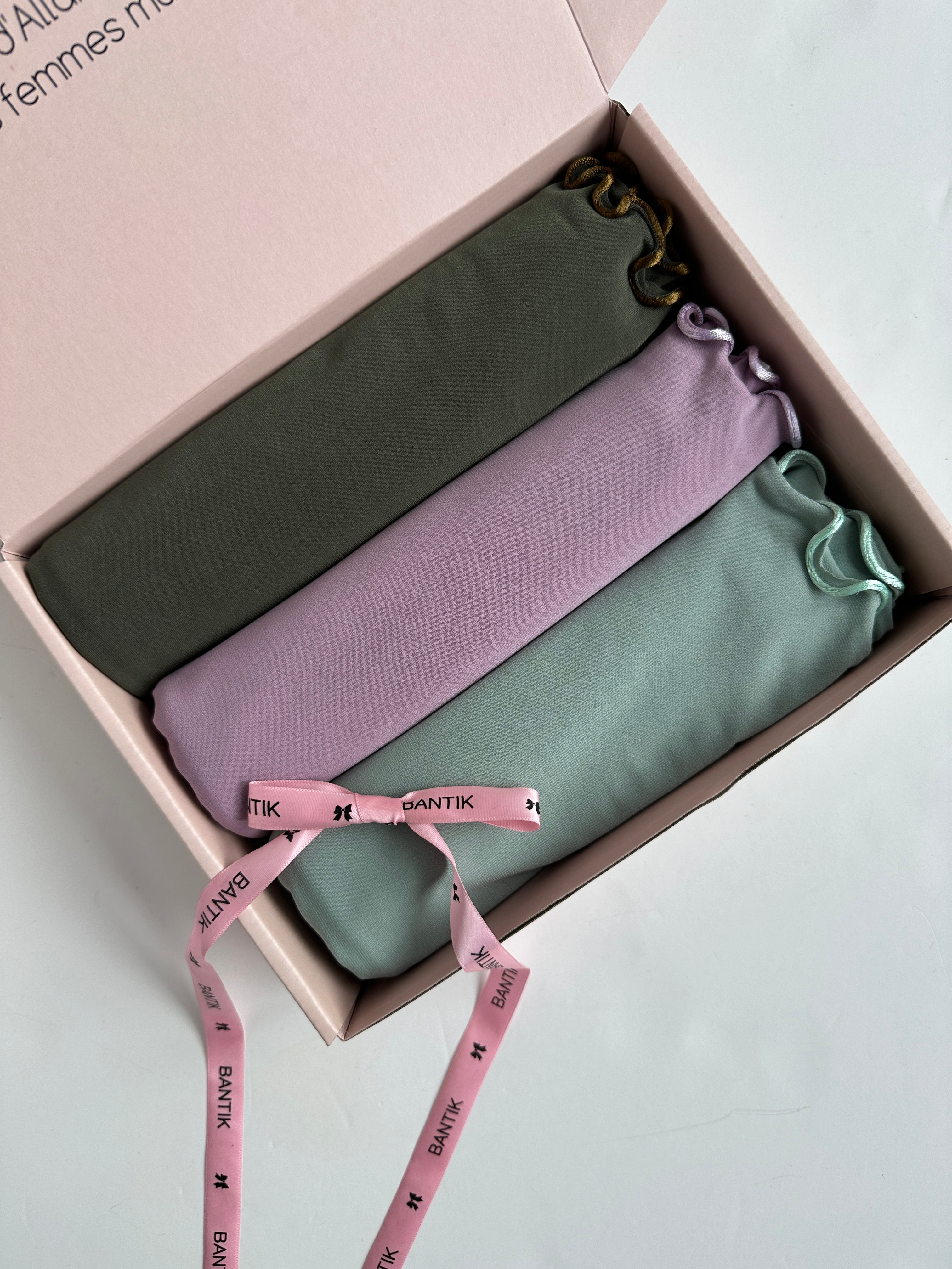 Schachtel mit 3 luxuriösen Hijabs aus lockigem Jersey