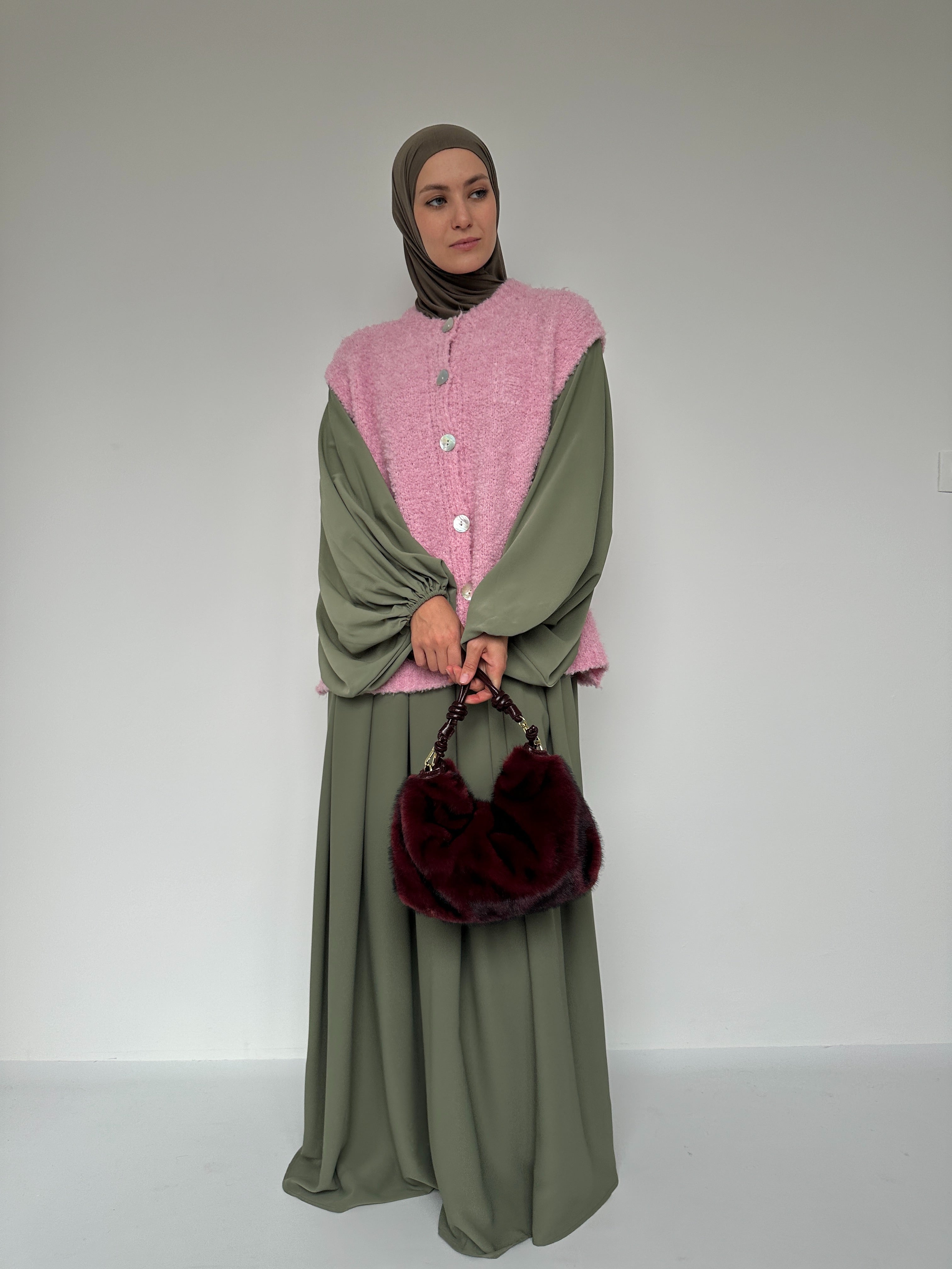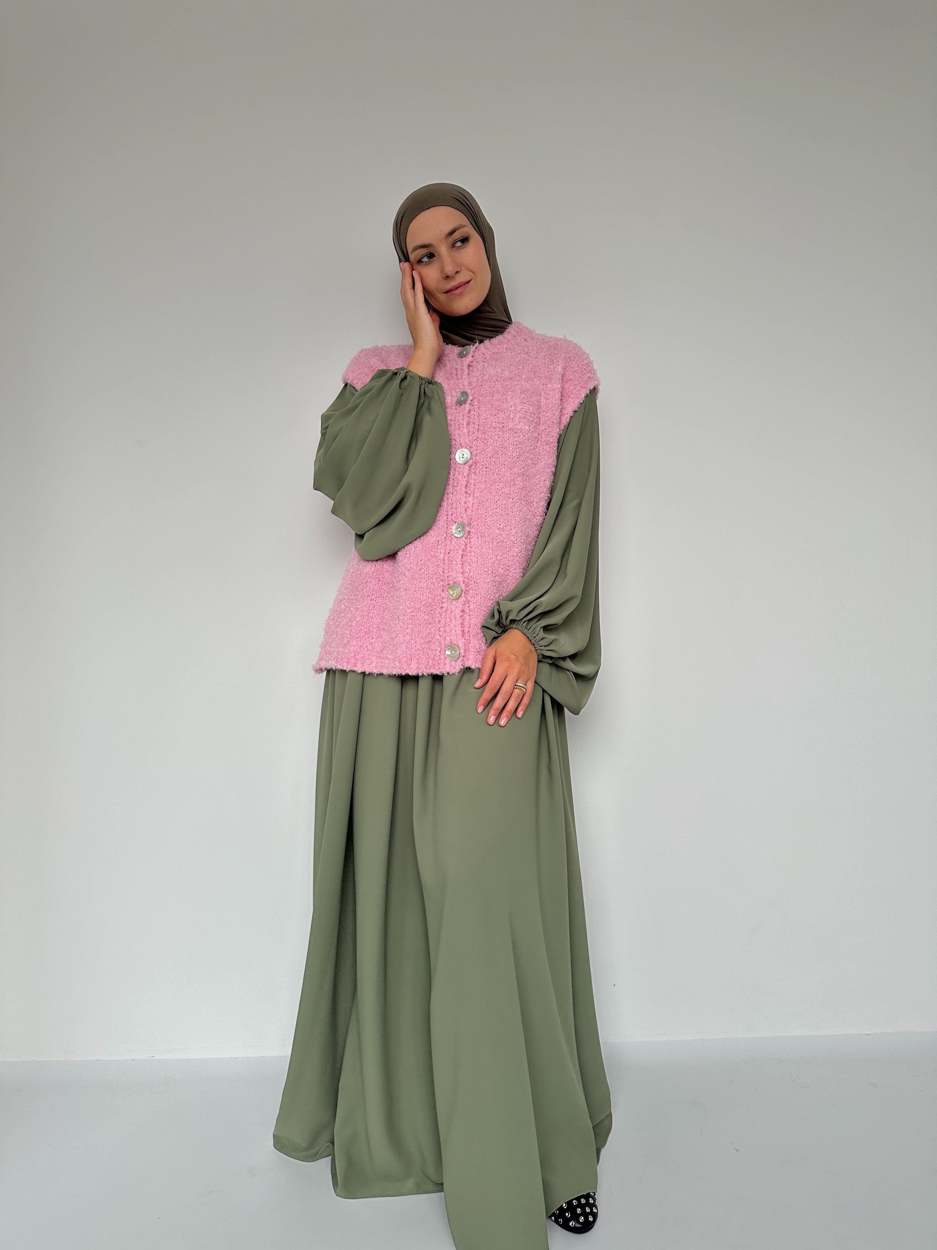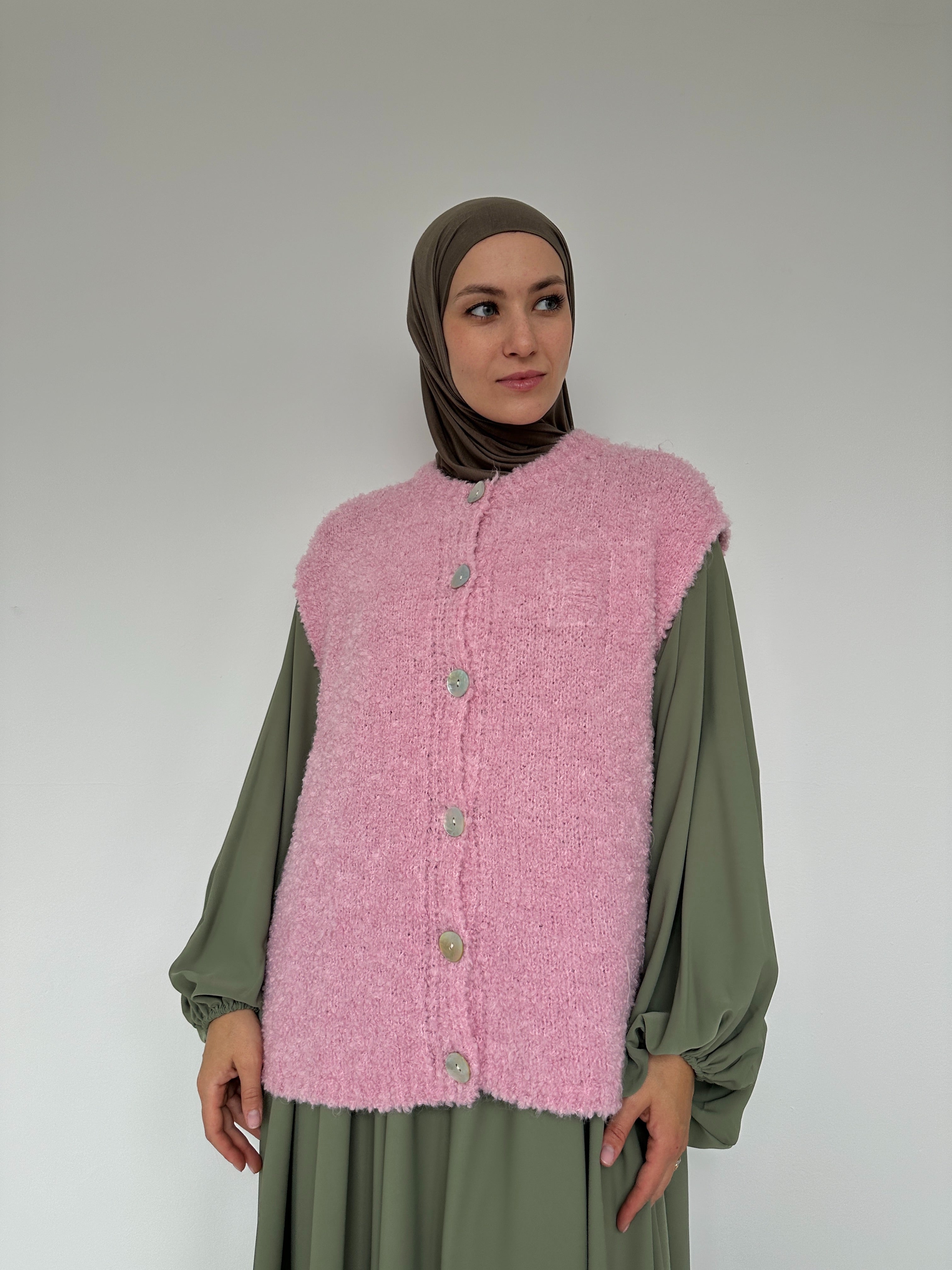 Diese ärmellose Jacke bietet eine moderne und bequeme Passform und eignet sich perfekt zum Tragen über einem Hemd, einer Abaya oder einem dünnen Pullover.