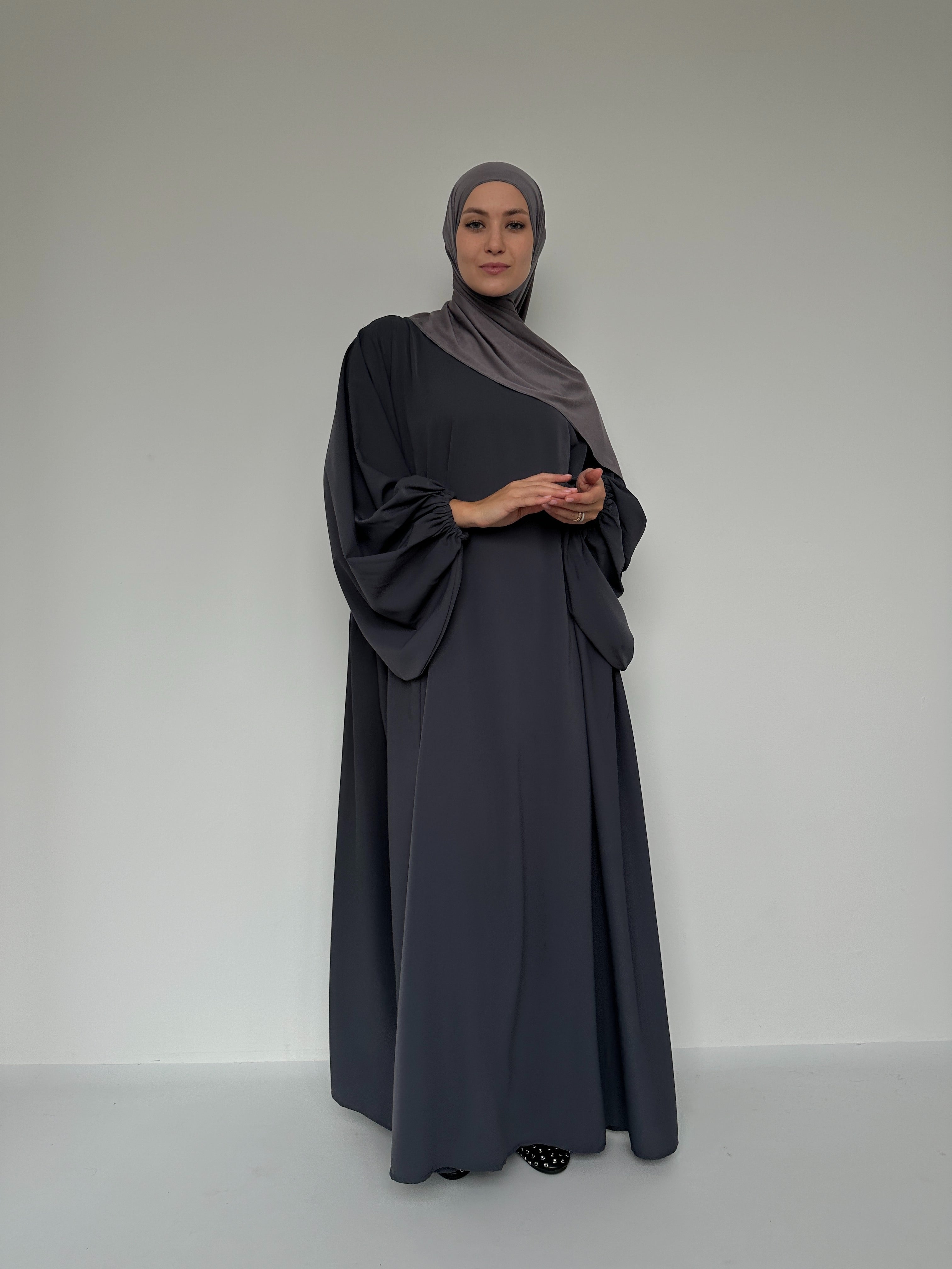 Die Maïssa-Abaya vereint Minimalismus und Eleganz. Fließender, weicher Stoff, Raffungen an der Taille und luftige Ärmel sorgen für einen raffinierten, bequemen und femininen Stil.