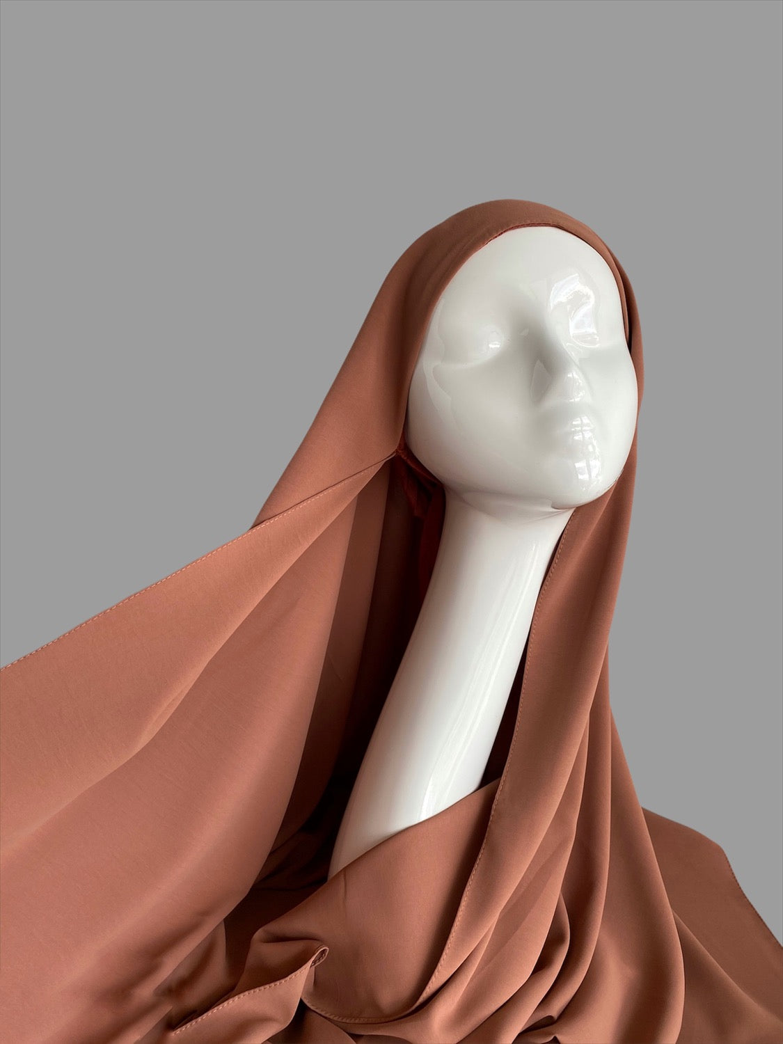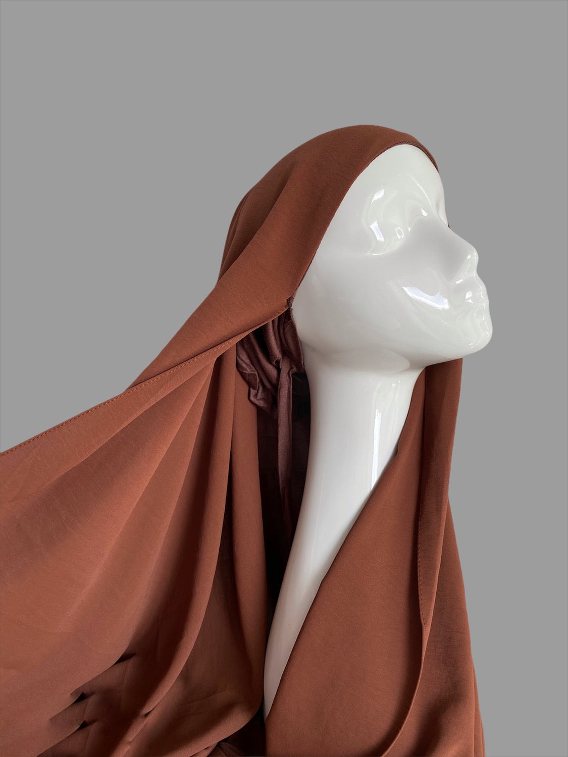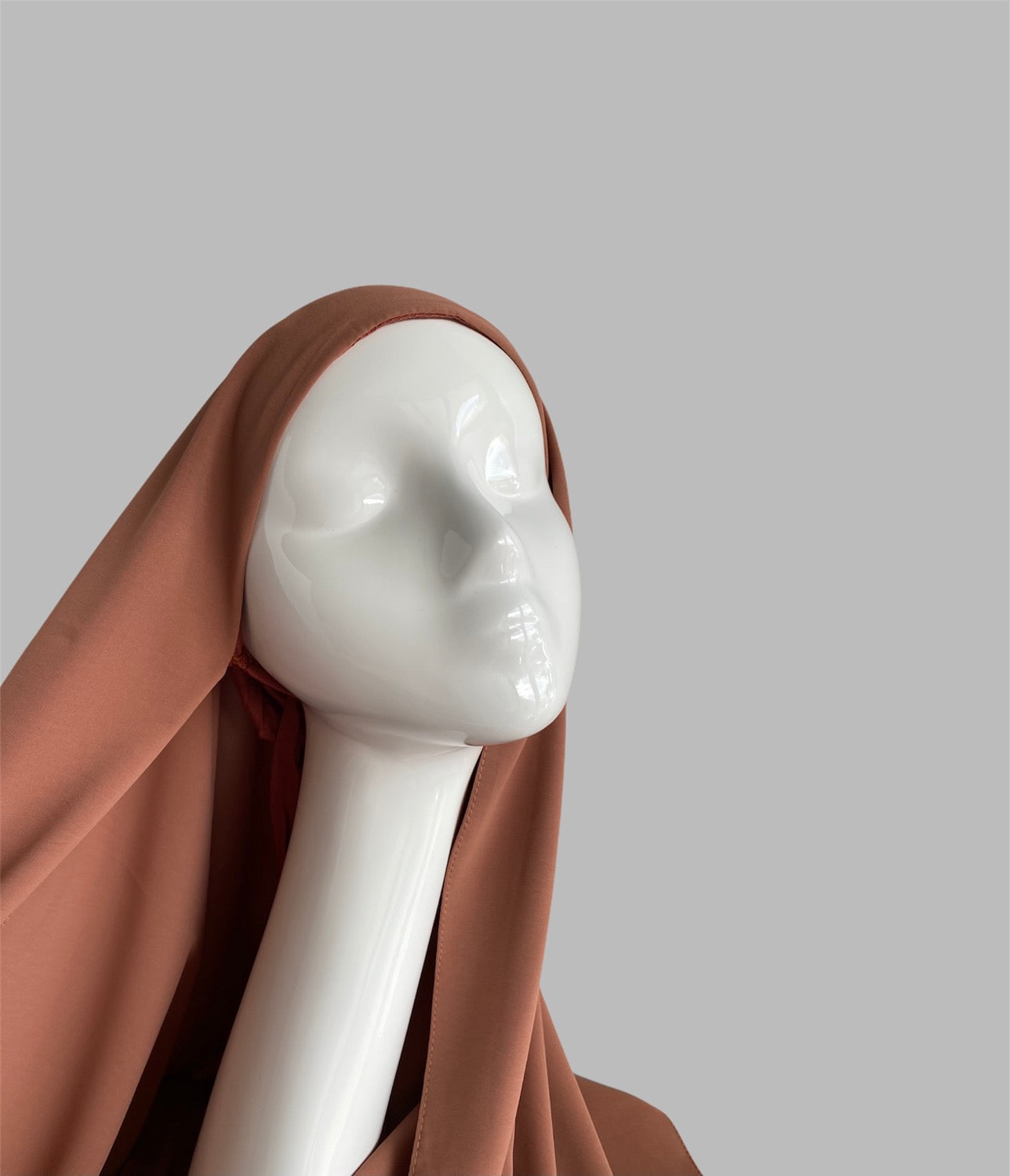 Hijab zum Anziehen, bestehend aus einer Jersey-Mütze (die Mütze ist beim Tragen des Schleiers unsichtbar).