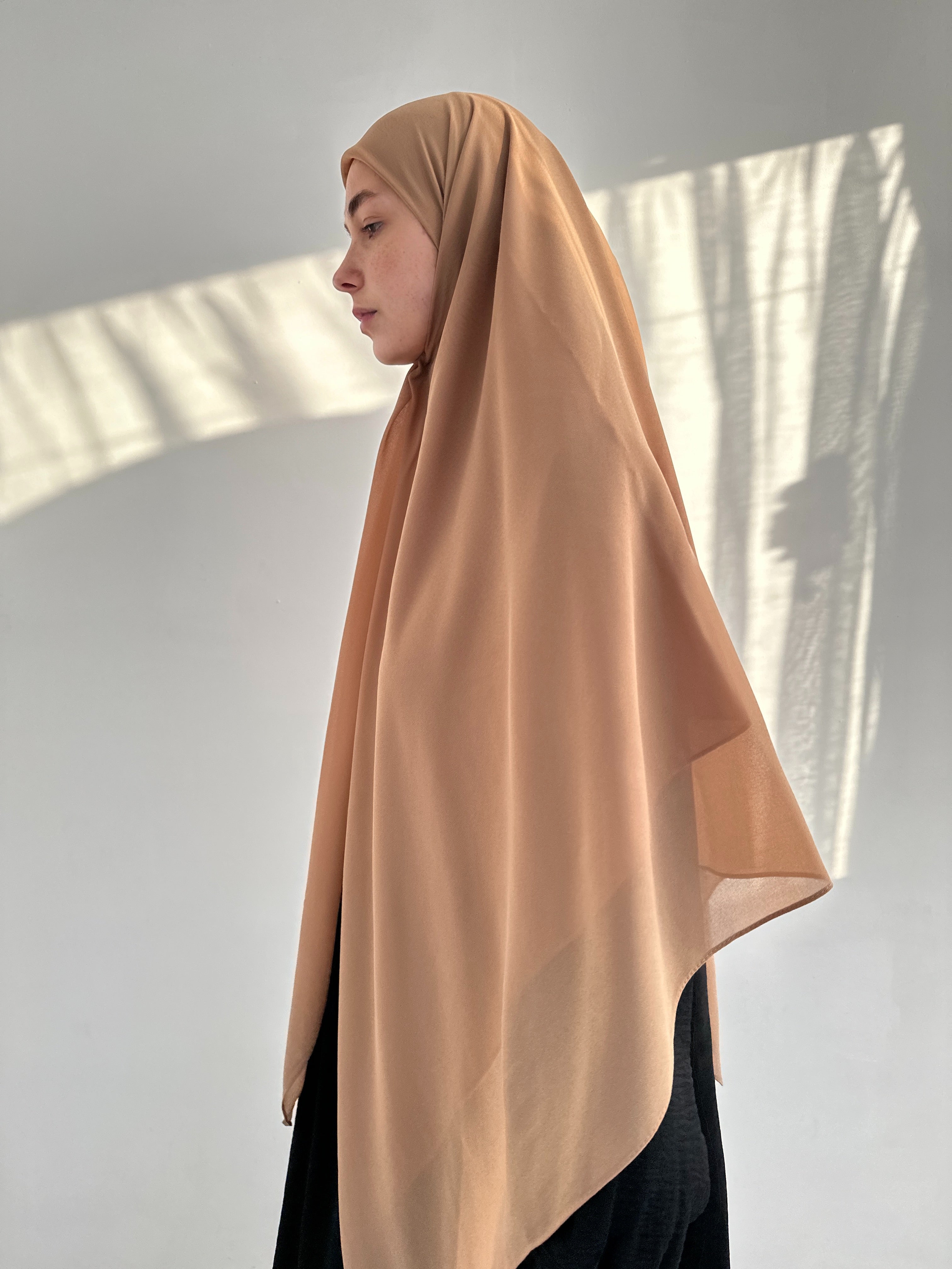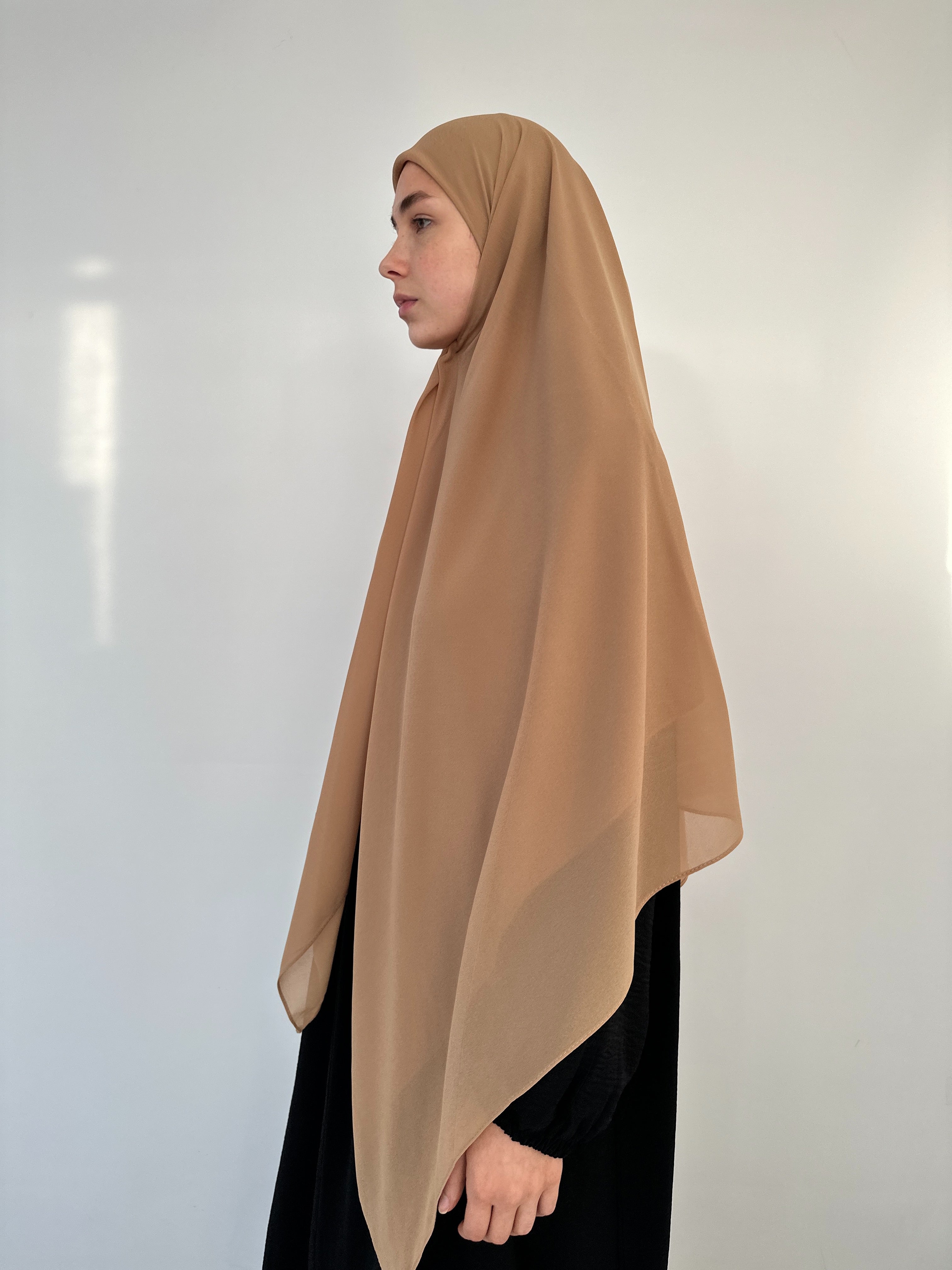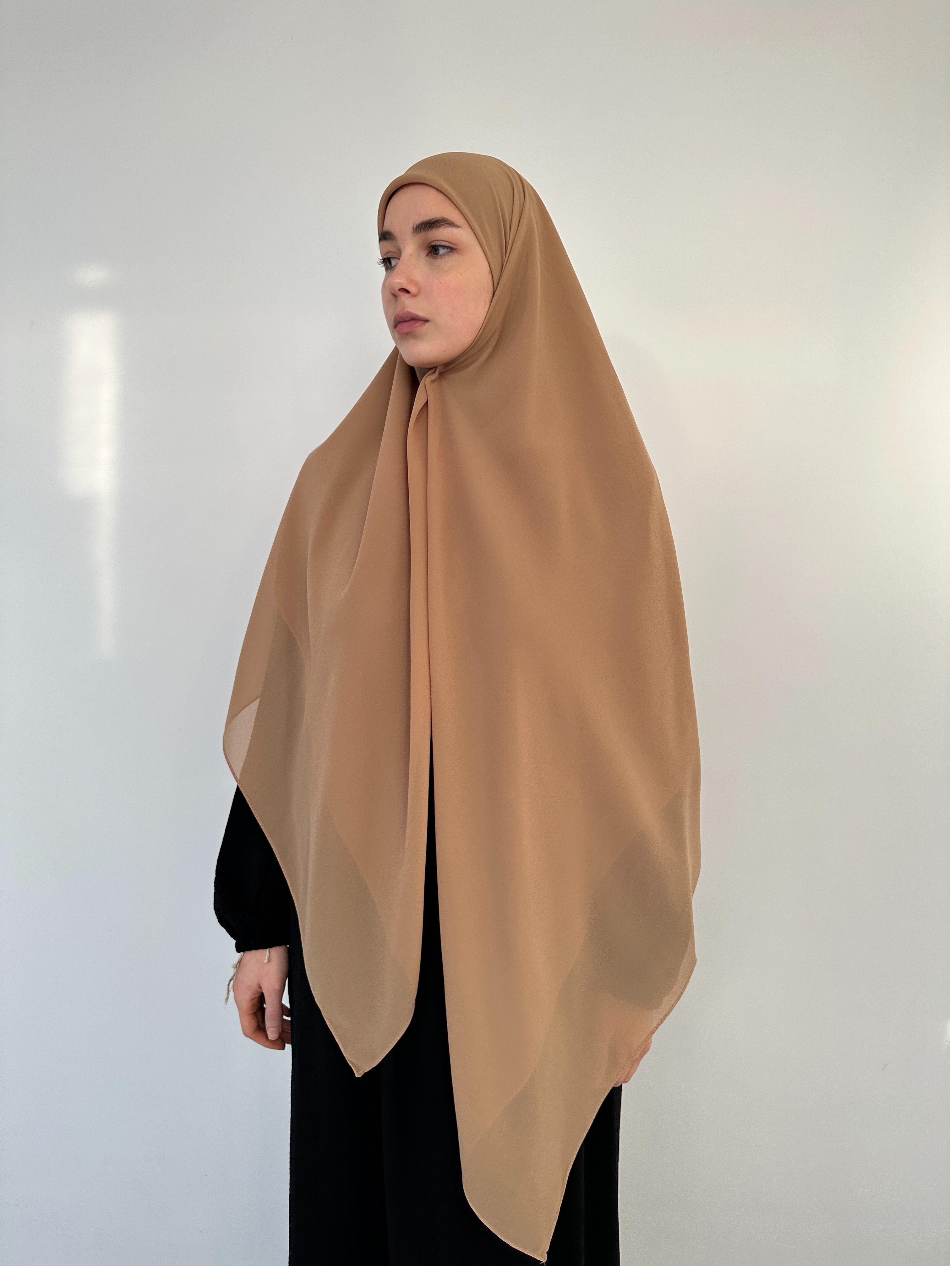 XL QUADRATISCHER HIJAB AUS KARAMELLMUSLIN