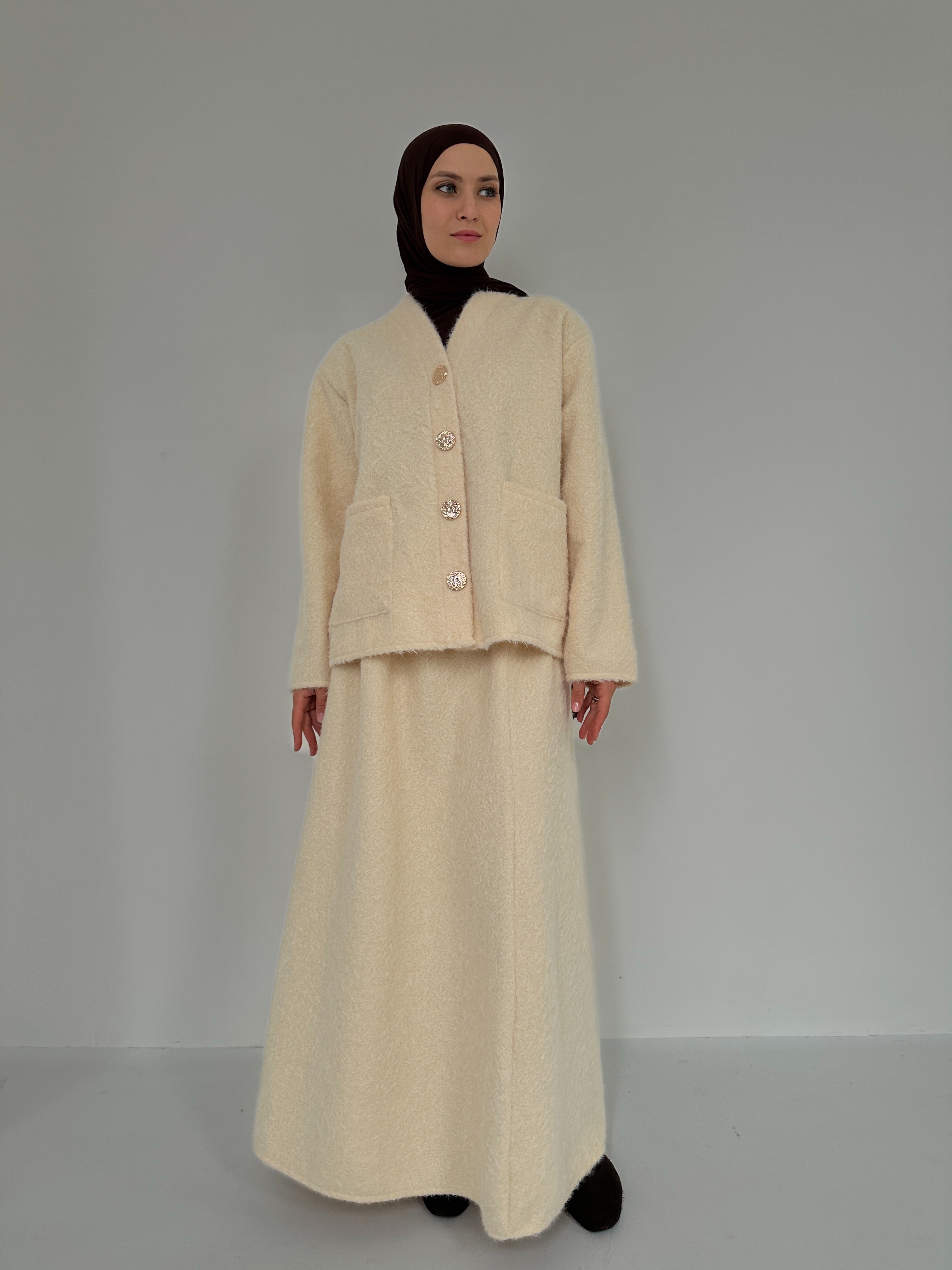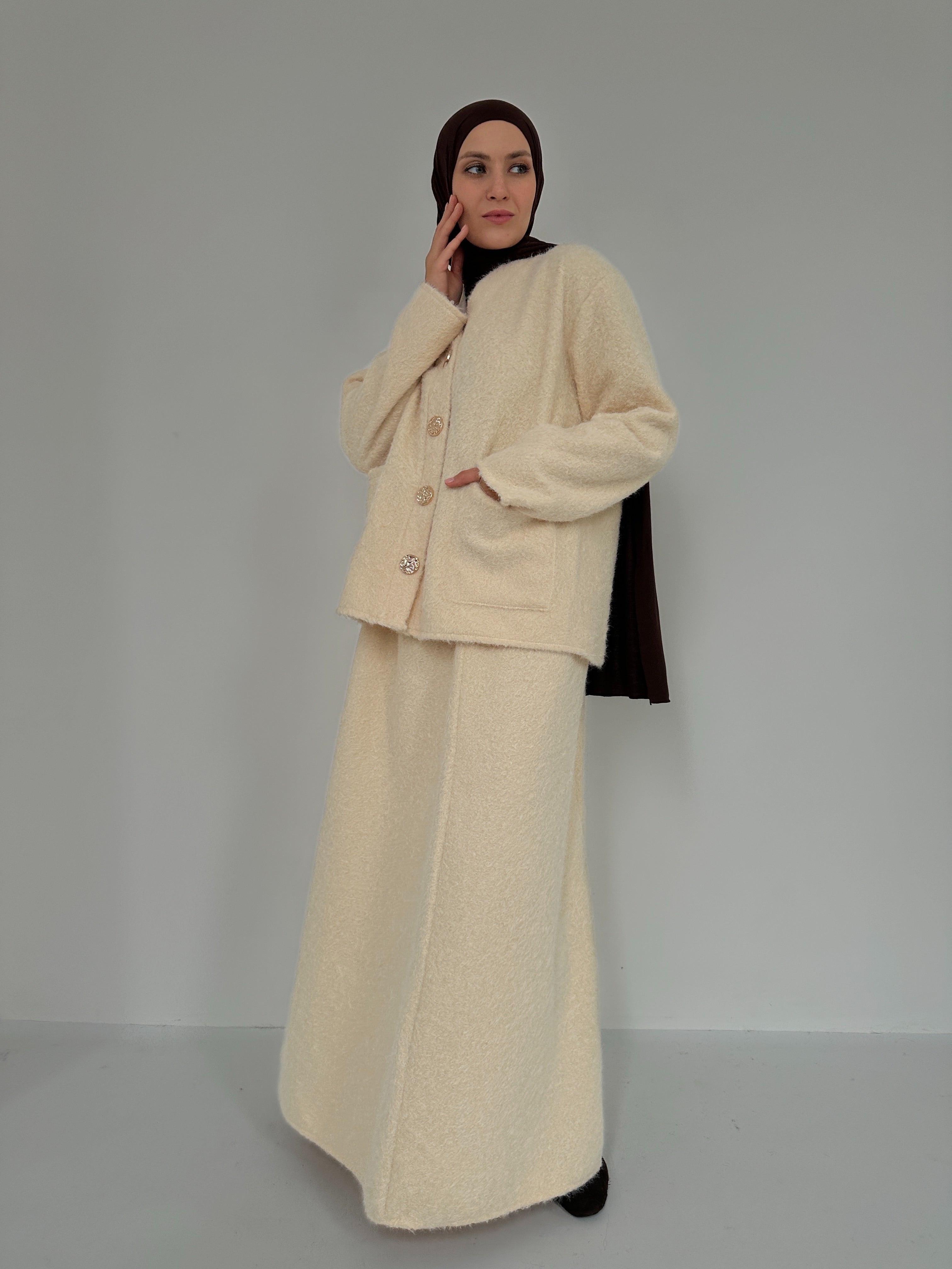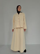 Cet ensemble deux pièces se compose d'une jupe longue ample et d'une veste décontractée