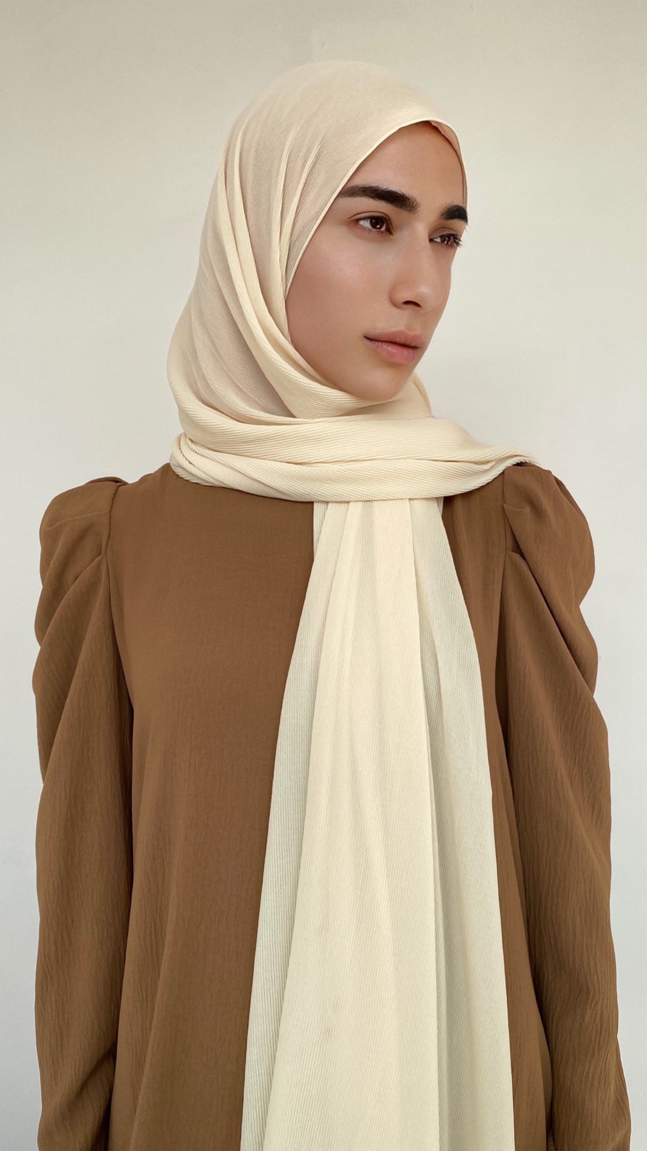Dieser Hijab ist aus Chiffon, aber in einem einzigartigen Stil: er ist fein gerippt/plissiert.