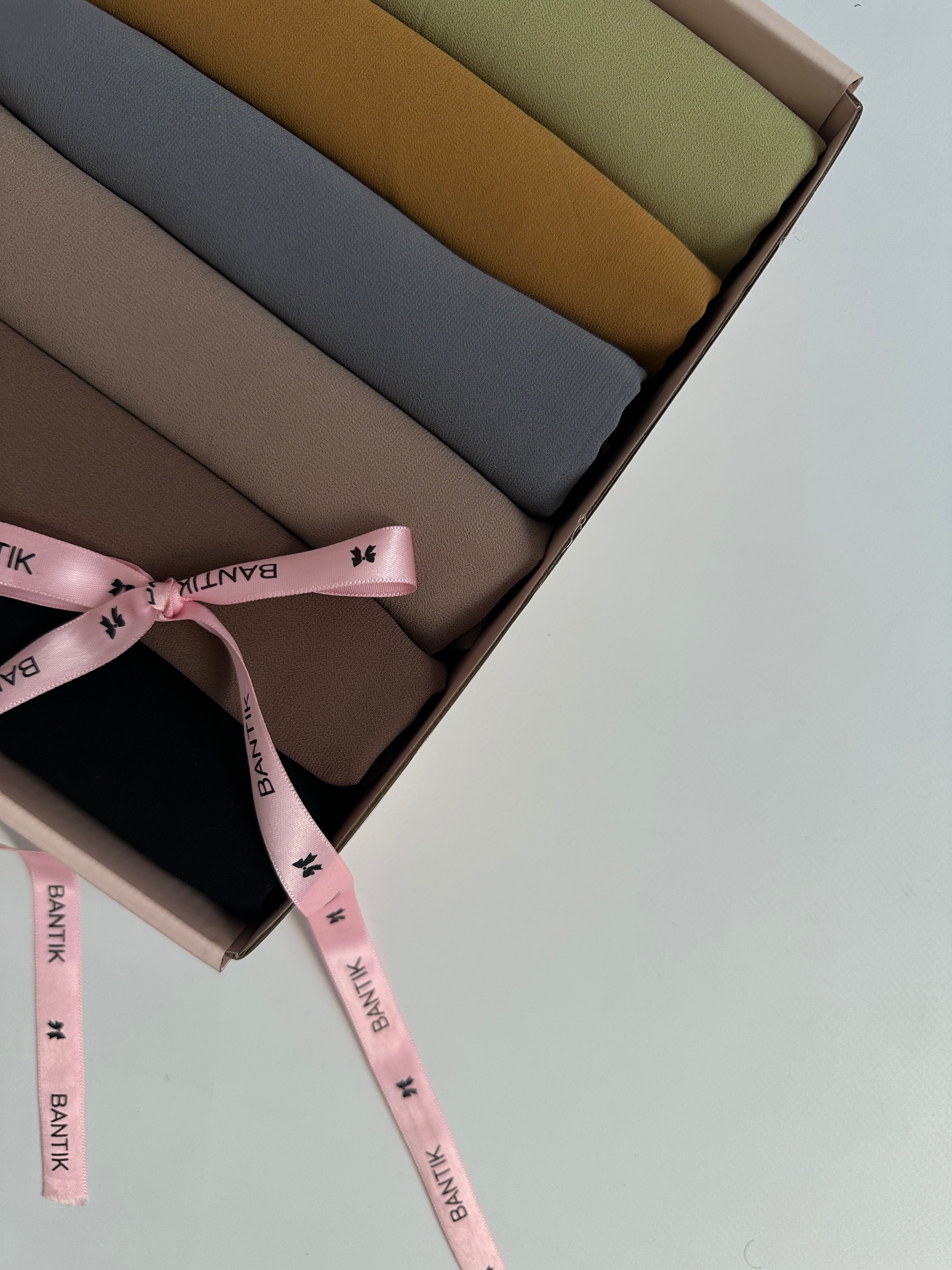 Discover our exclusive box featuring six chiffon hijabs, perfect for any occasion. Lightweight, elegant, and easy to wear, these hijabs will accompany you every day with comfort and style.