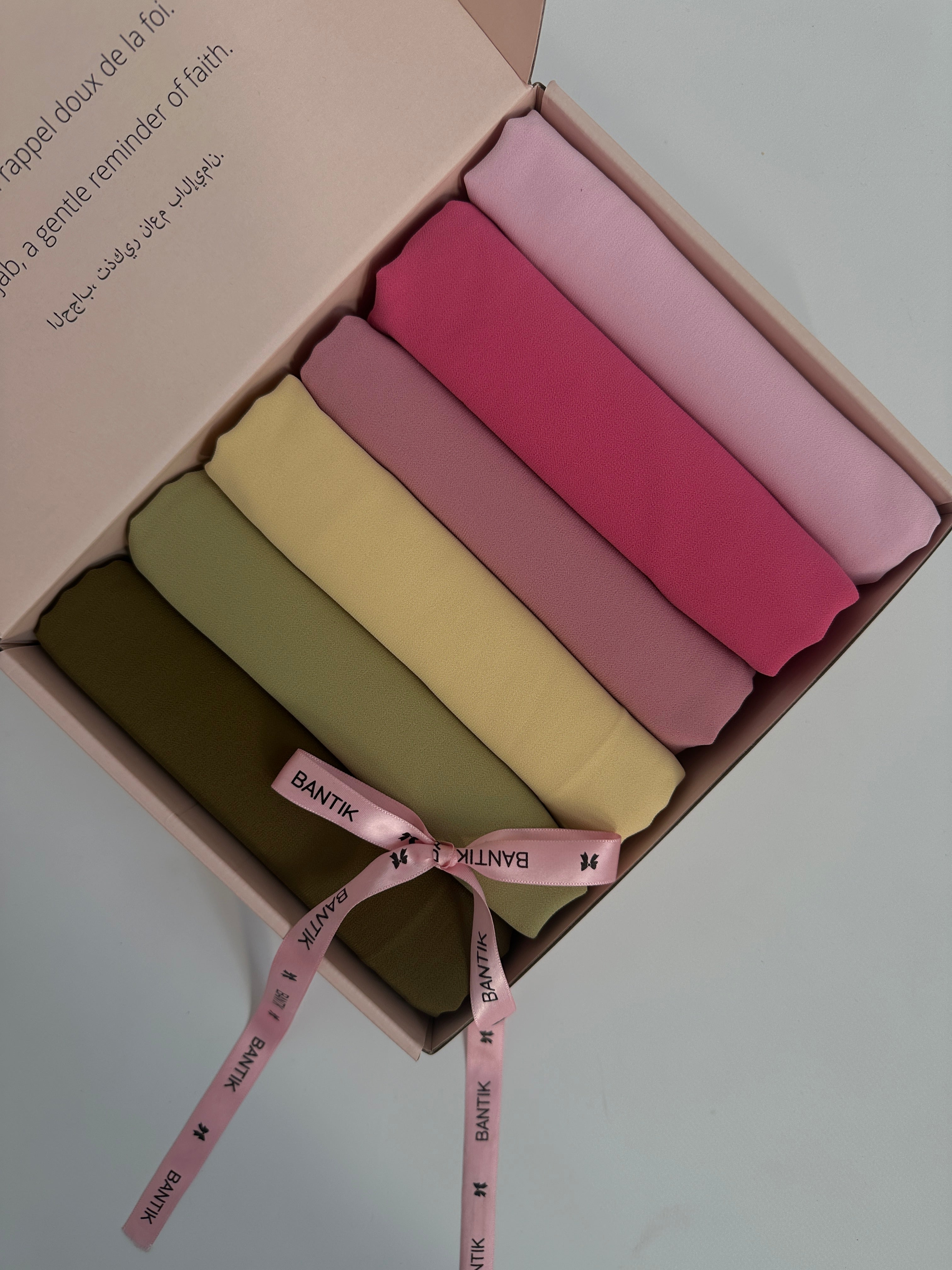 Discover our exclusive box of 6 chiffon hijabs , perfect for all occasions. Lightweight, elegant, and easy to wear, these hijabs will accompany you every day with comfort and style.