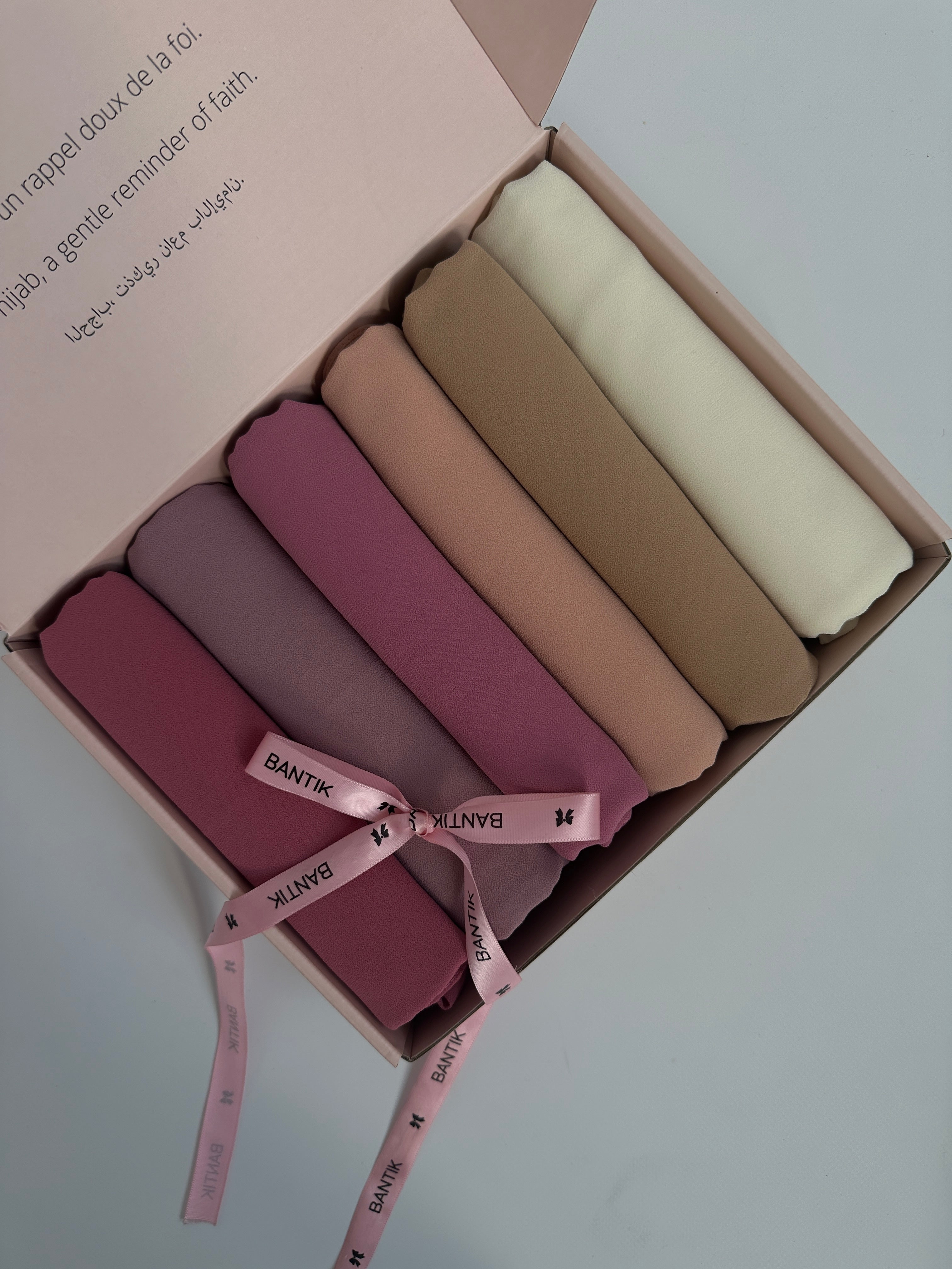 Discover our exclusive box featuring six chiffon hijabs, perfect for any occasion. Lightweight, elegant, and easy to wear, these hijabs will accompany you every day with comfort and style.