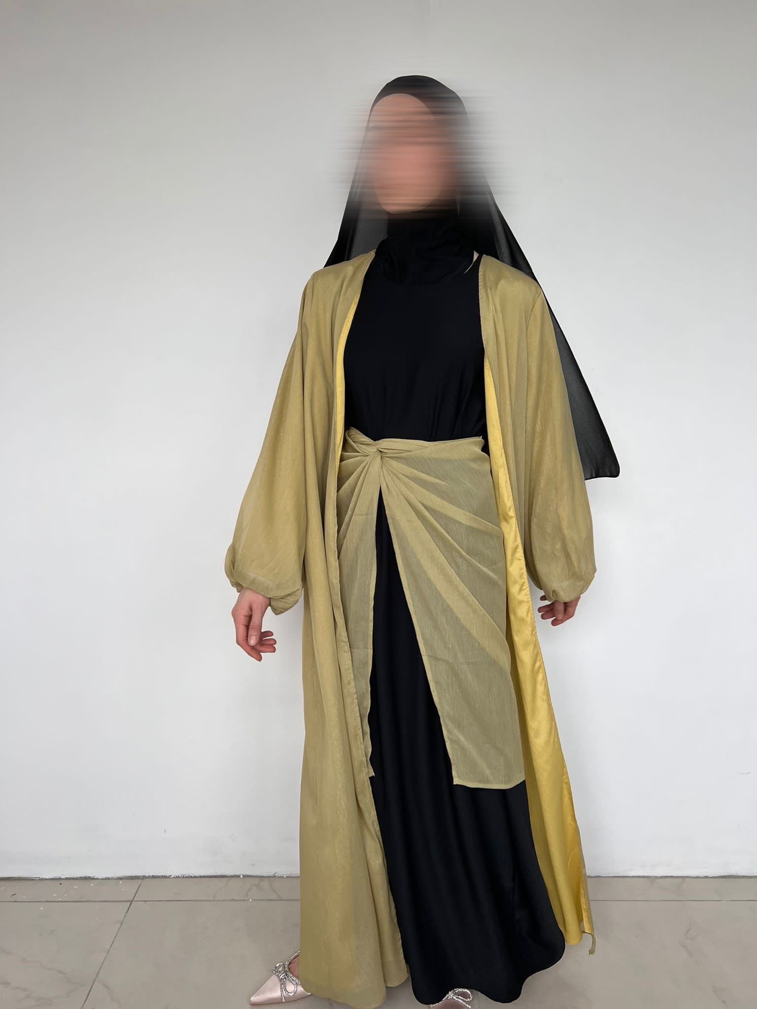 Discover our kimono and tie apron set, a perfect blend of comfort and style. Made from 100% polyester, this set is ideal for casual occasions or special outings. The flowing kimono, paired with a tie apron, allows you to create an elegant and modest look while highlighting your figure.