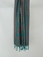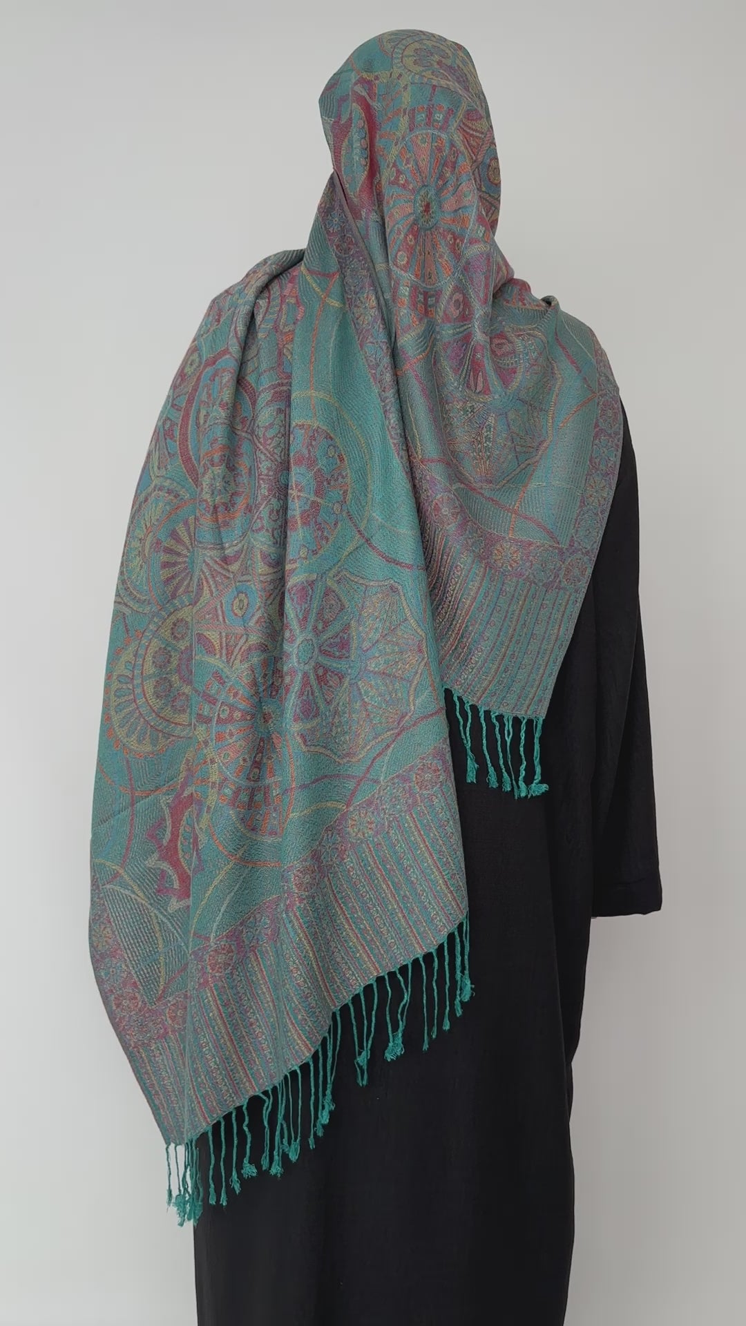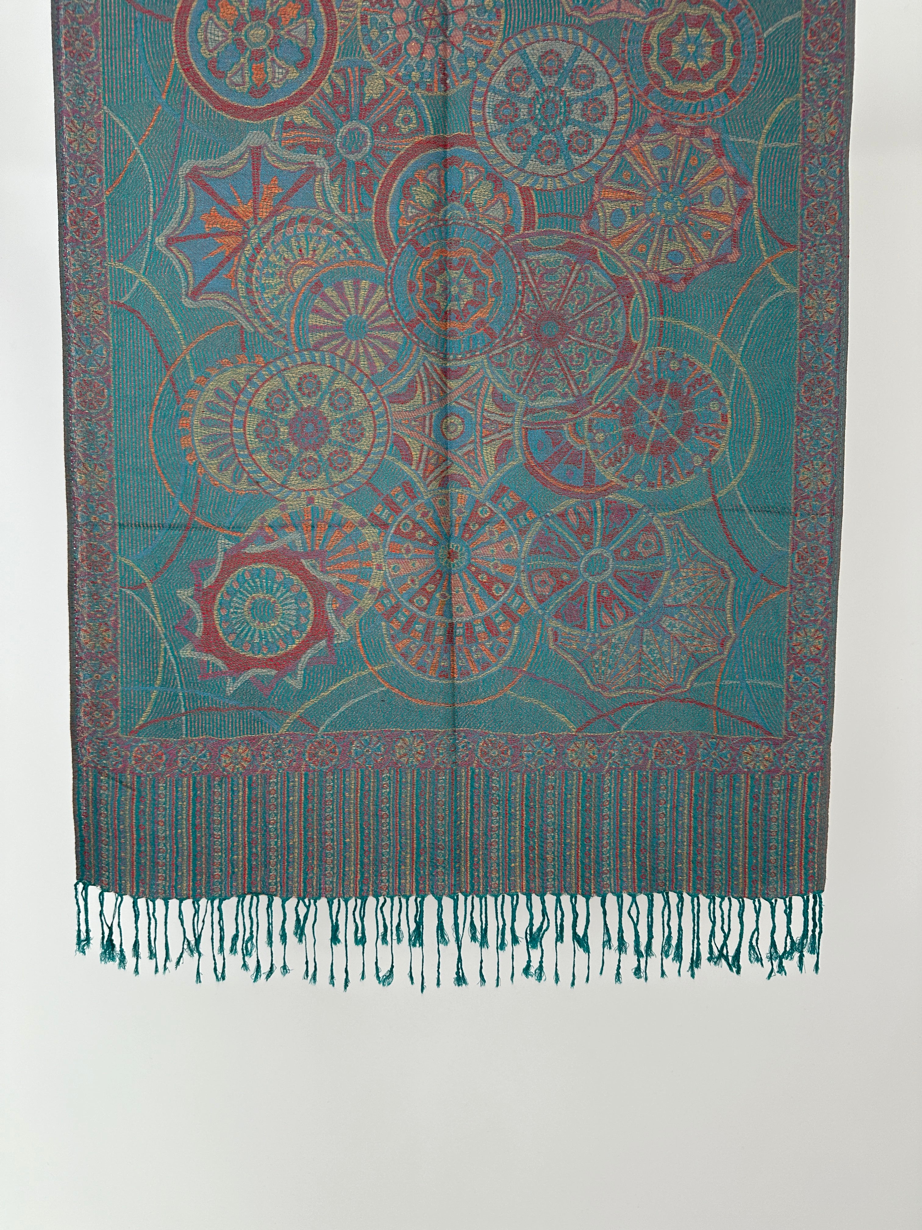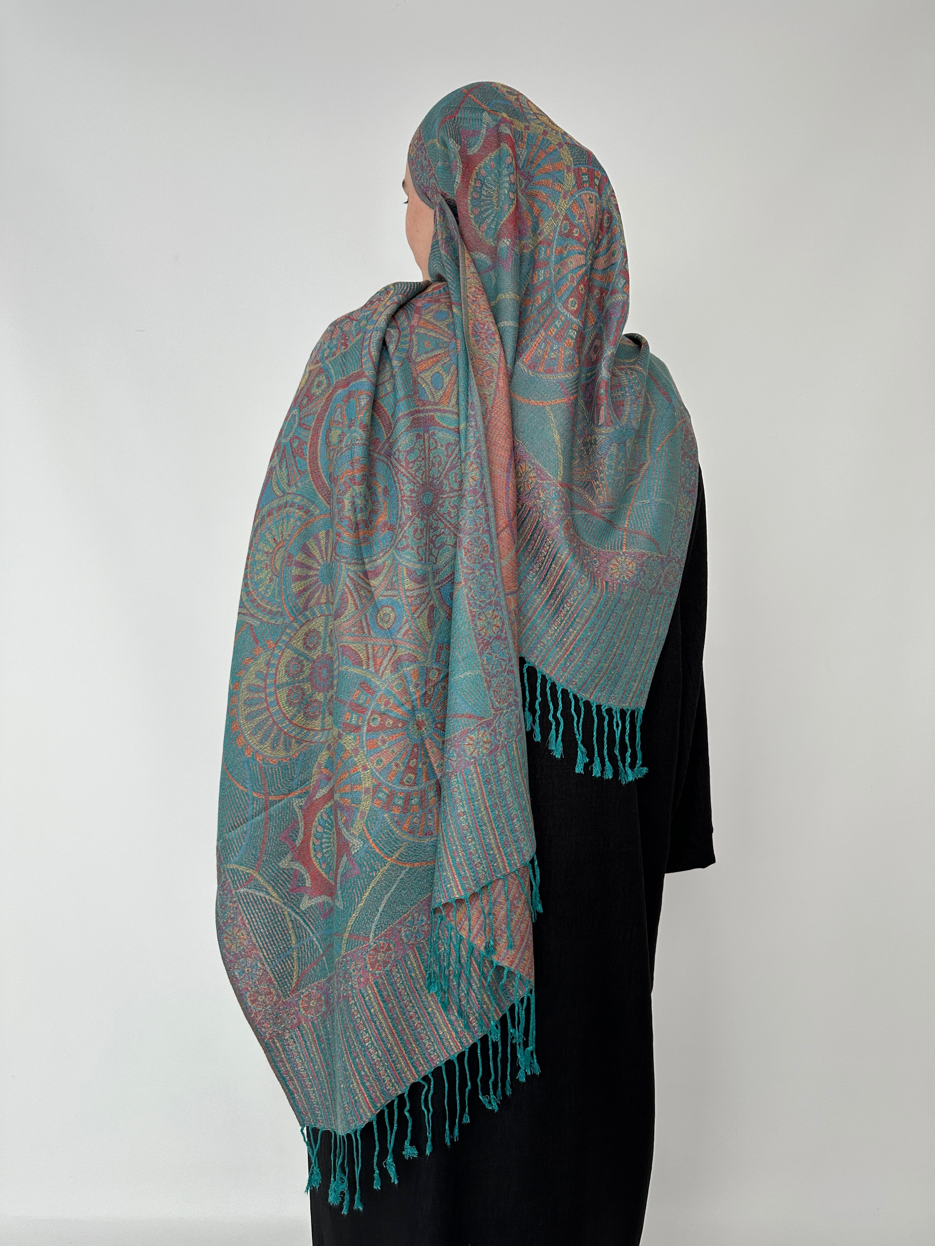 This elegant pashmina features delicate patterns and subtle fringes at the ends. Its viscose composition gives it a soft and fluid texture, ideal for adding a refined touch to your outfit. Versatile and lightweight, it is perfect for all occasions, whether casual or formal.