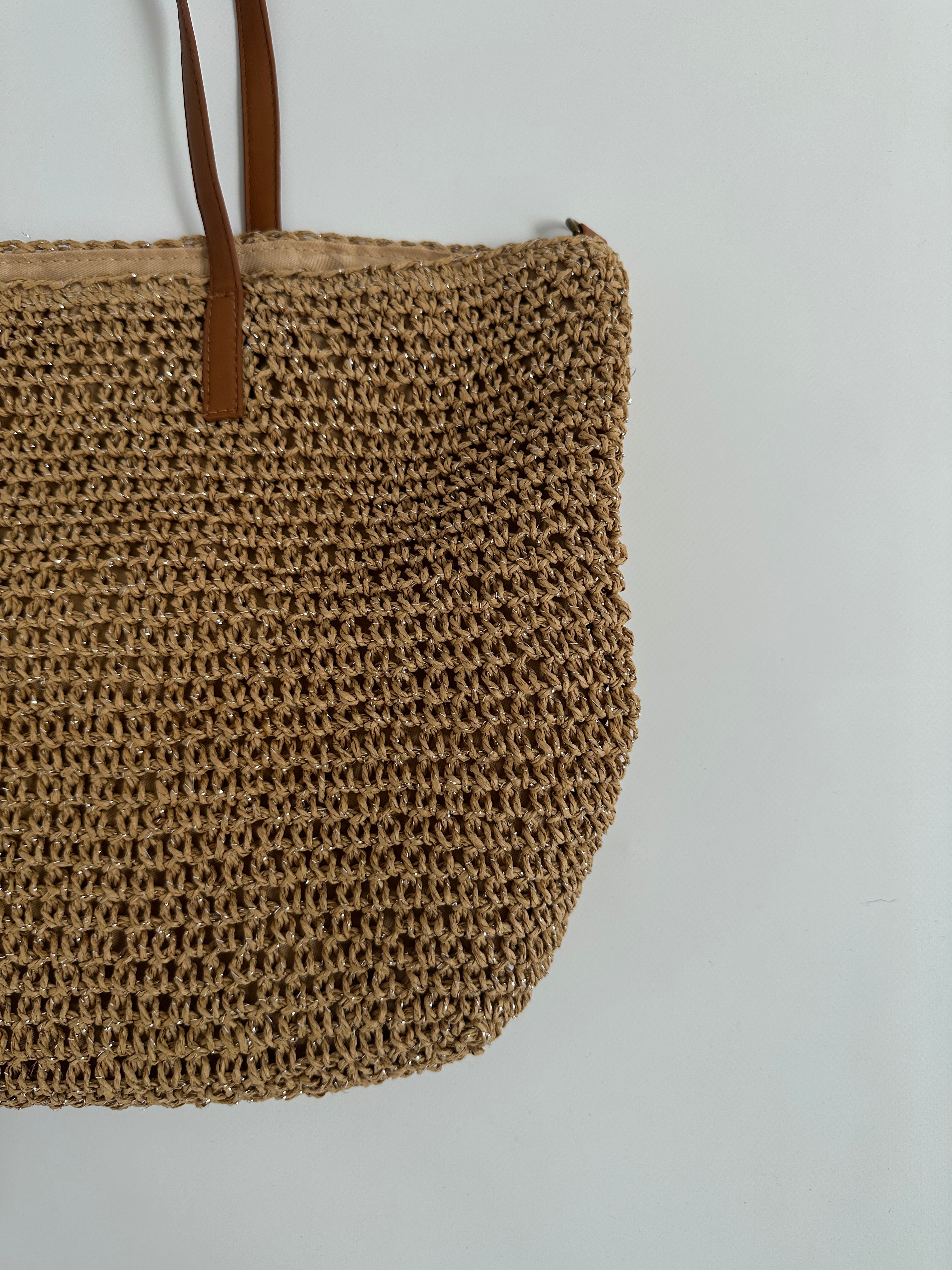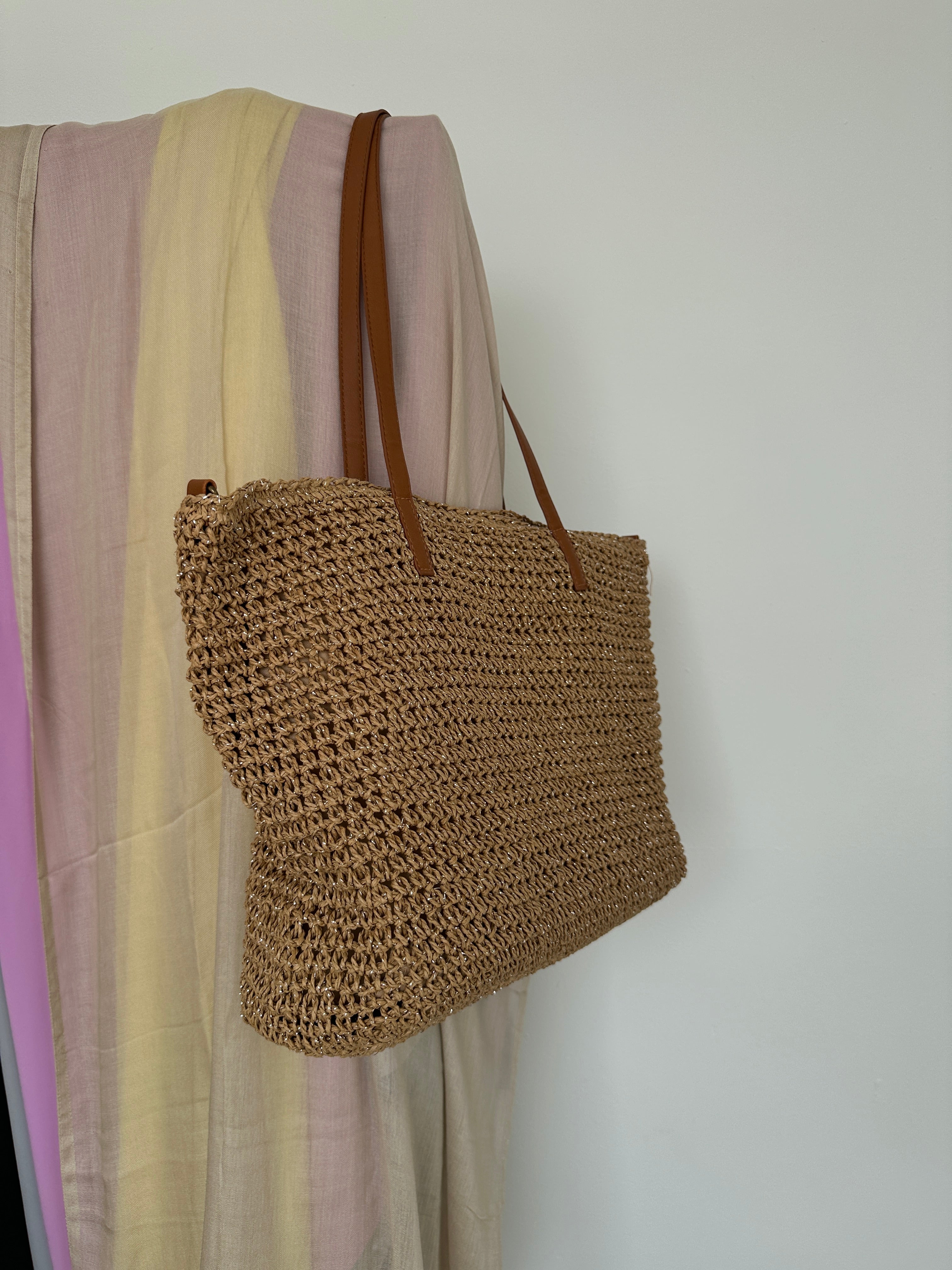 Far from a simple beach bag, this woven design with silver threads adds a subtle touch of shine to your summer outfits. Both chic and practical, it stands out with its sophisticated design, perfect for the beach, a stroll by the sea, or lunch on the terrace.