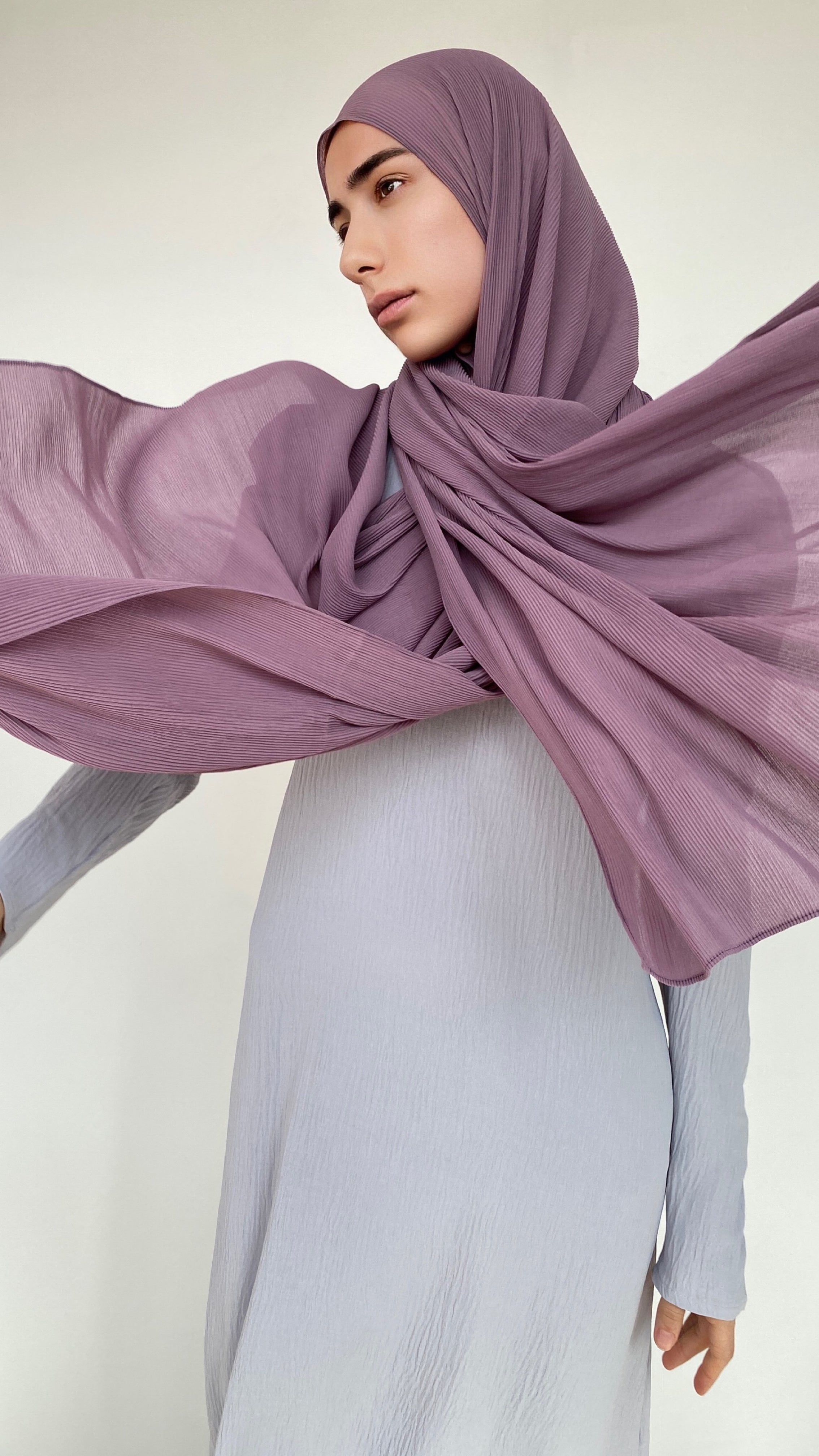 This hijab is in Chiffon but in a unique style: it is finely ribbed/pleated.