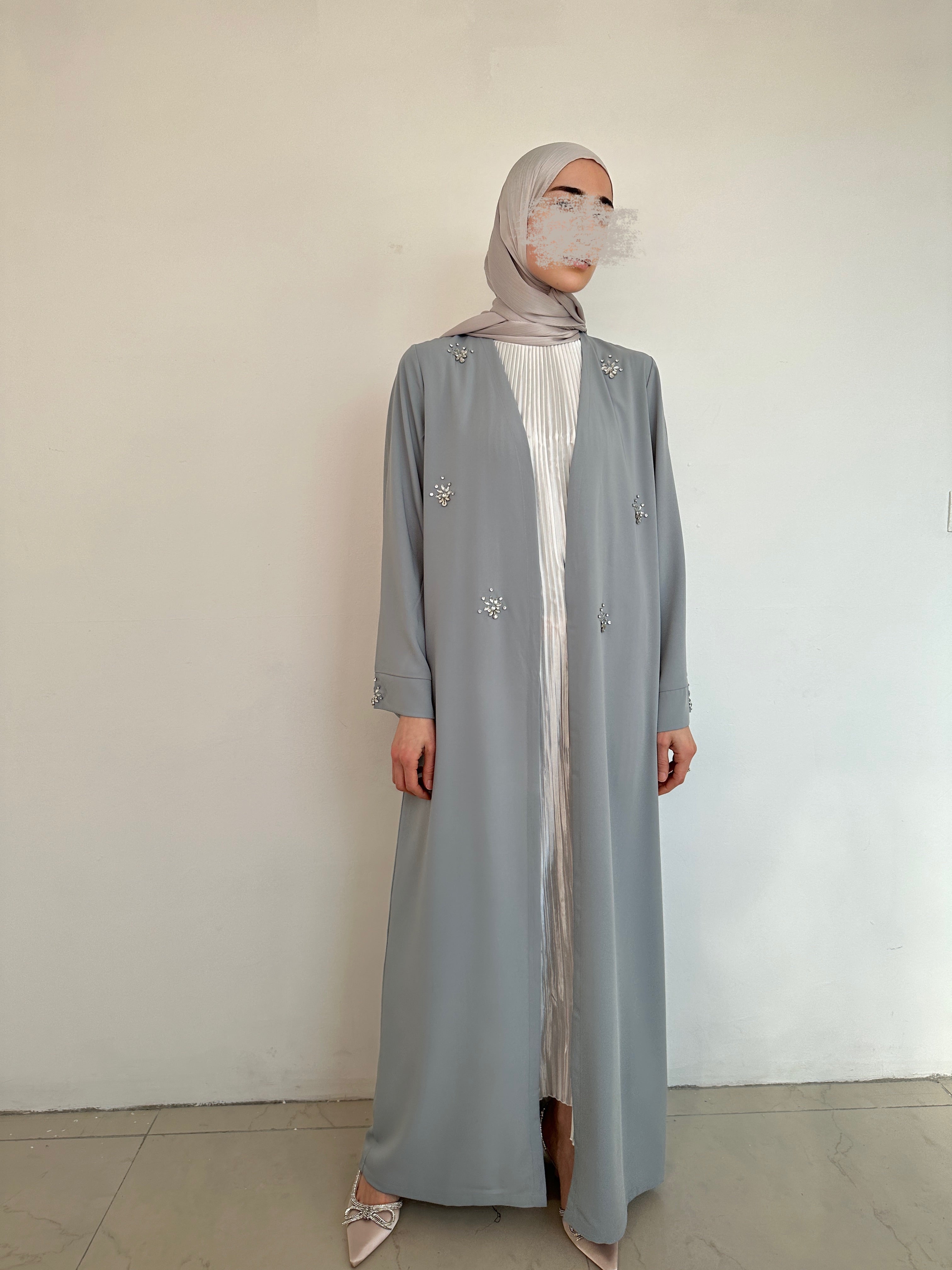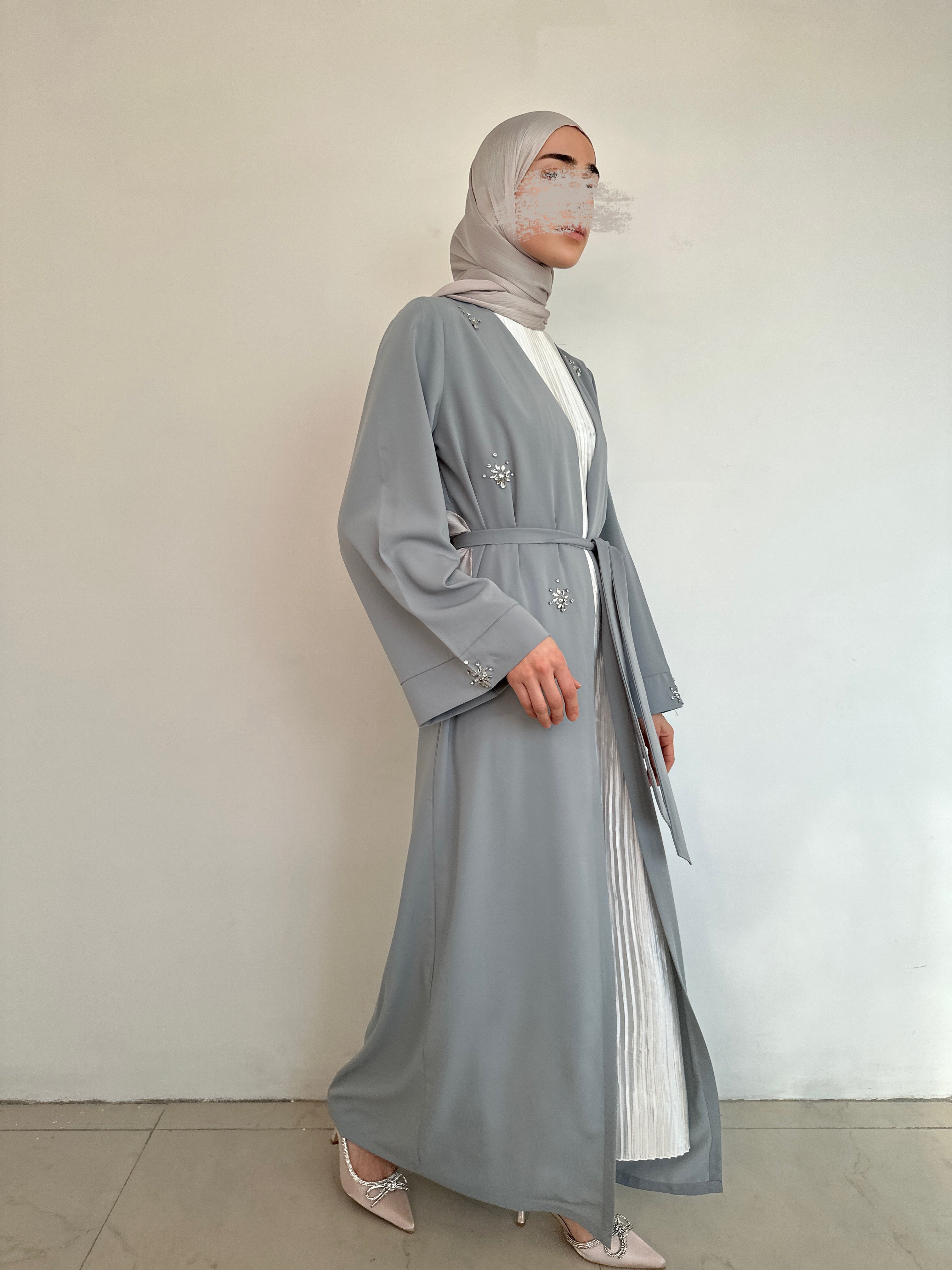 This Dubai style kimono is a unique and elegant piece. Made from a high quality fabric, it offers a sophisticated look and optimal comfort. The kimono is richly decorated with lush rhinestone floral patterns. The floor length adds a touch of elegance.