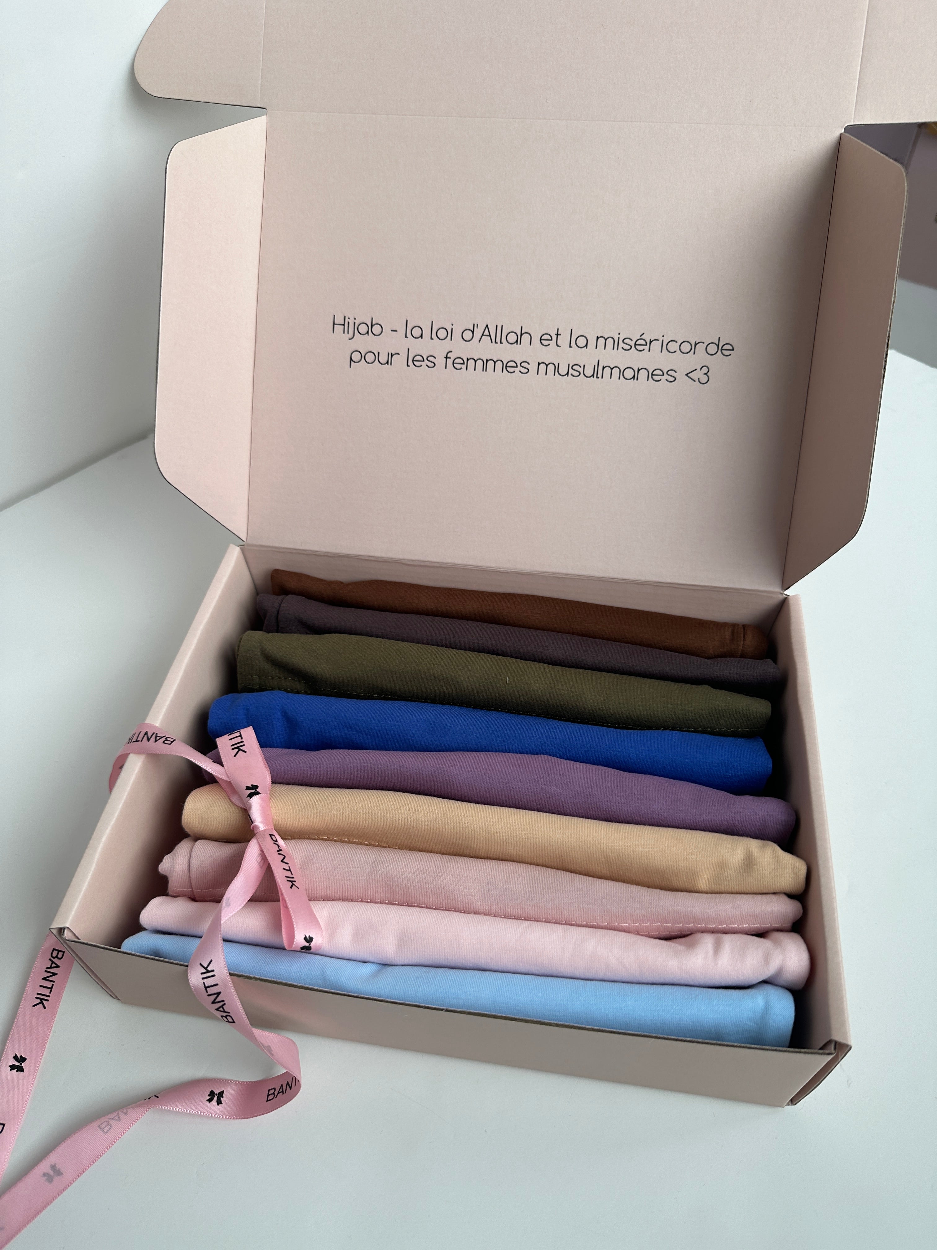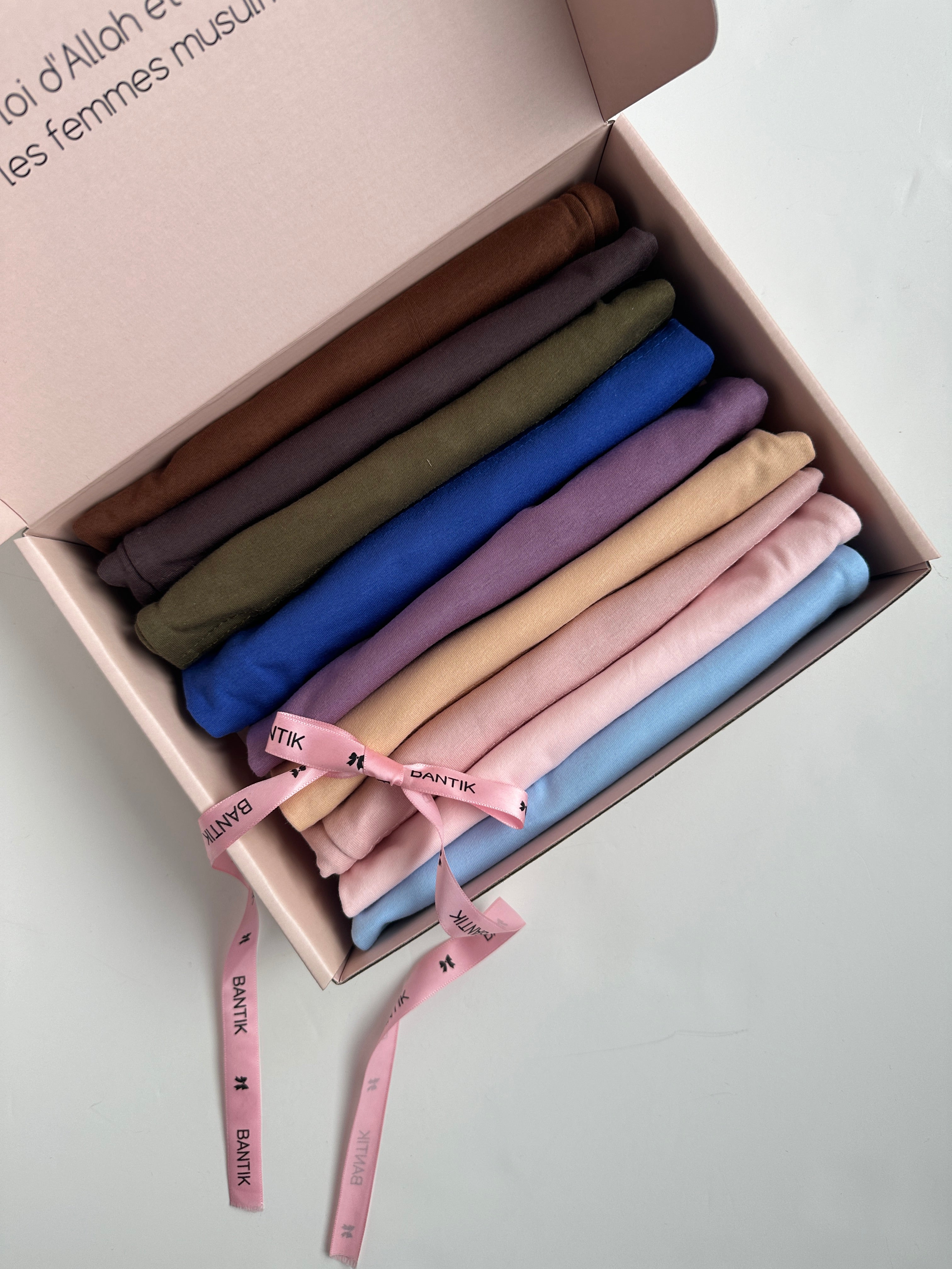 Discover our box of 9 closed caps, designed to discreetly and securely accompany your hijabs throughout the day.