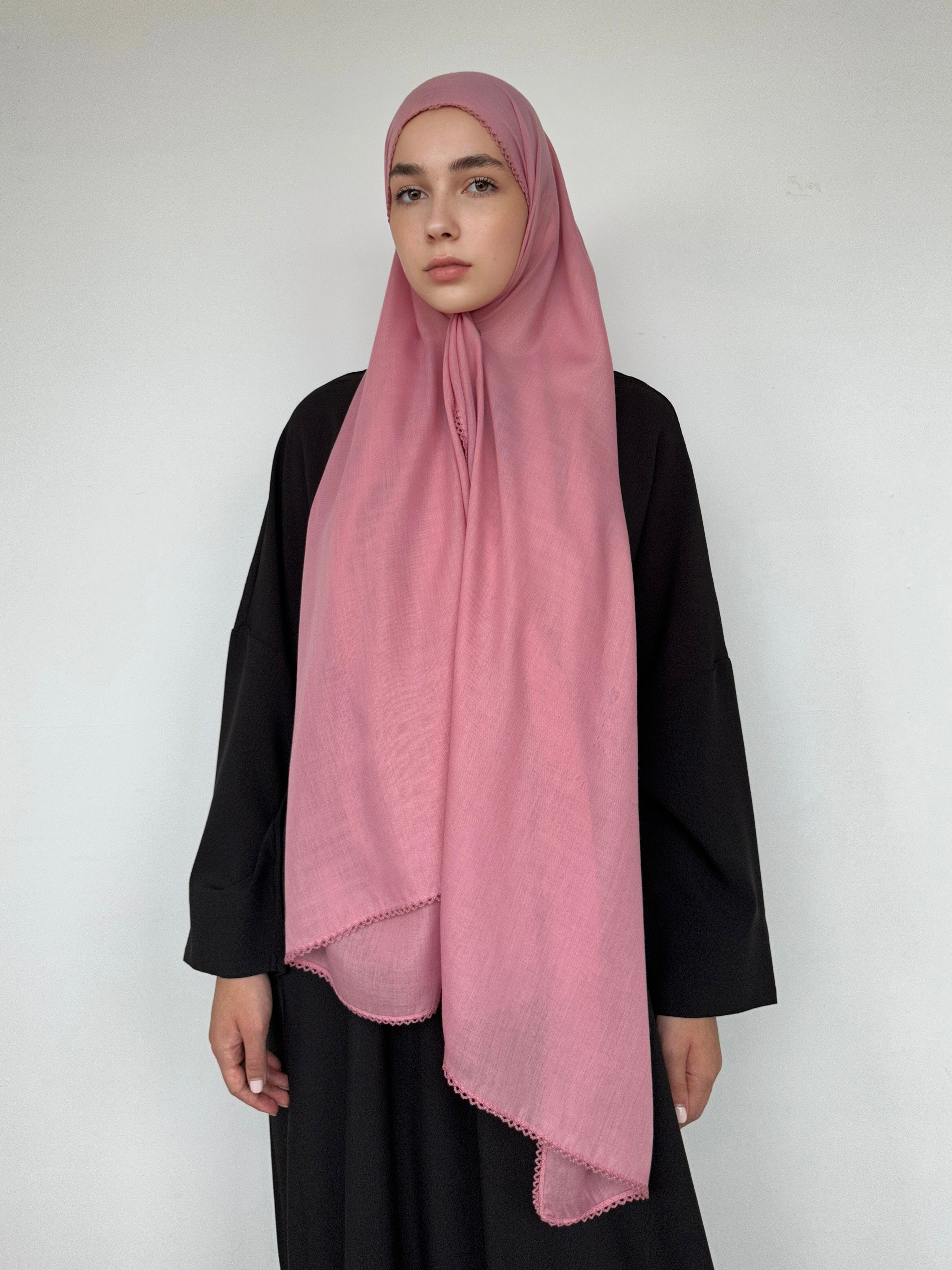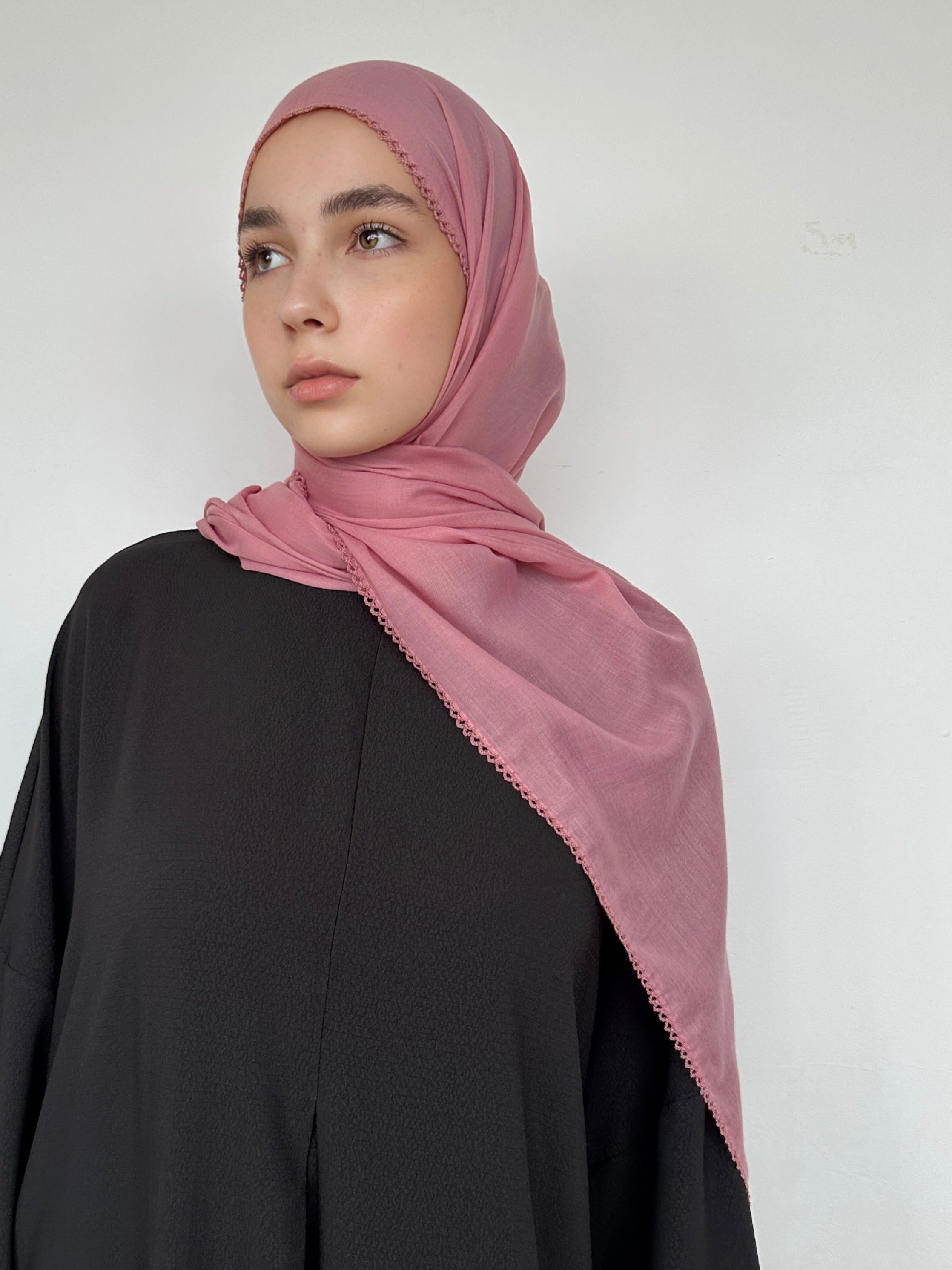 High-end 100% cotton hijab with a soft touch. Breathable and easy to handle. Finished with wave-patterned braids to adorn your hijab and effectively prevent it from fraying.