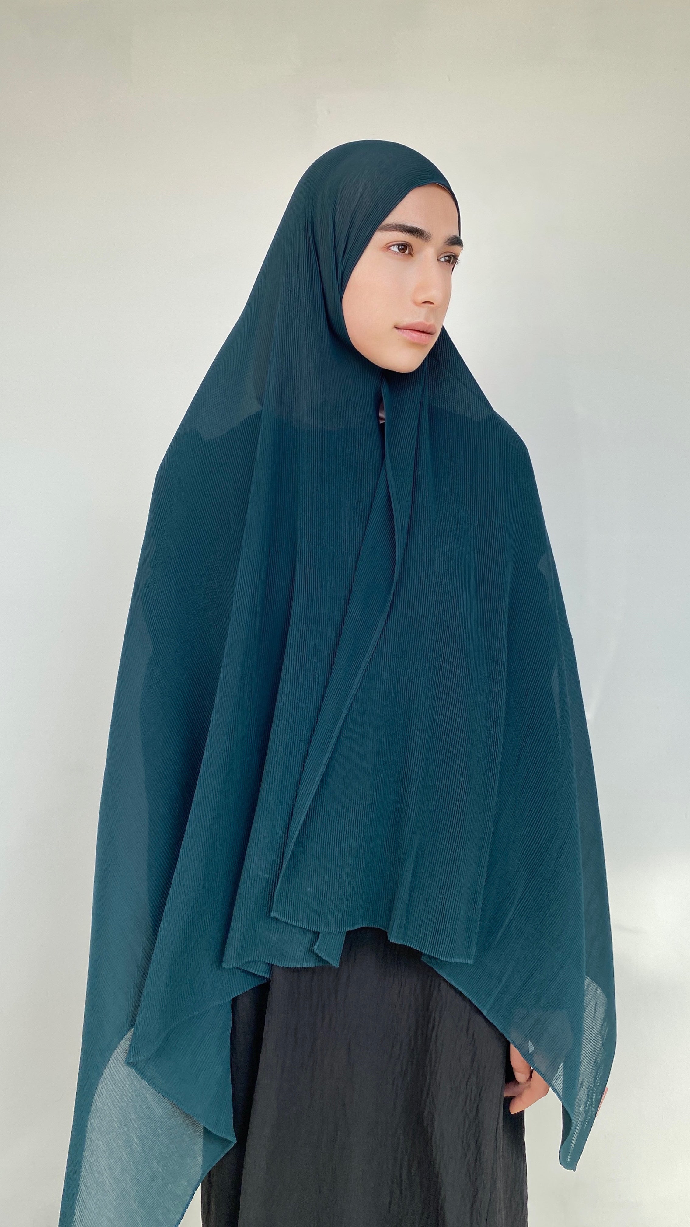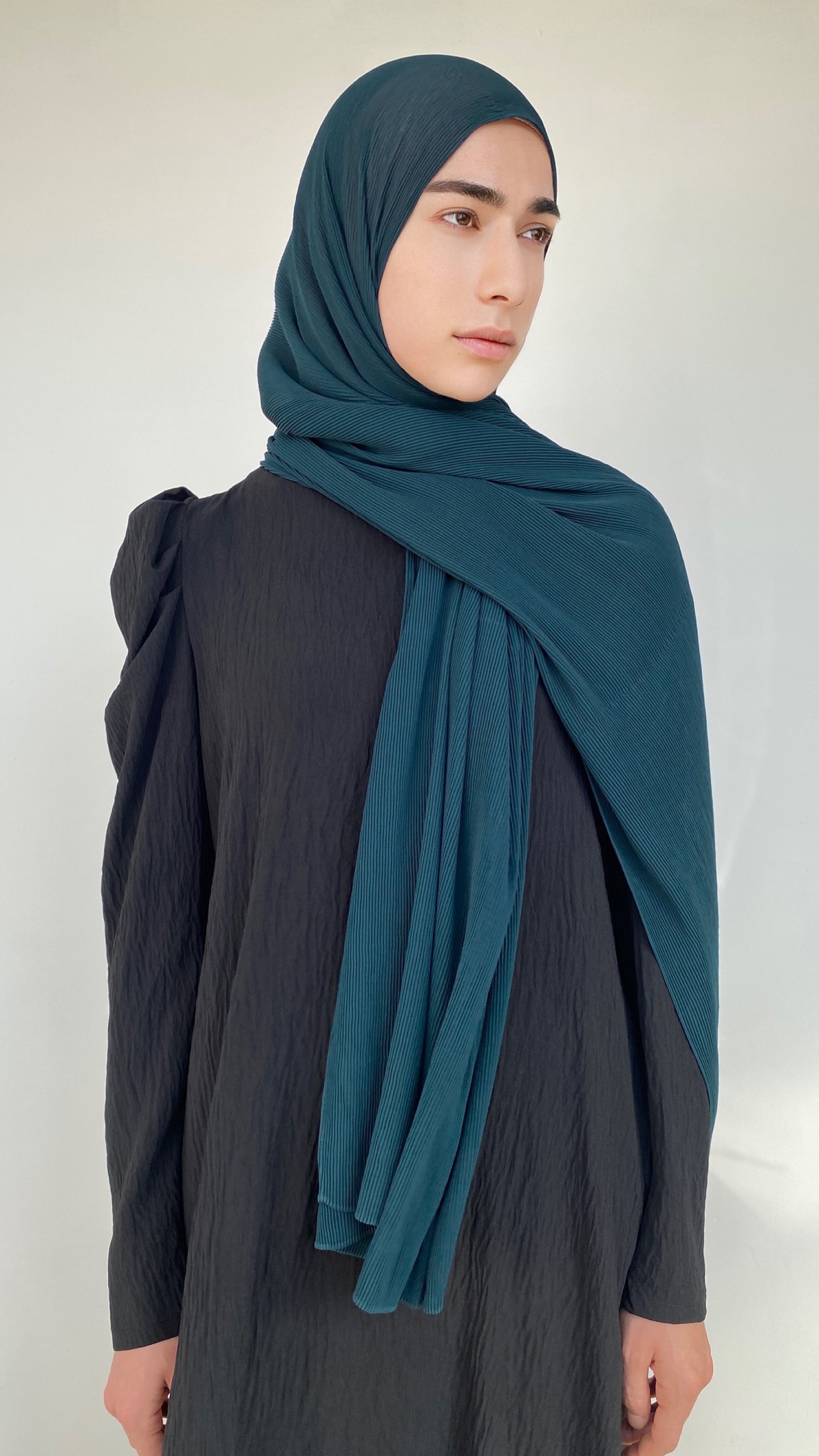 HIJAB MOUSSELINE PLISSÉ BLEU CANARD
