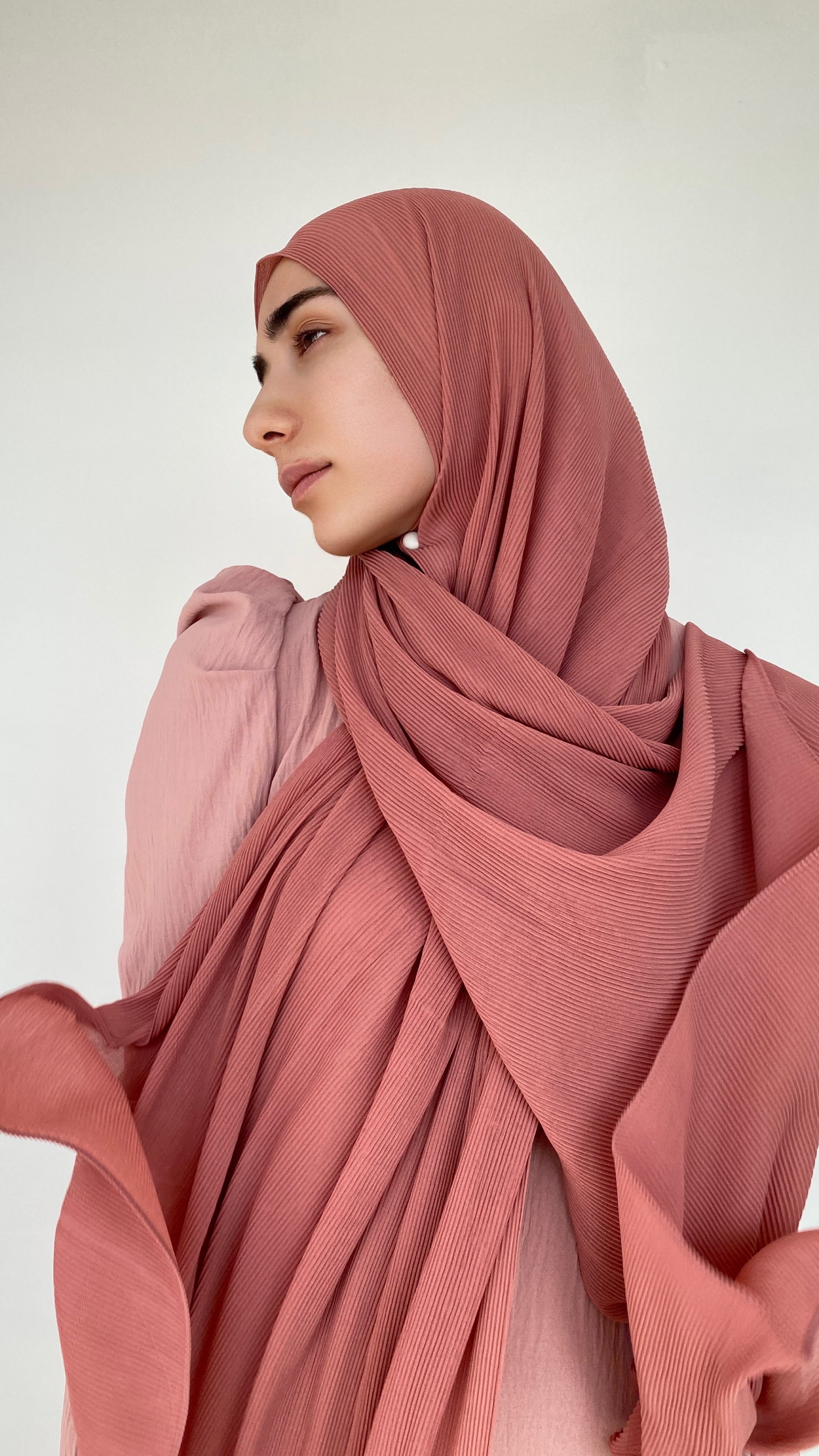 This hijab is in Chiffon but in a unique style: it is finely ribbed/pleated.