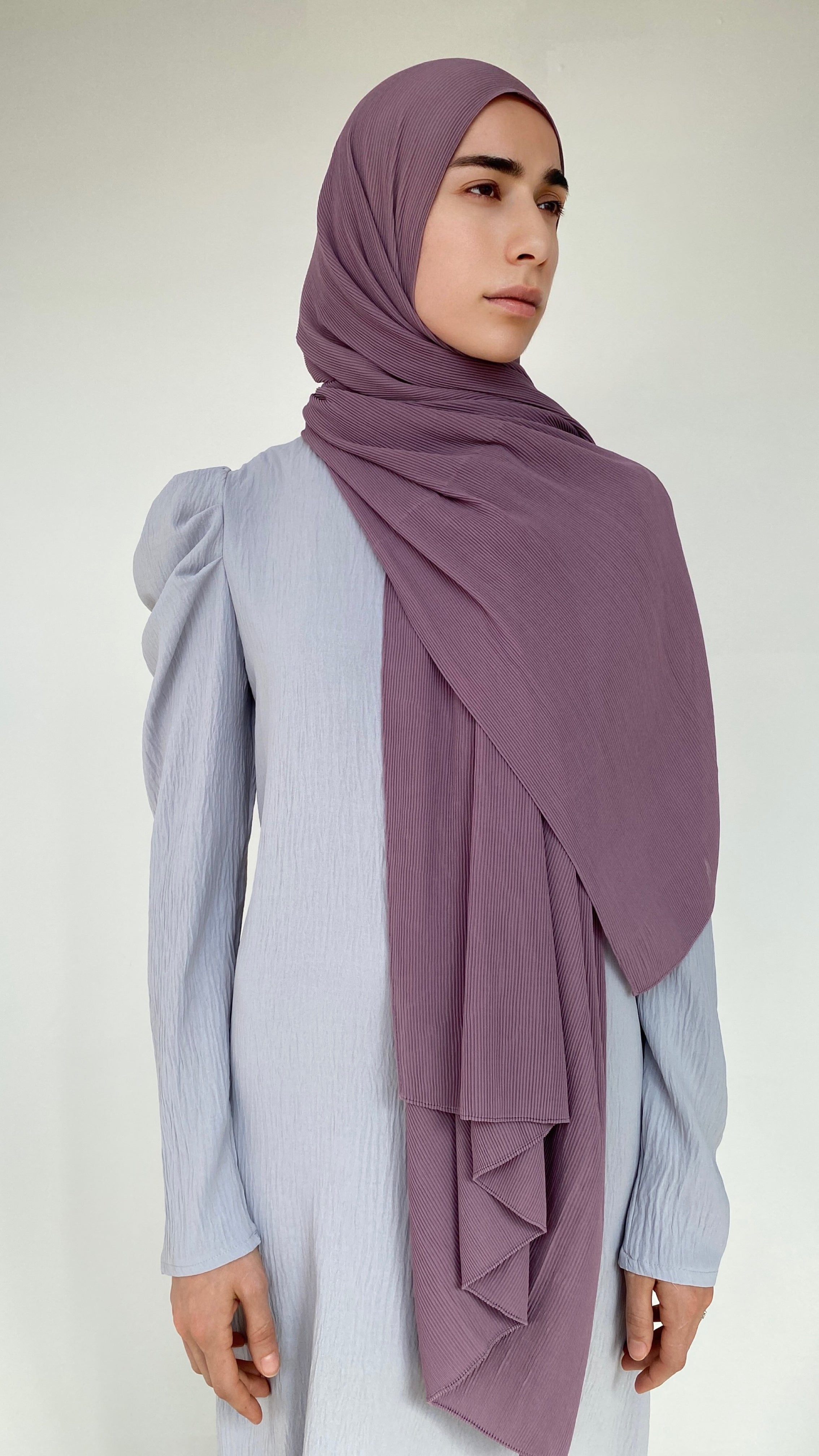 This hijab is in Chiffon but in a unique style: it is finely ribbed/pleated.