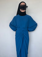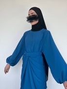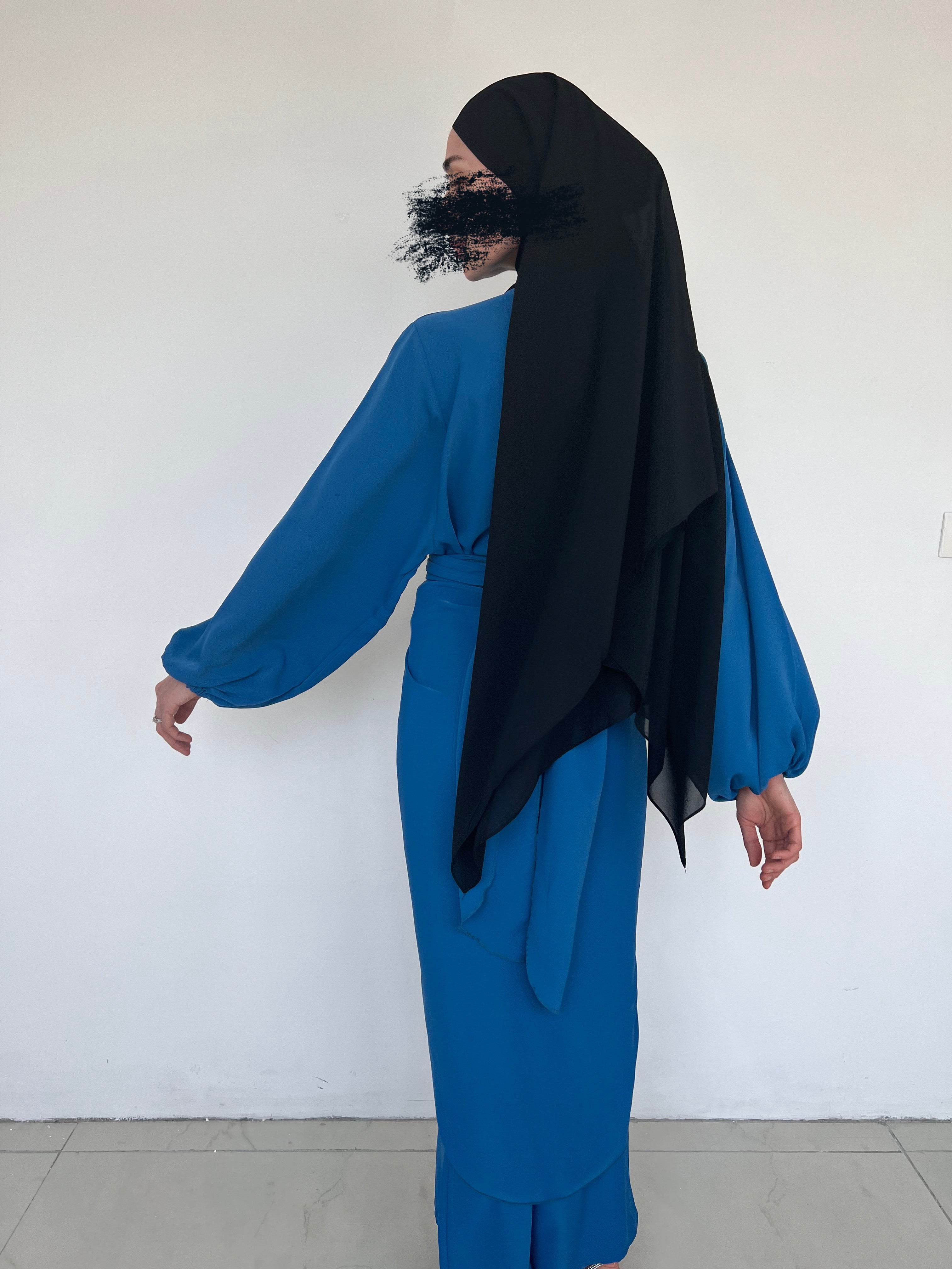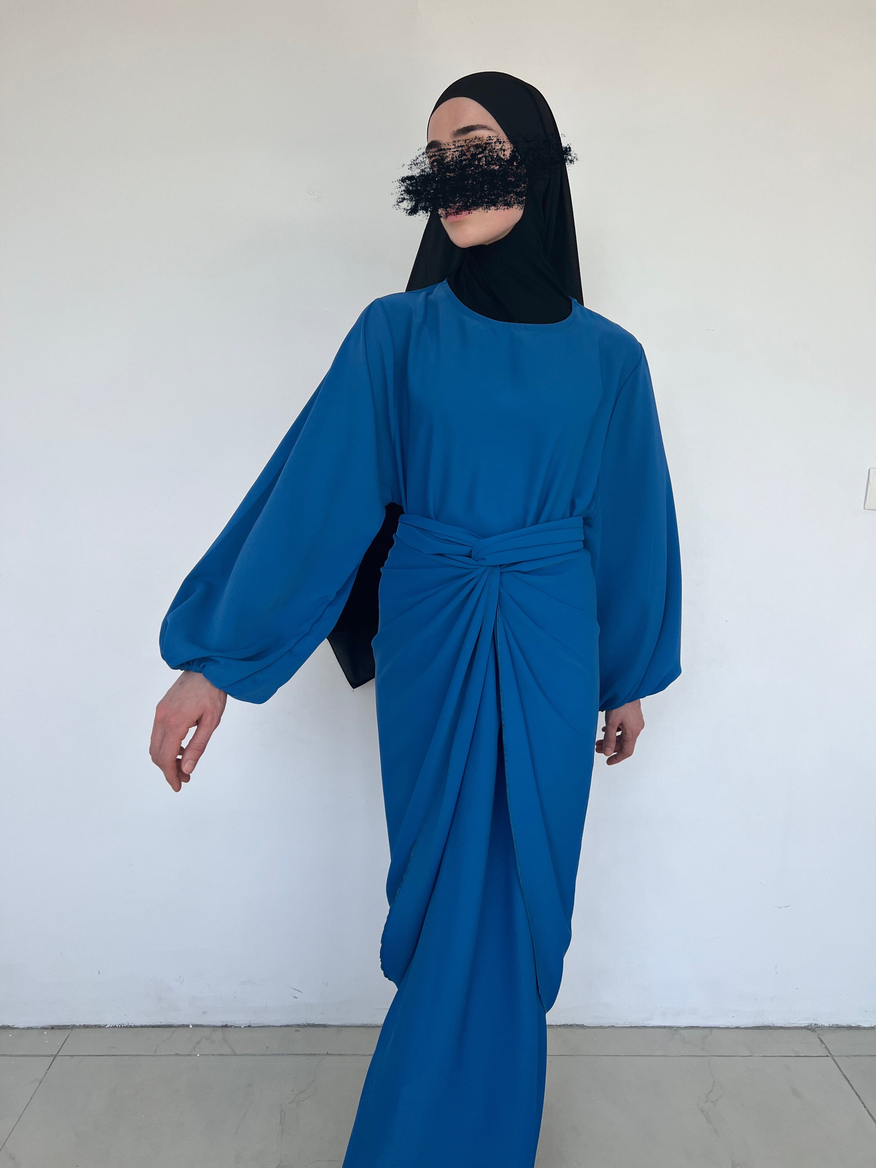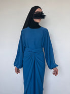 In fresh and opaque Silk of Medina fabric, opt for this sophisticated set. Two in one, this set offers you a simple abaya, without artifice, and a skirt to tie around the waist to add a layer of volume and mark the waist, the skirt is very light and does not weigh. You can pair it with one of our kimonos on top, for more coverage! The light fabric guarantees you a pleasant summer.