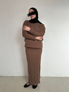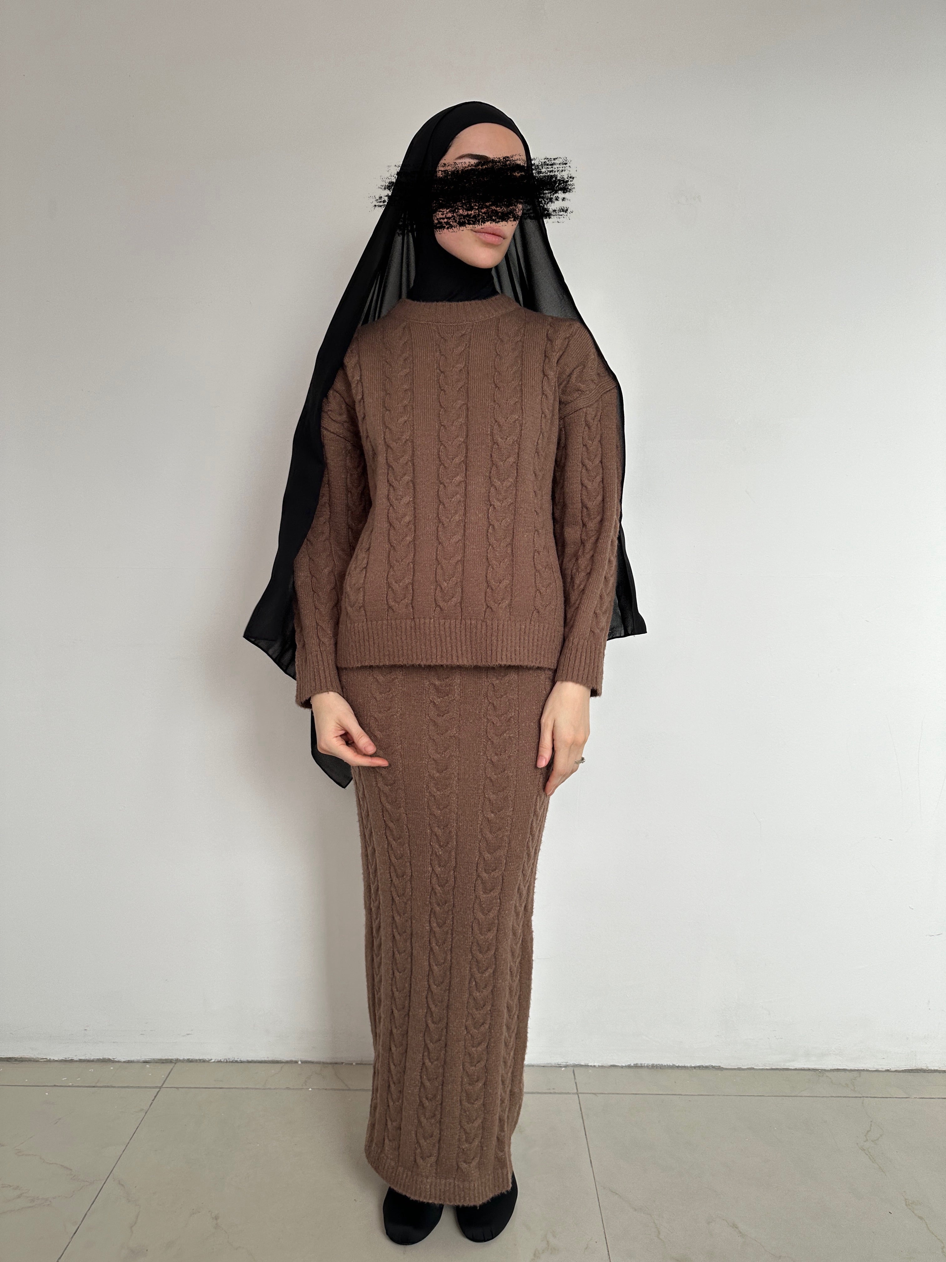 A cozy winter with this soft set that will keep you perfectly warm. Its turtleneck sweater has neat, ribbed details.