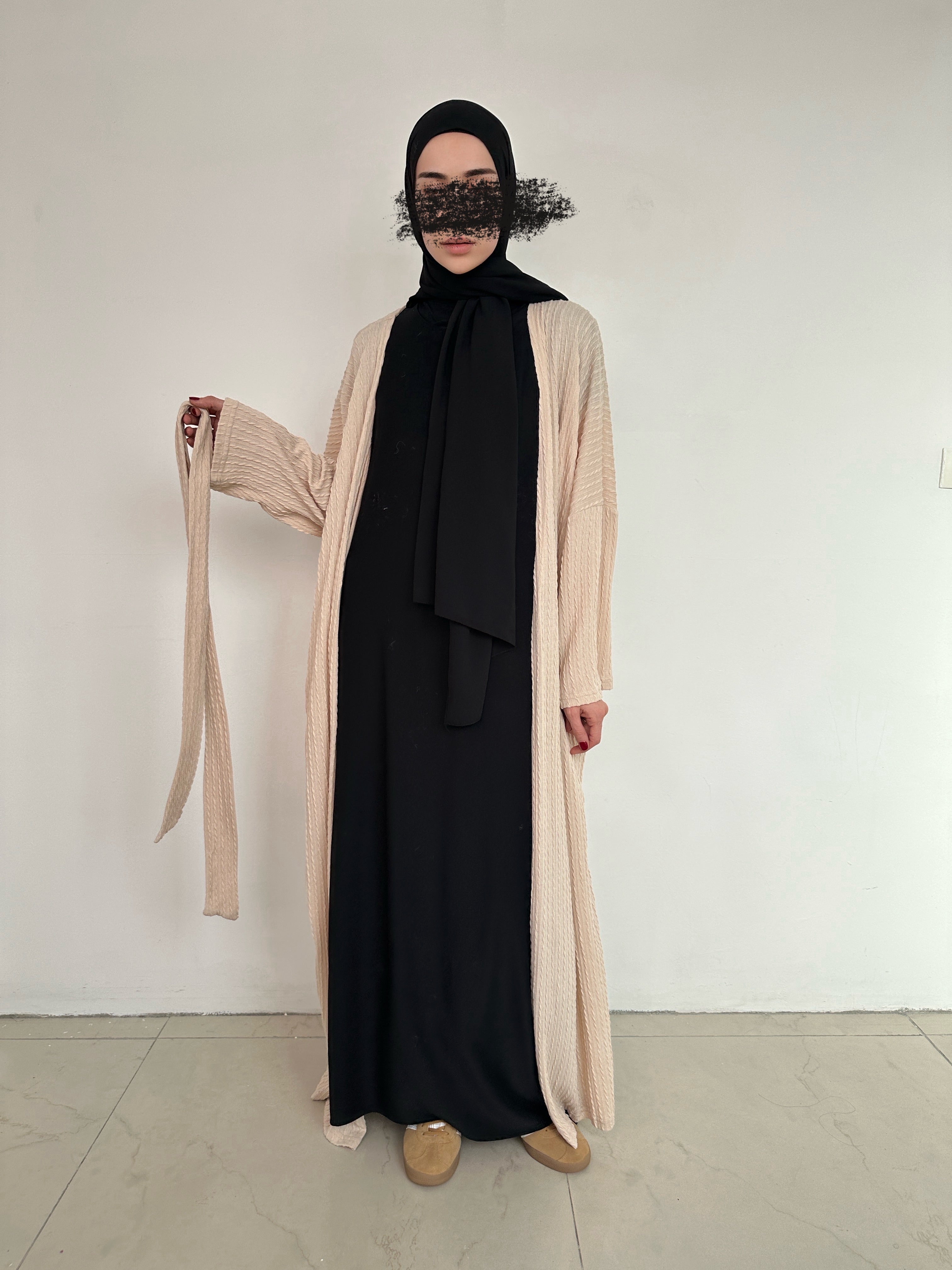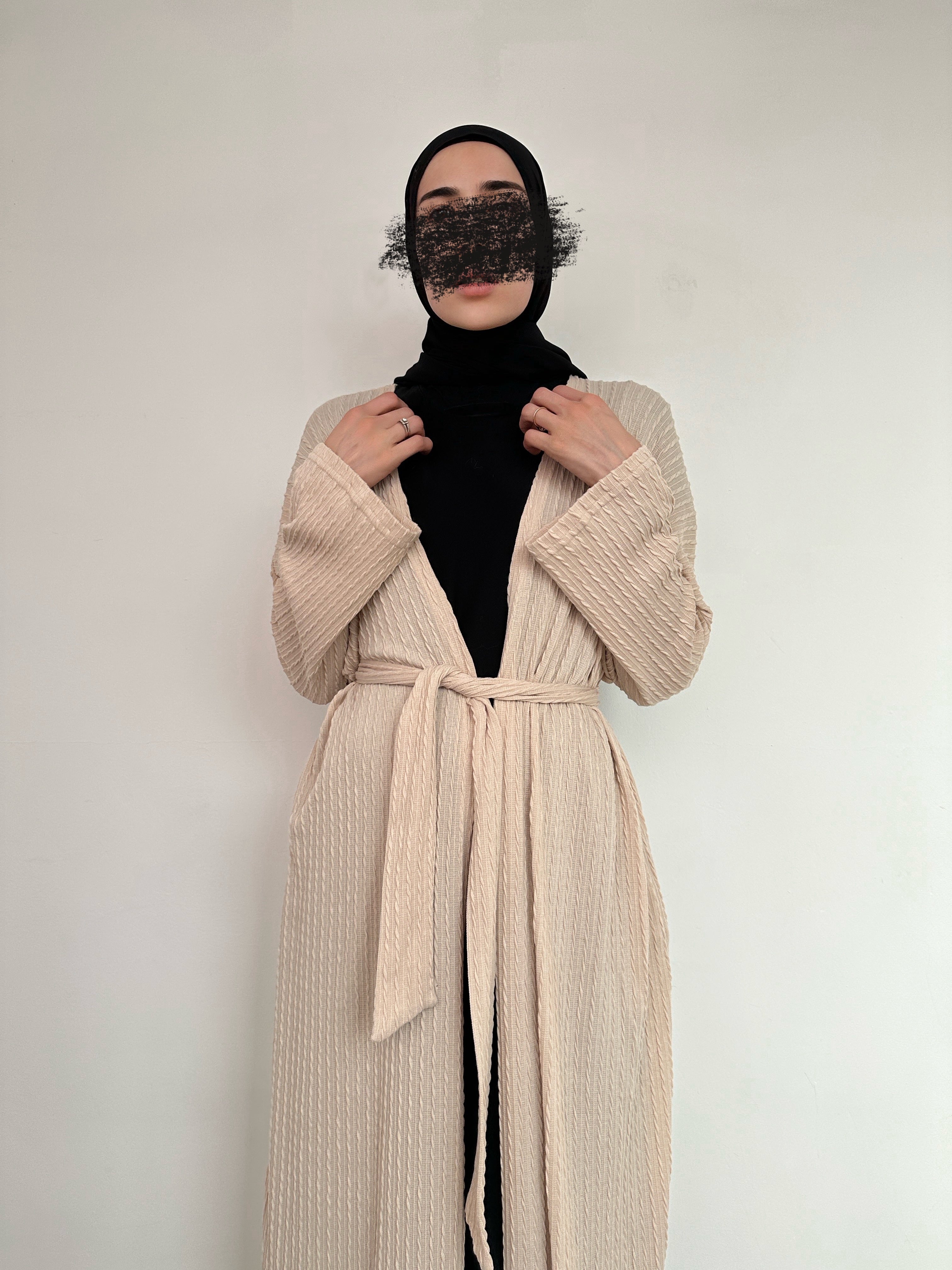 Thick kimono in textured fabric. Like a cardigan but more sophisticated! Ideal for fall, whether everyday or for occasions. Fabric pleasant to the touch.