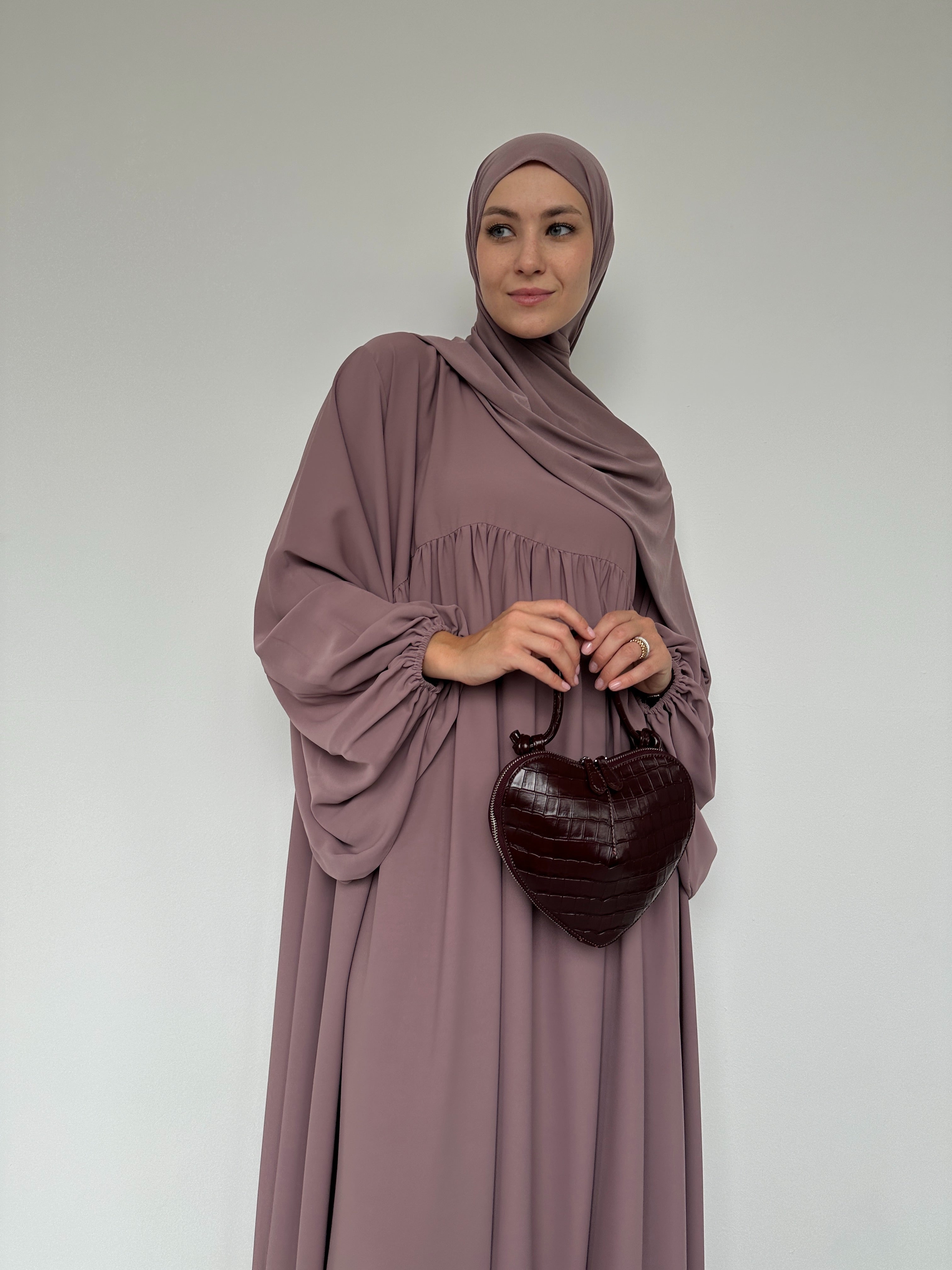 The Assia abaya combines minimalism and elegance. Fluid and soft fabric, gathered bust and airy sleeves for a refined, comfortable and feminine style.