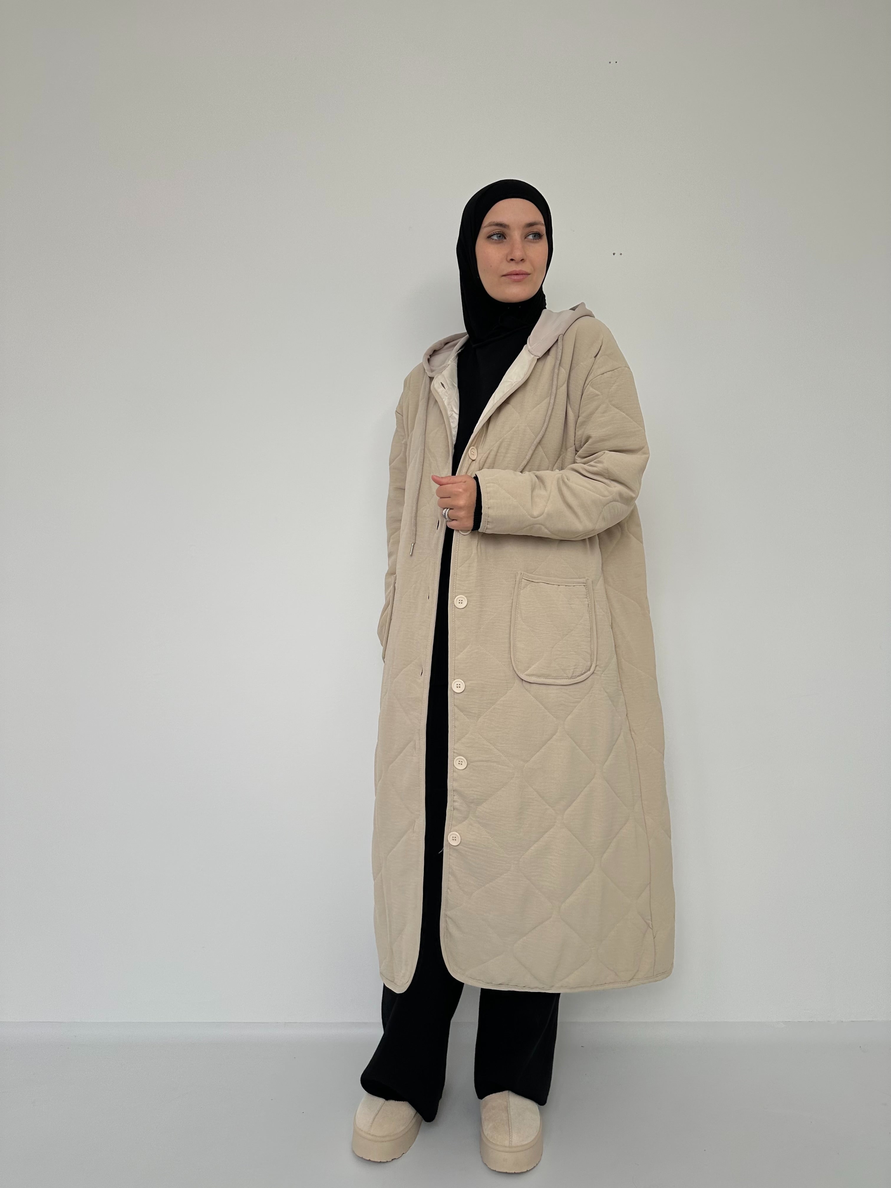 Ce manteau long matelassé allie confort et modernité. Sa coupe oversize tendance et sa longueur généreuse vous enveloppent avec élégance. Confectionné dans un tissu matelassé doux, il est la pièce idéale pour affronter la mi-saison avec style.