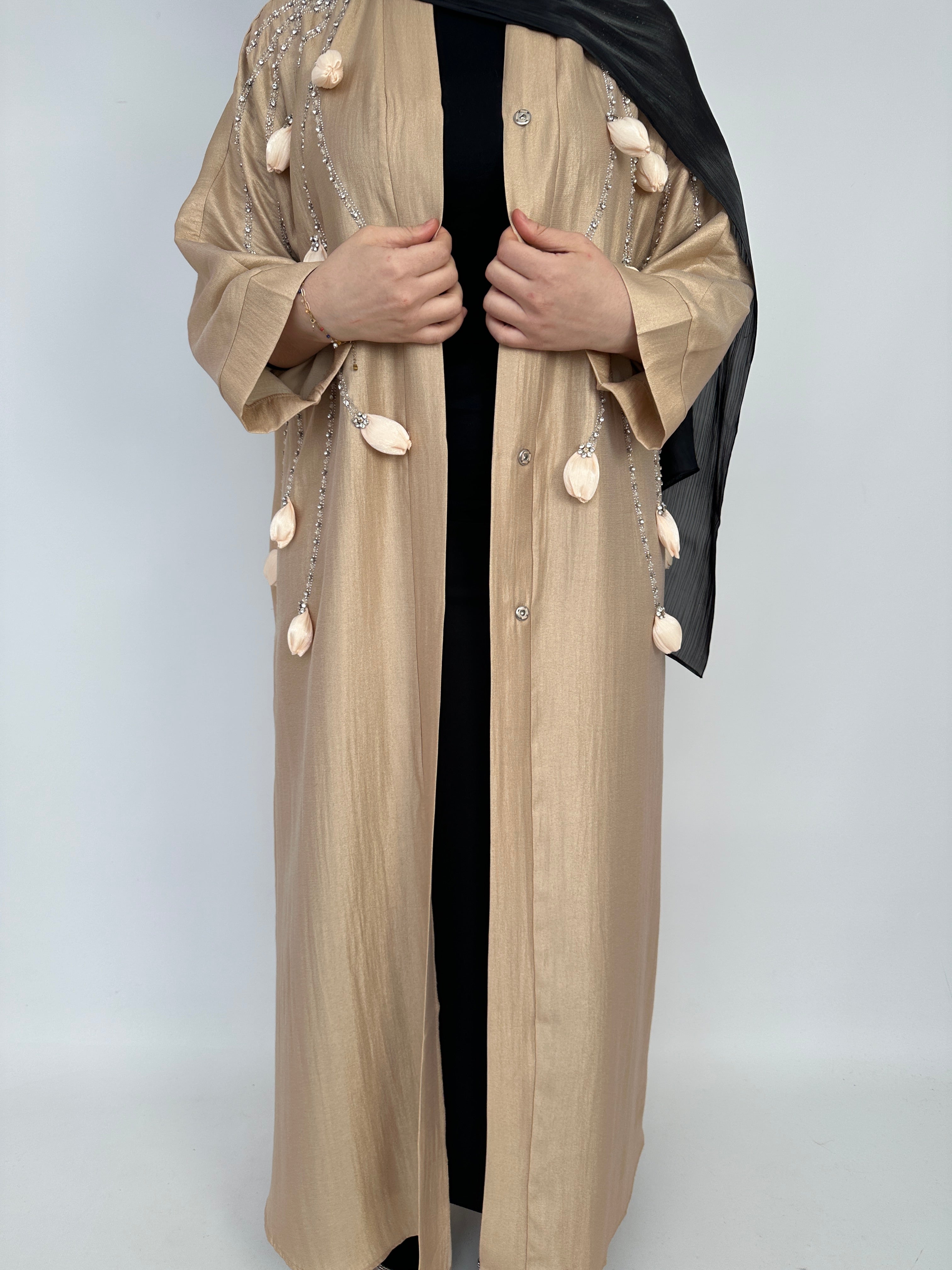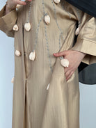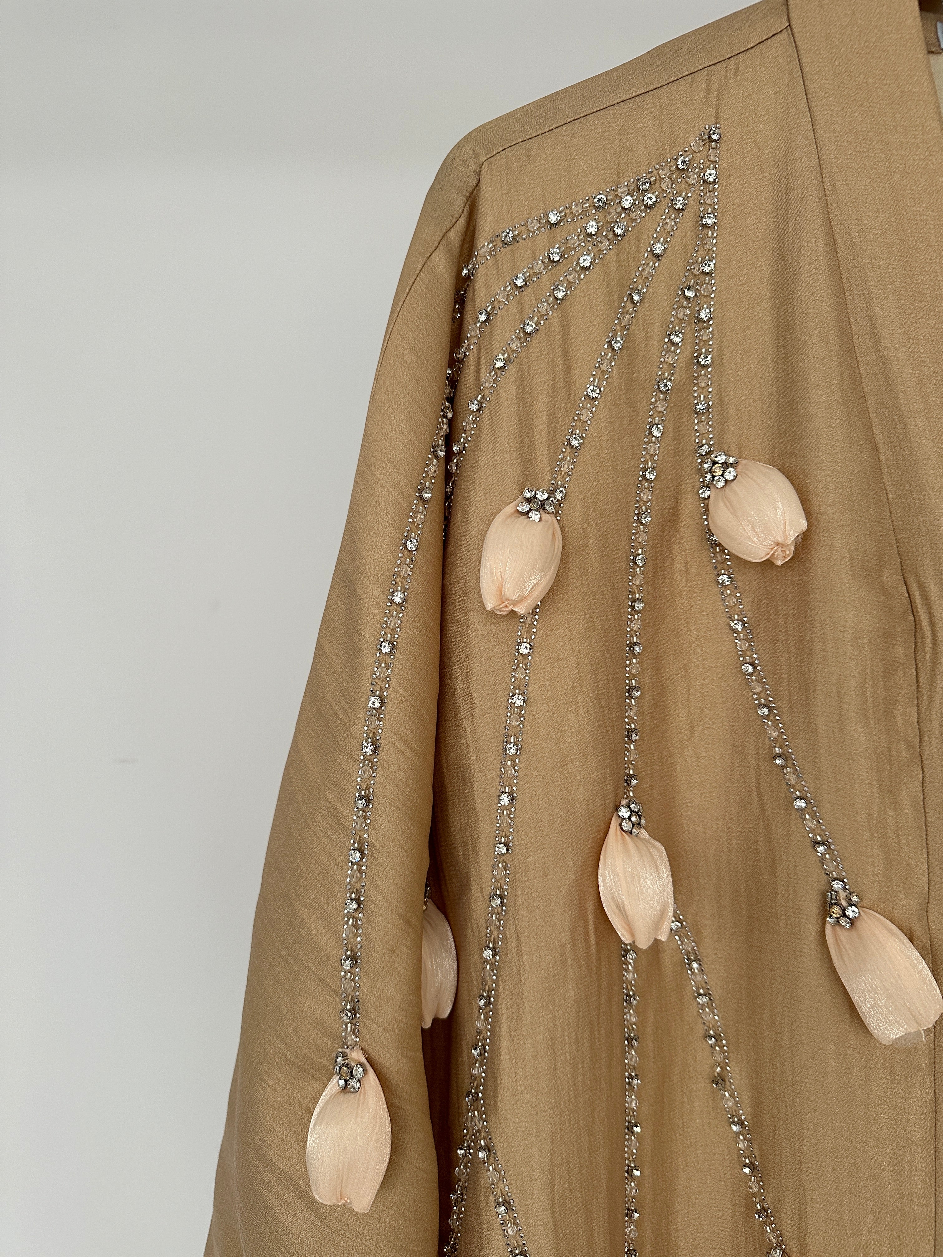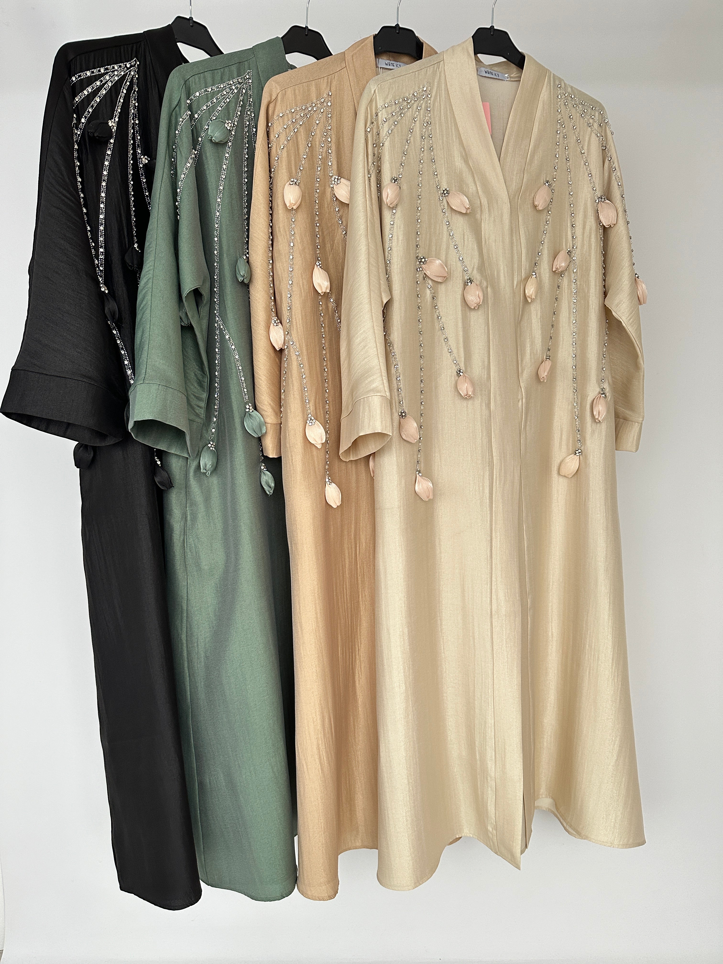 This elegant kimono features decorative buttons and a flowing design. Perfect for special occasions or sophisticated everyday wear, it combines comfort and sophistication.