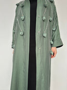 This elegant kimono features decorative buttons and a flowing design. Perfect for special occasions or sophisticated everyday wear, it combines comfort and sophistication.