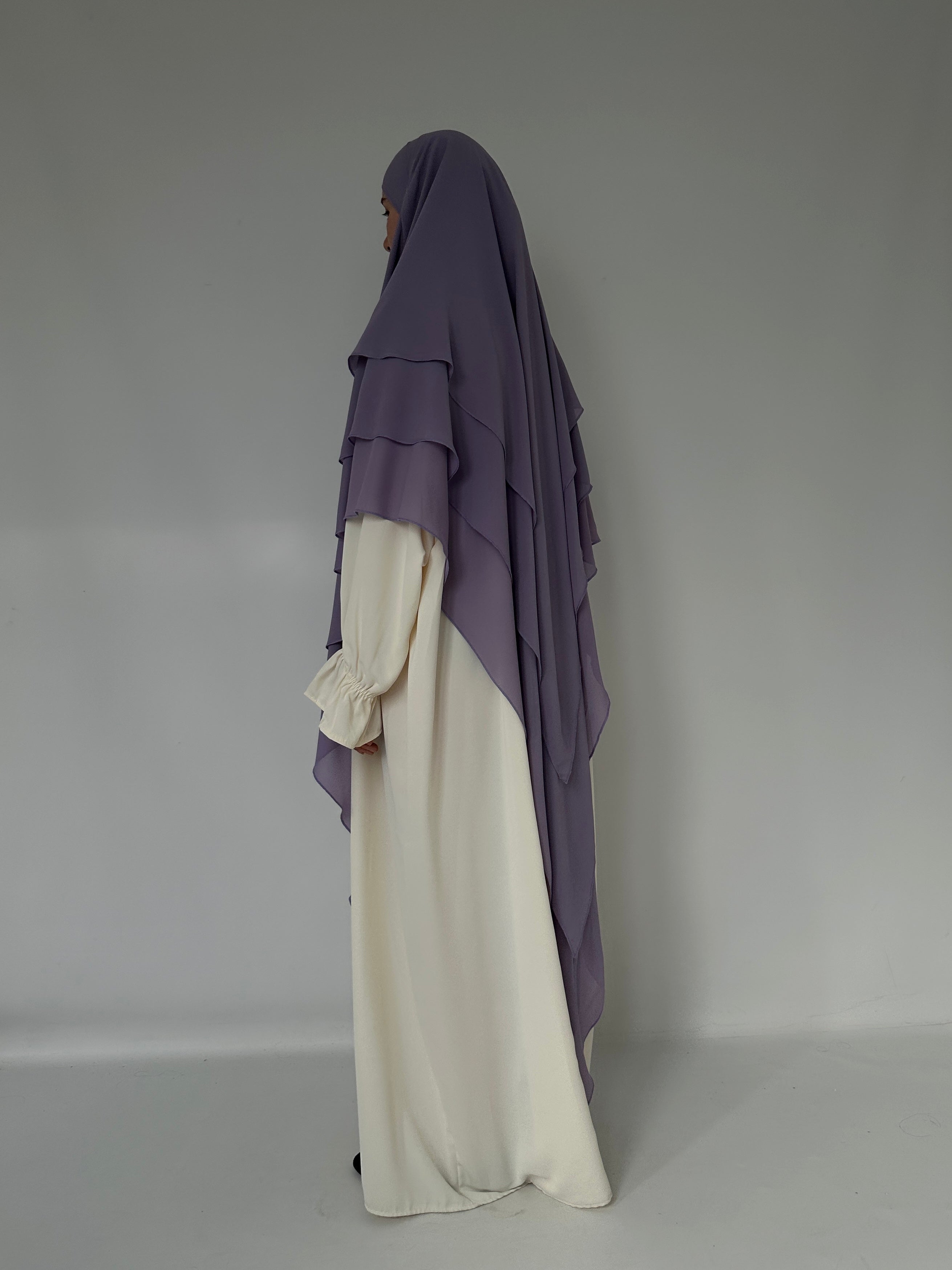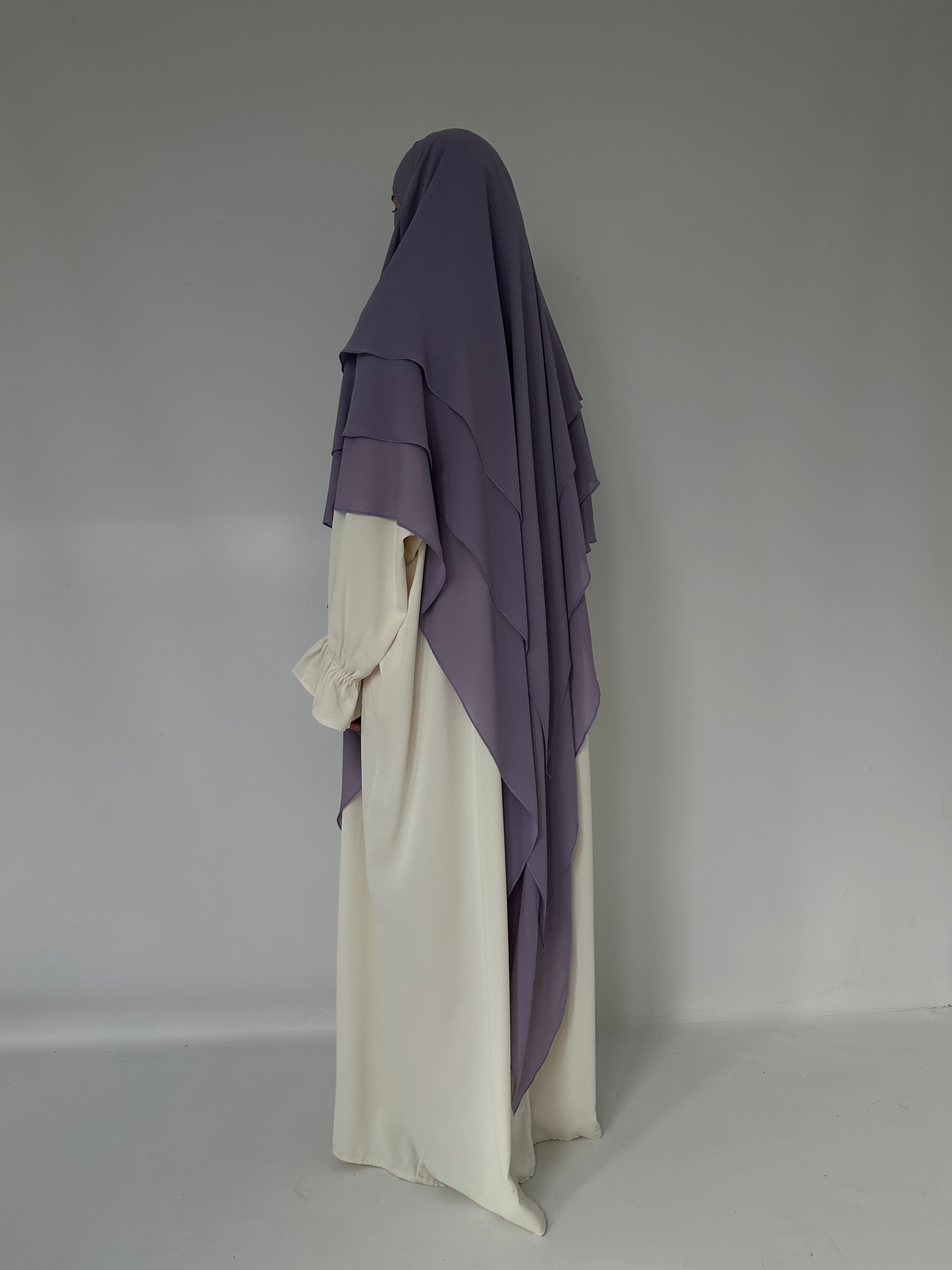 Three-layer lavender muslin khimar