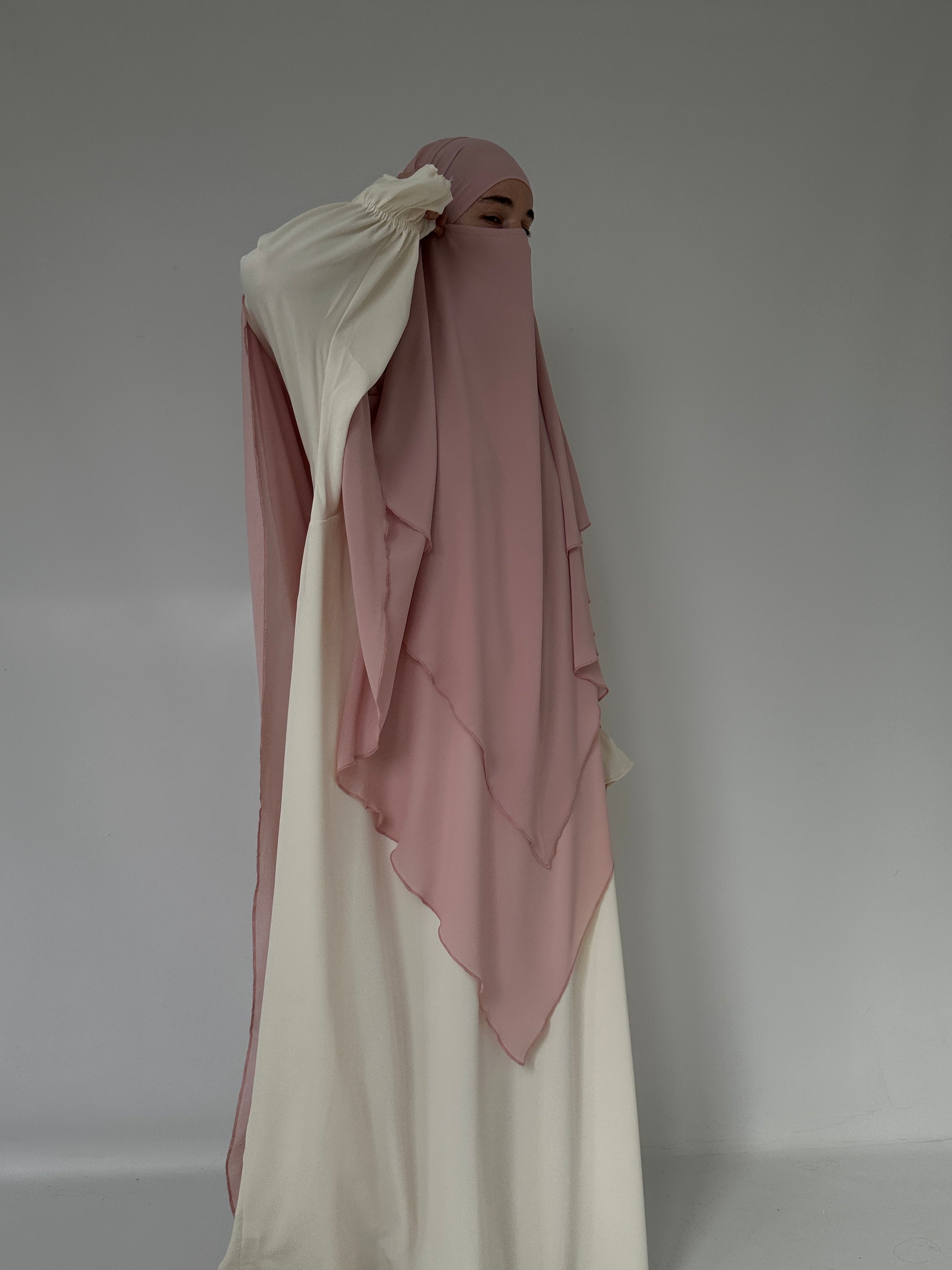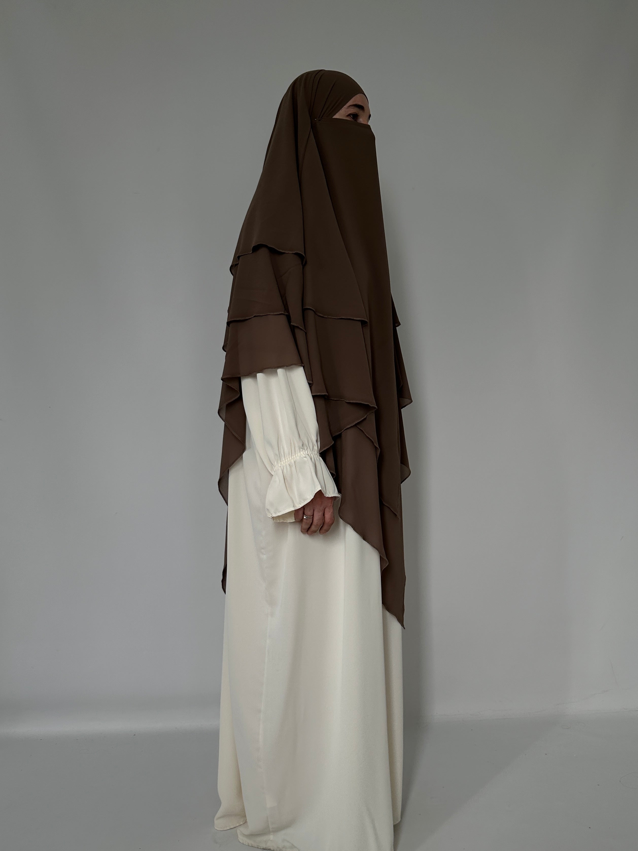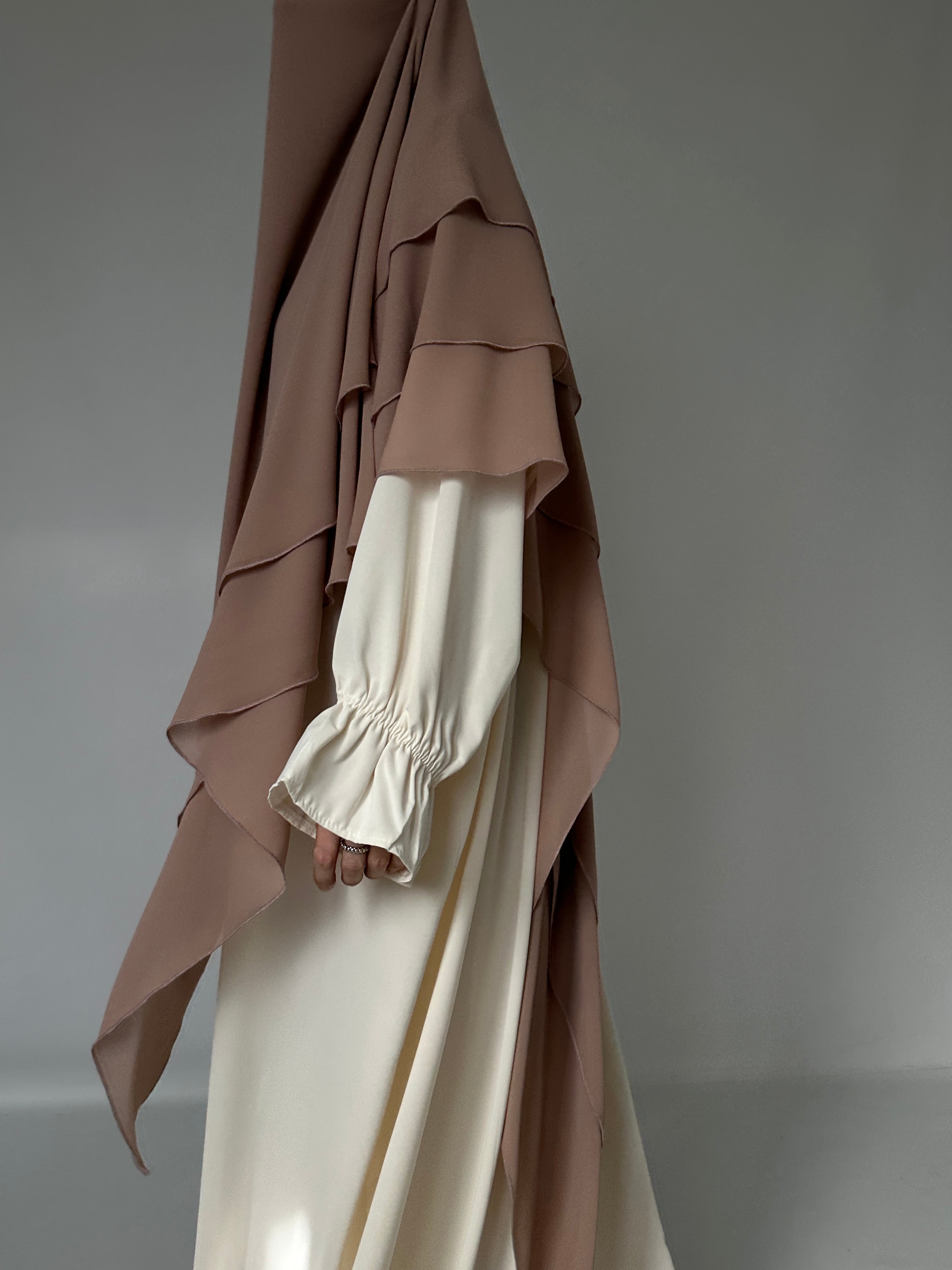 KHIMAR THREE LAYERS IN CREAM MUSLIN