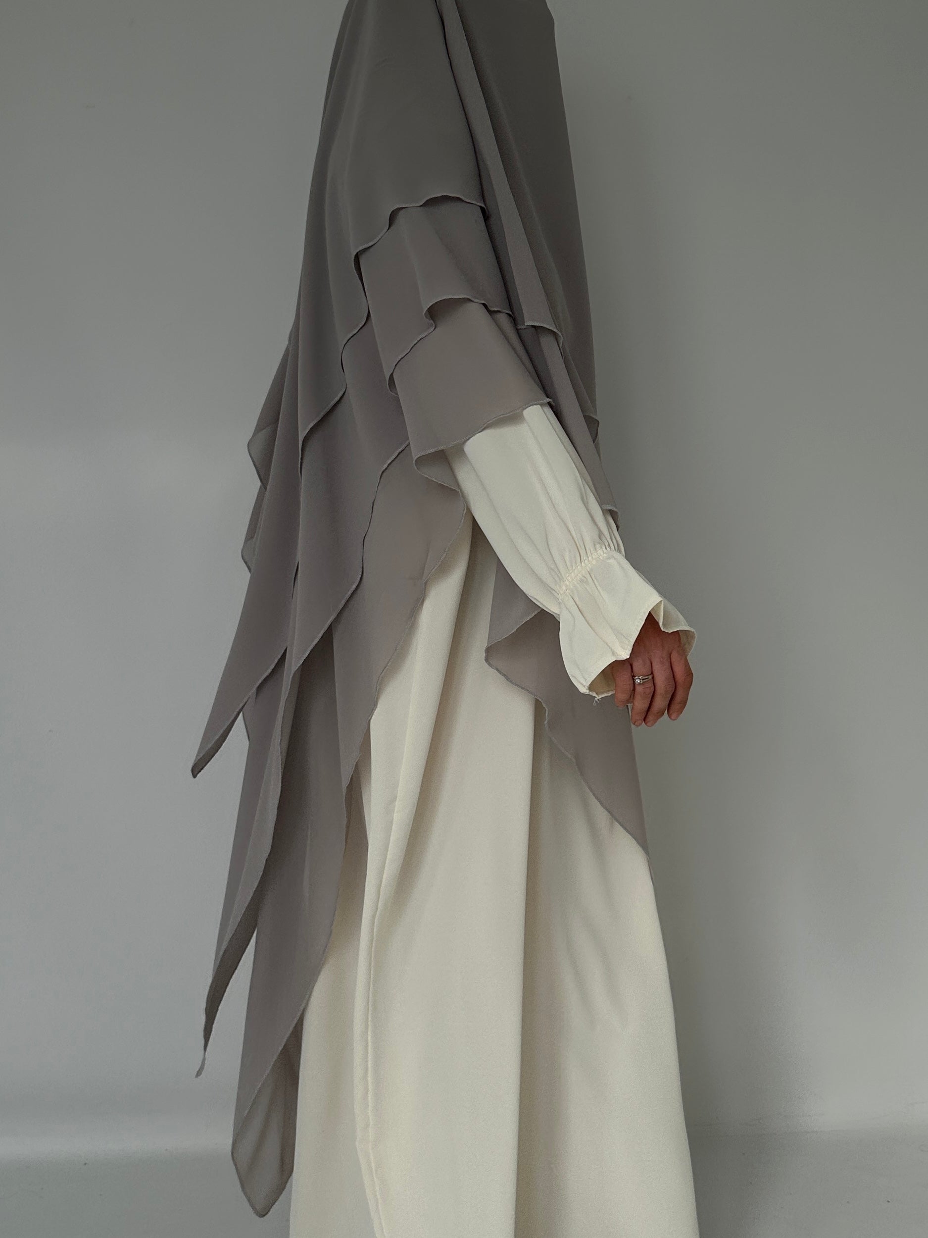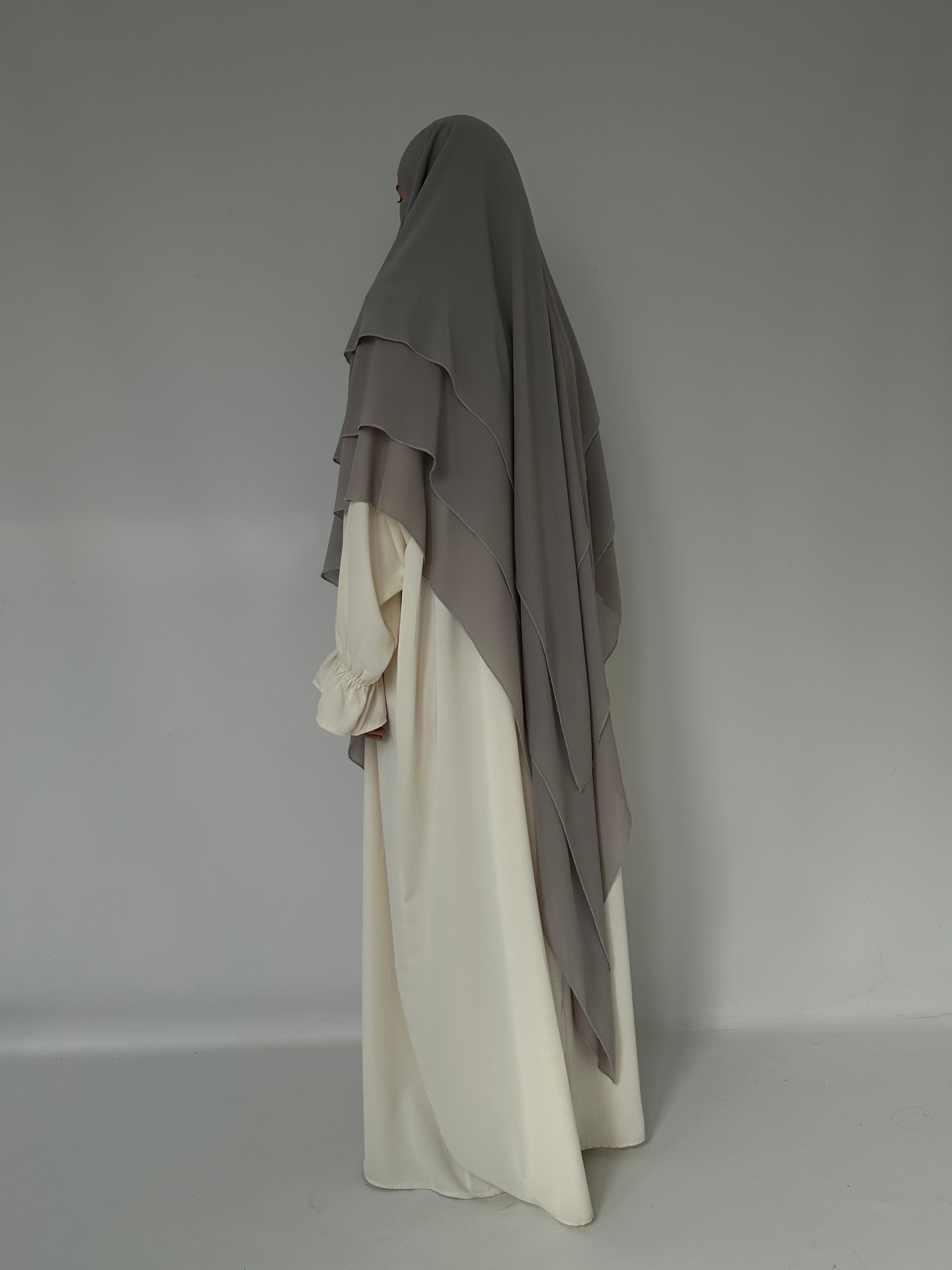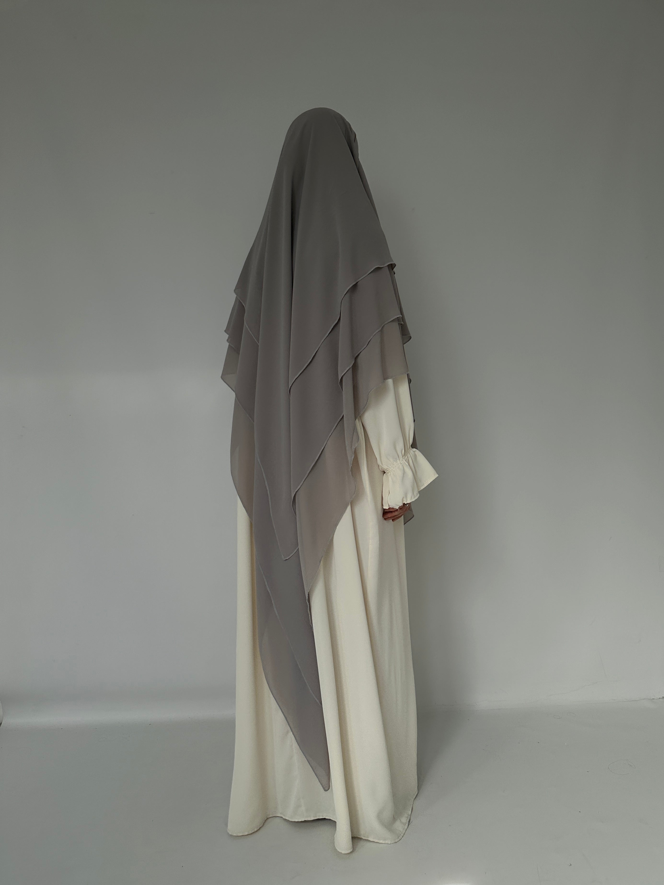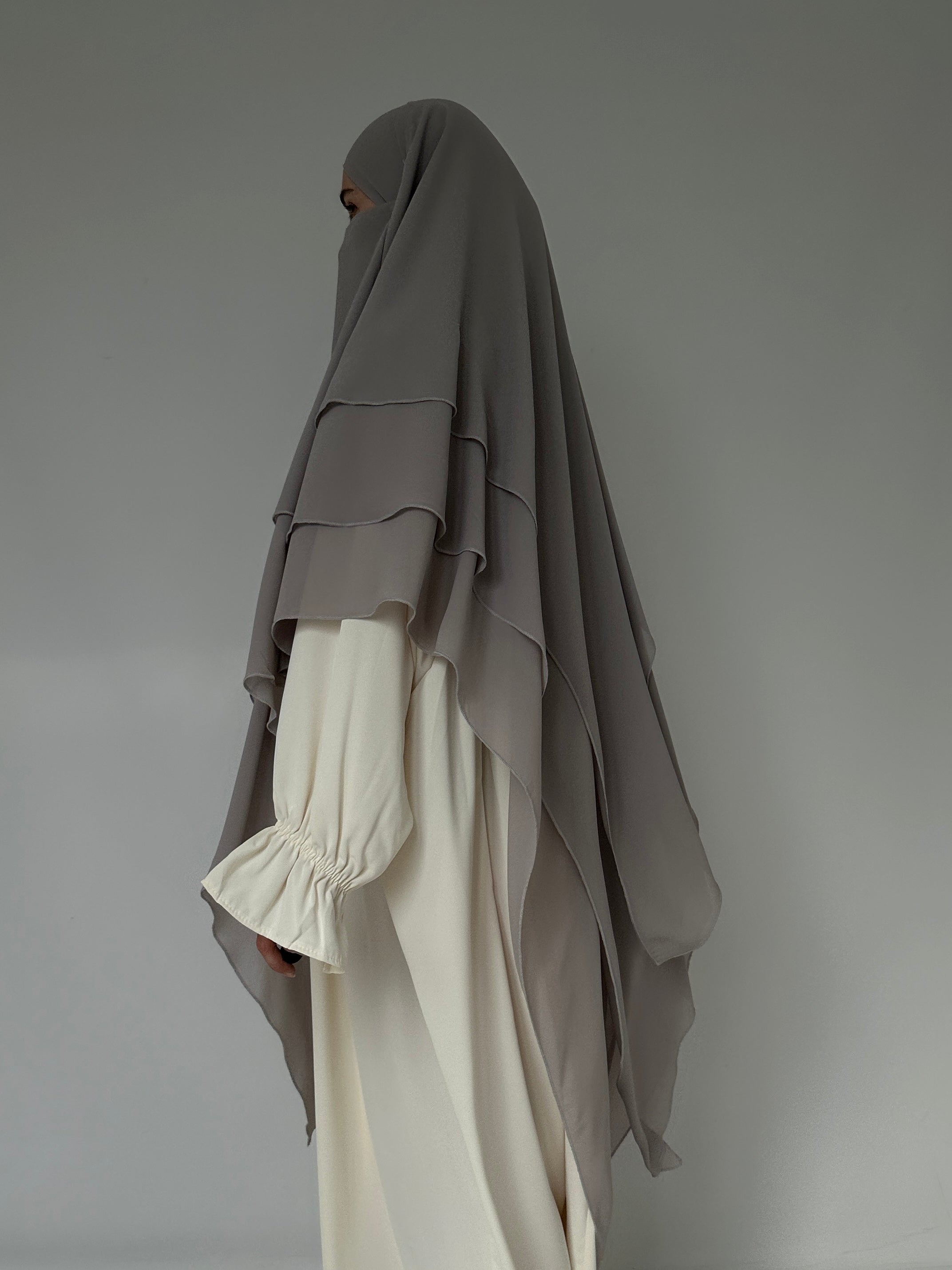 KHIMAR THREE-VILES IN GREY MUSLIN