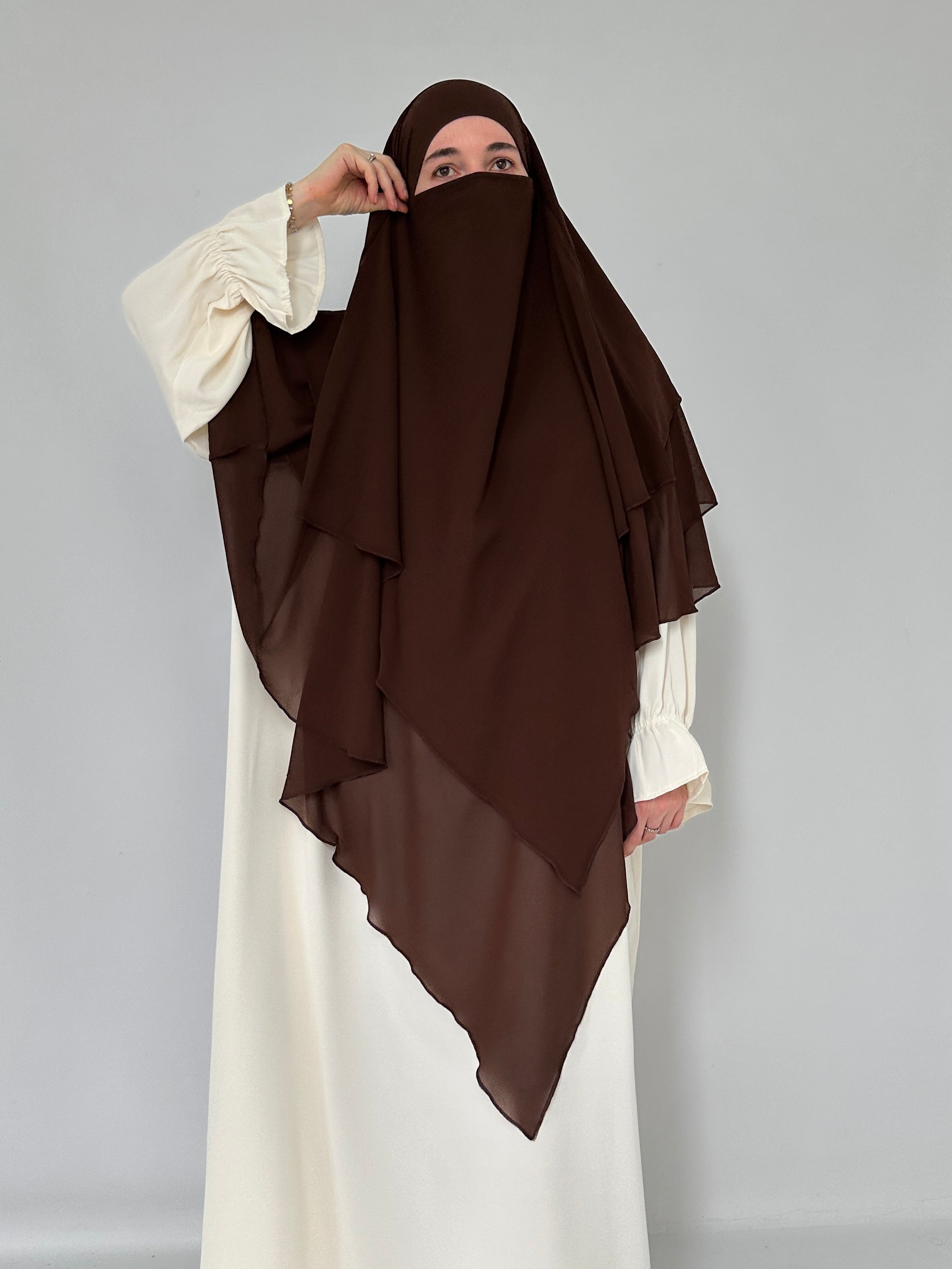 KHIMAR THREE-VIELD CHOCOLATE MUSLIN