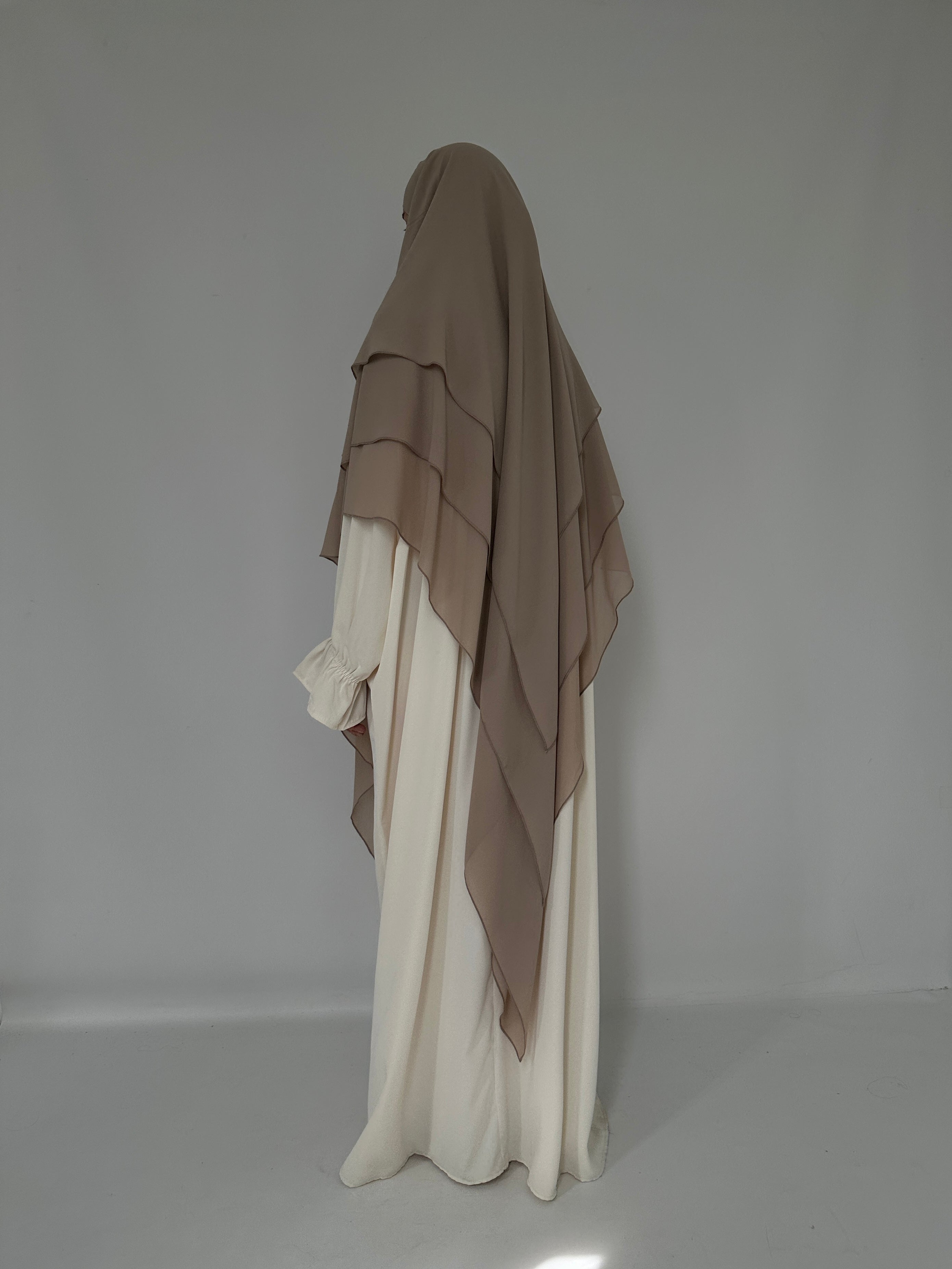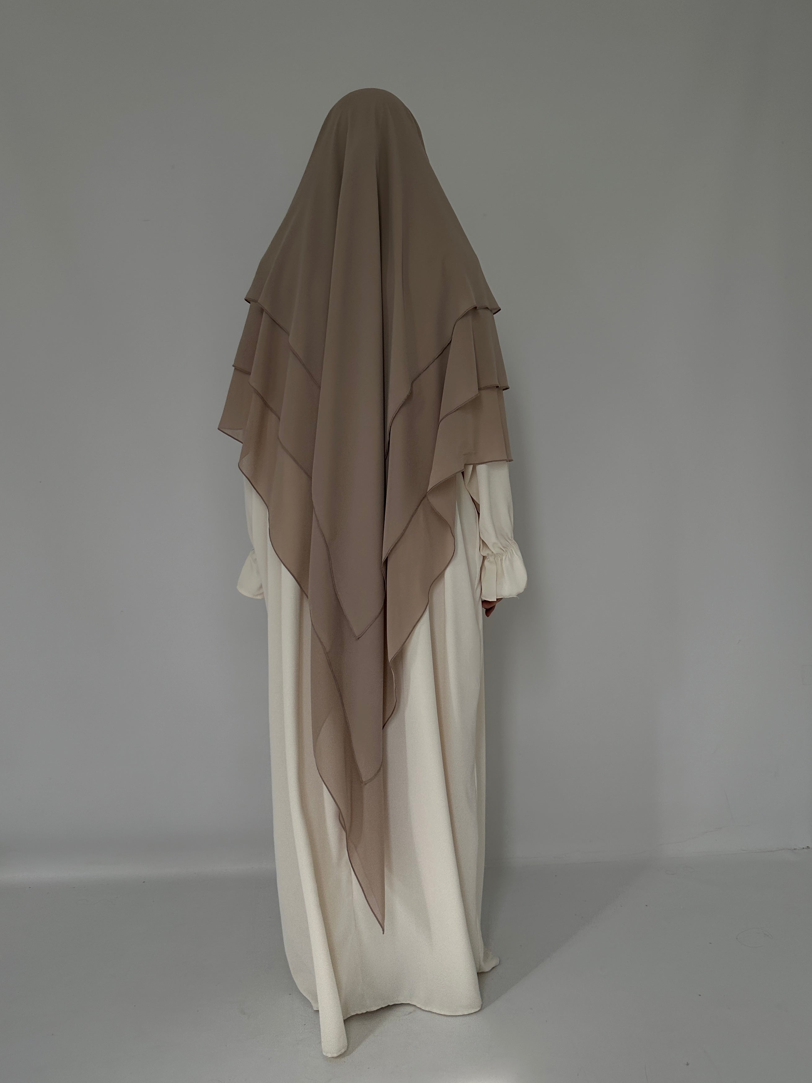 KHIMAR THREE-VIELD TAUPE MUSLIN KHIMAR