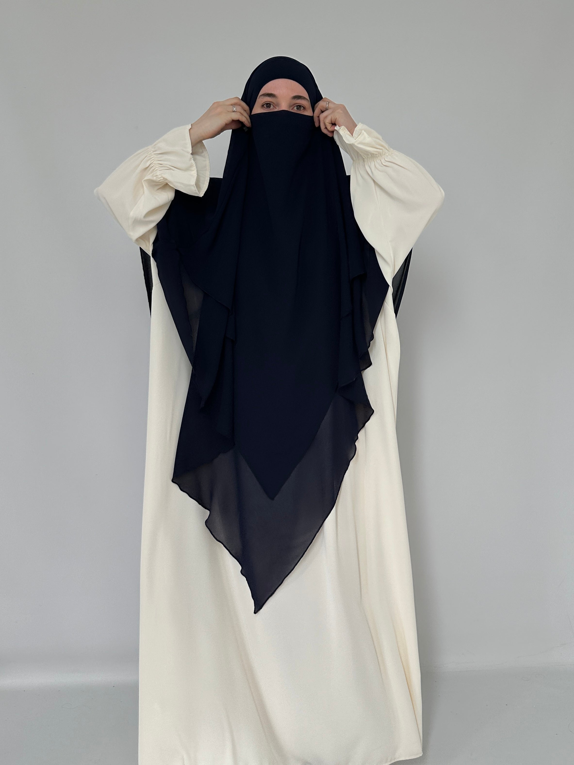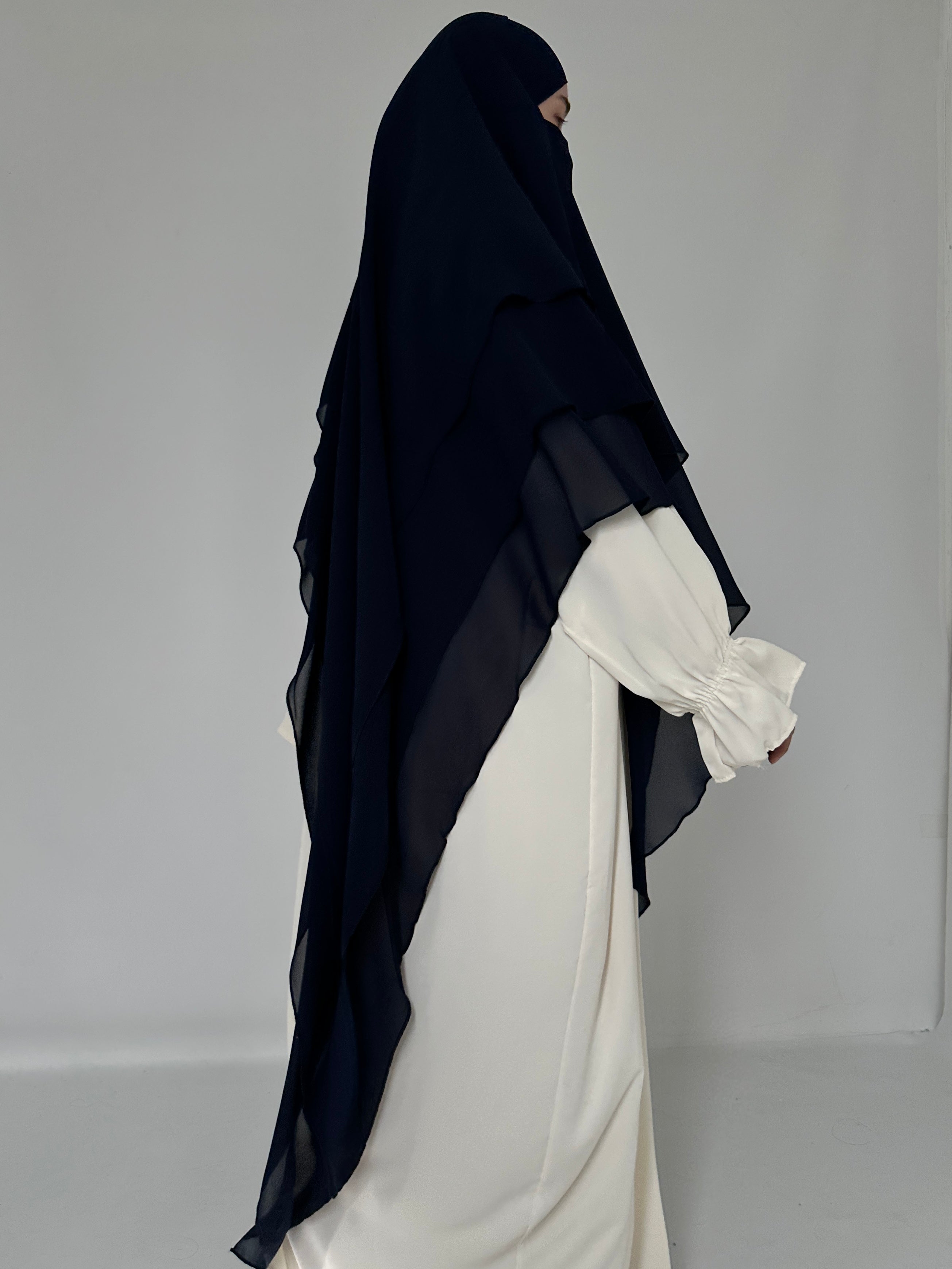 KHIMAR THREE-VILES IN NAVY BLUE MUSLIN