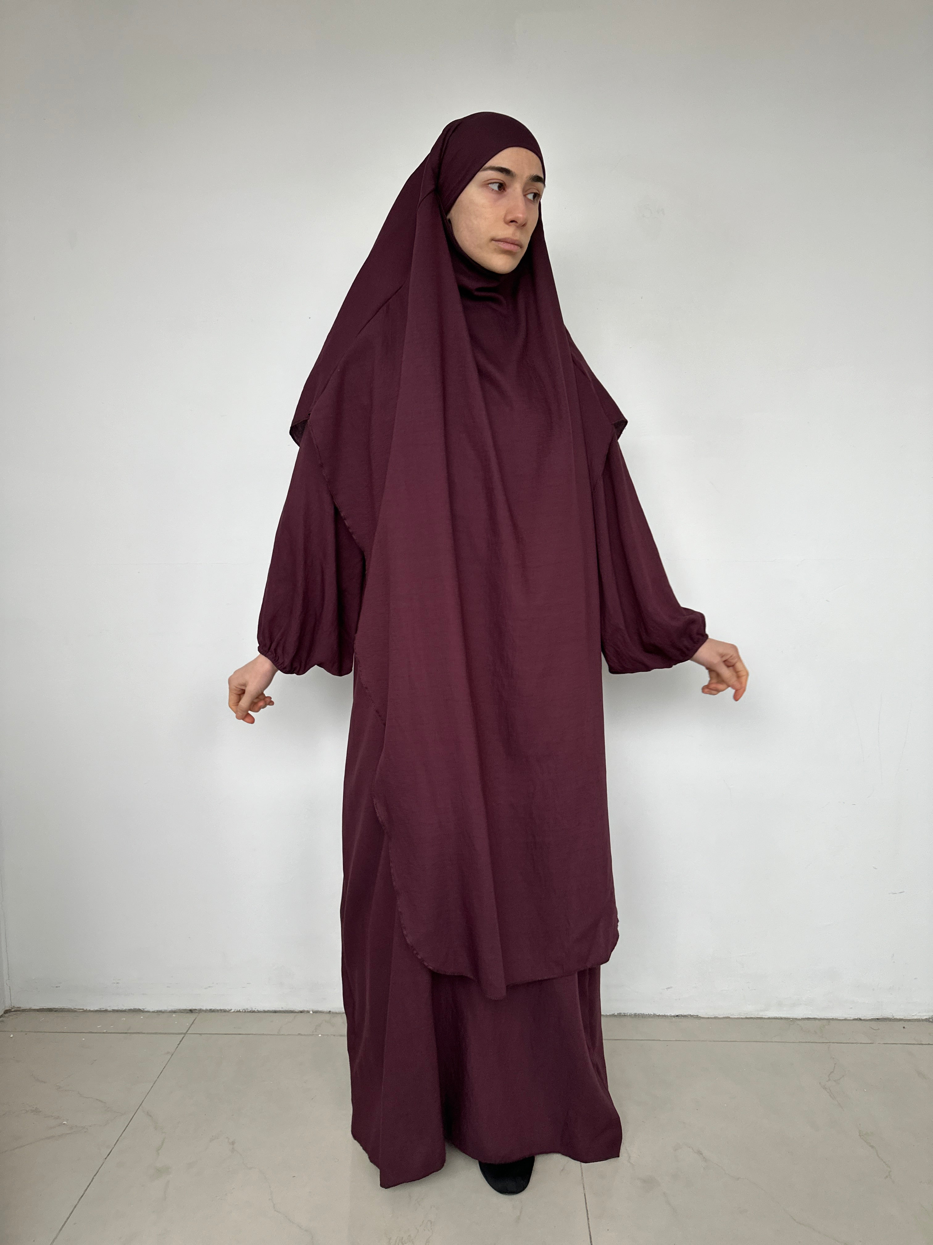 KHIMAR THREE-VIELD BURGUNDY MOUSSELINEN