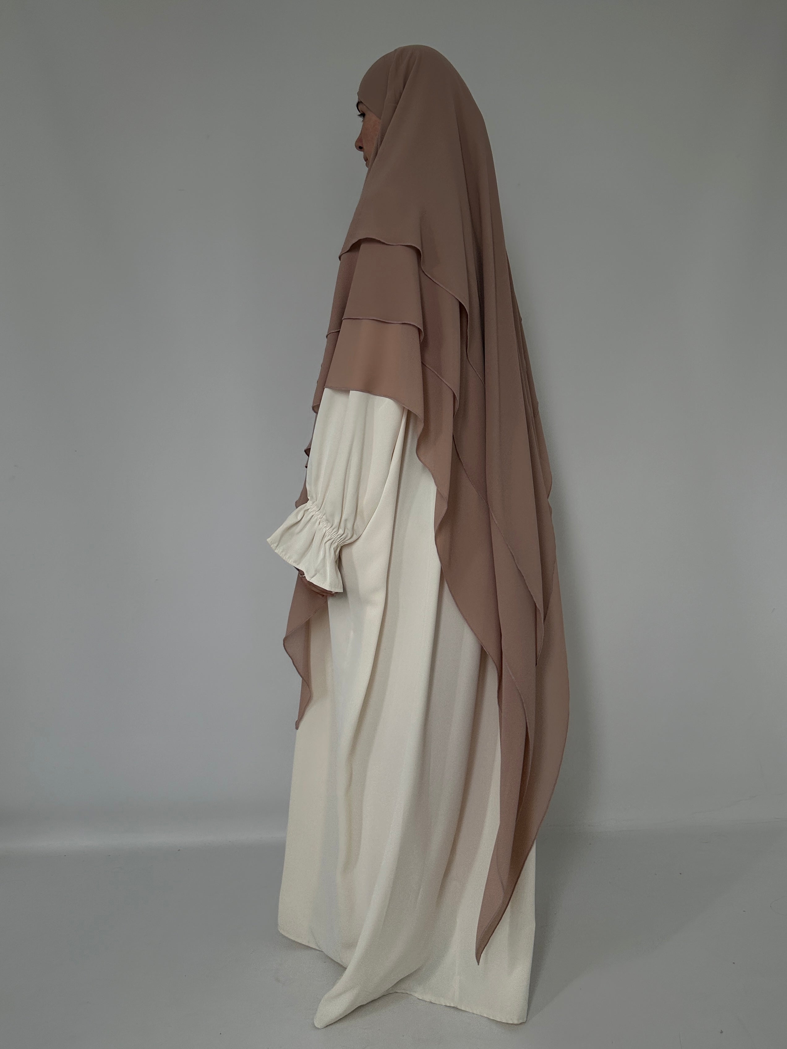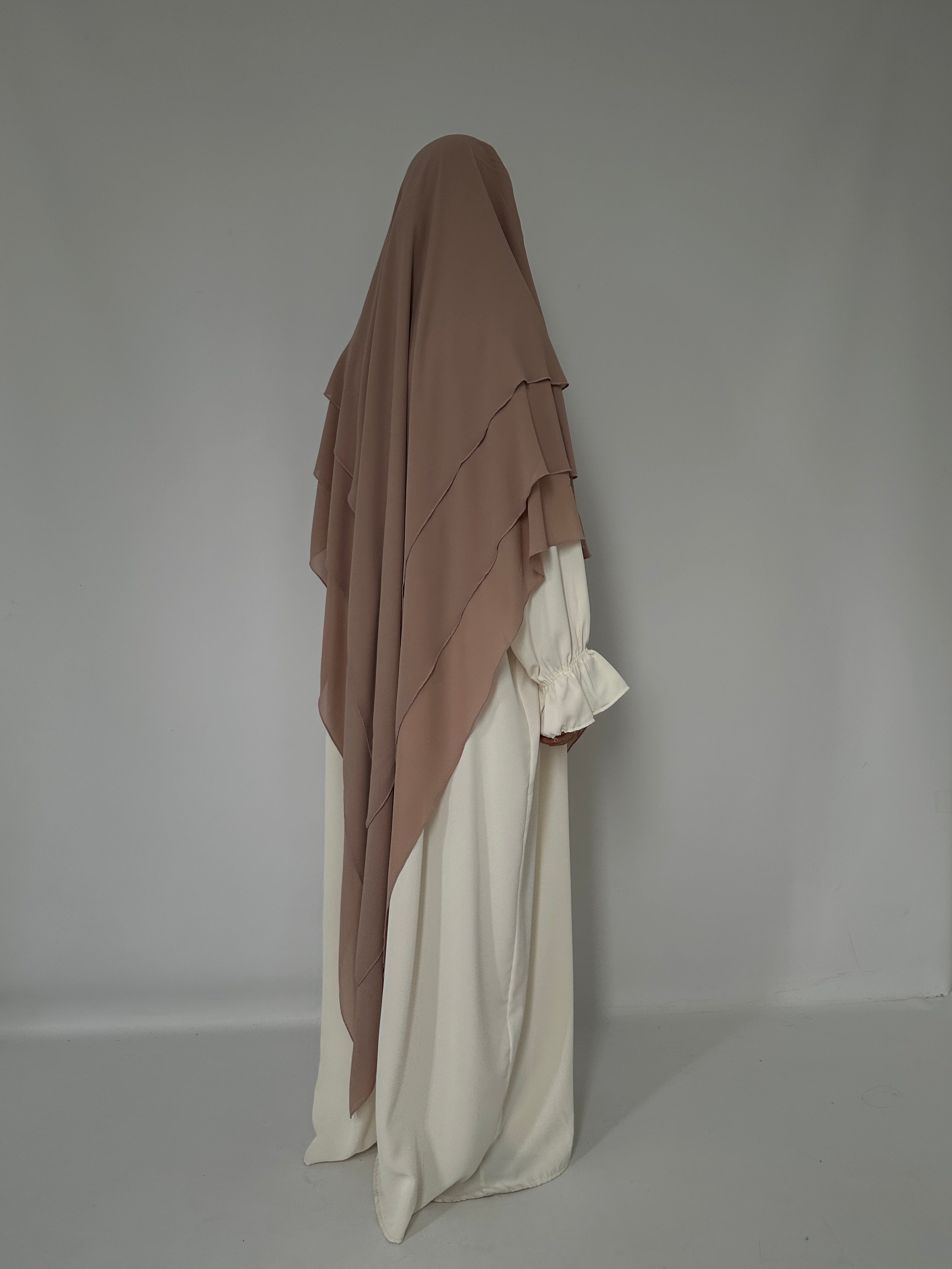Three-layer khimar in beige-pink muslin