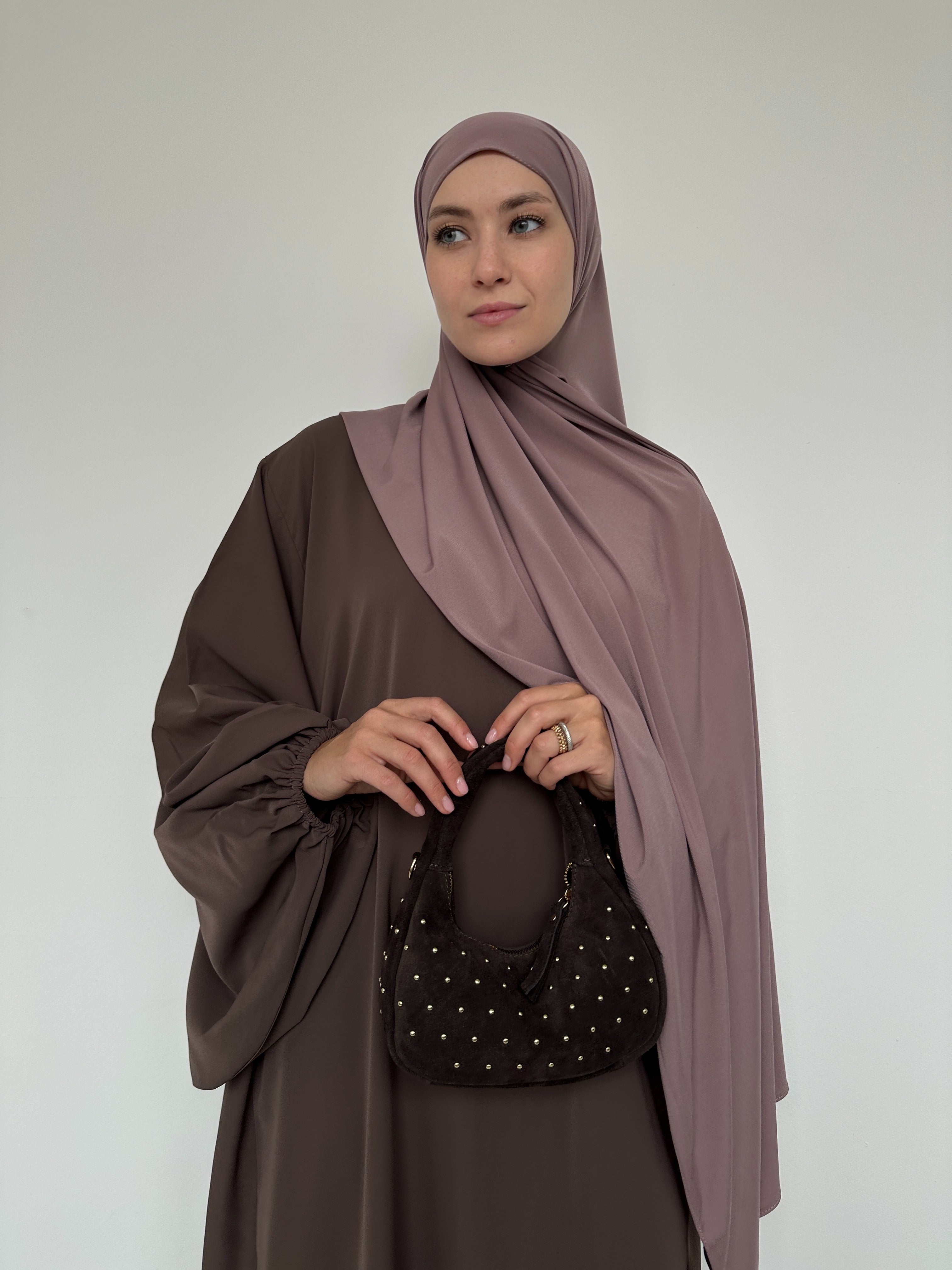 The Maïssa abaya combines minimalism and elegance. Fluid and soft fabric, gathers at the waist and airy sleeves for a refined, comfortable and feminine style.