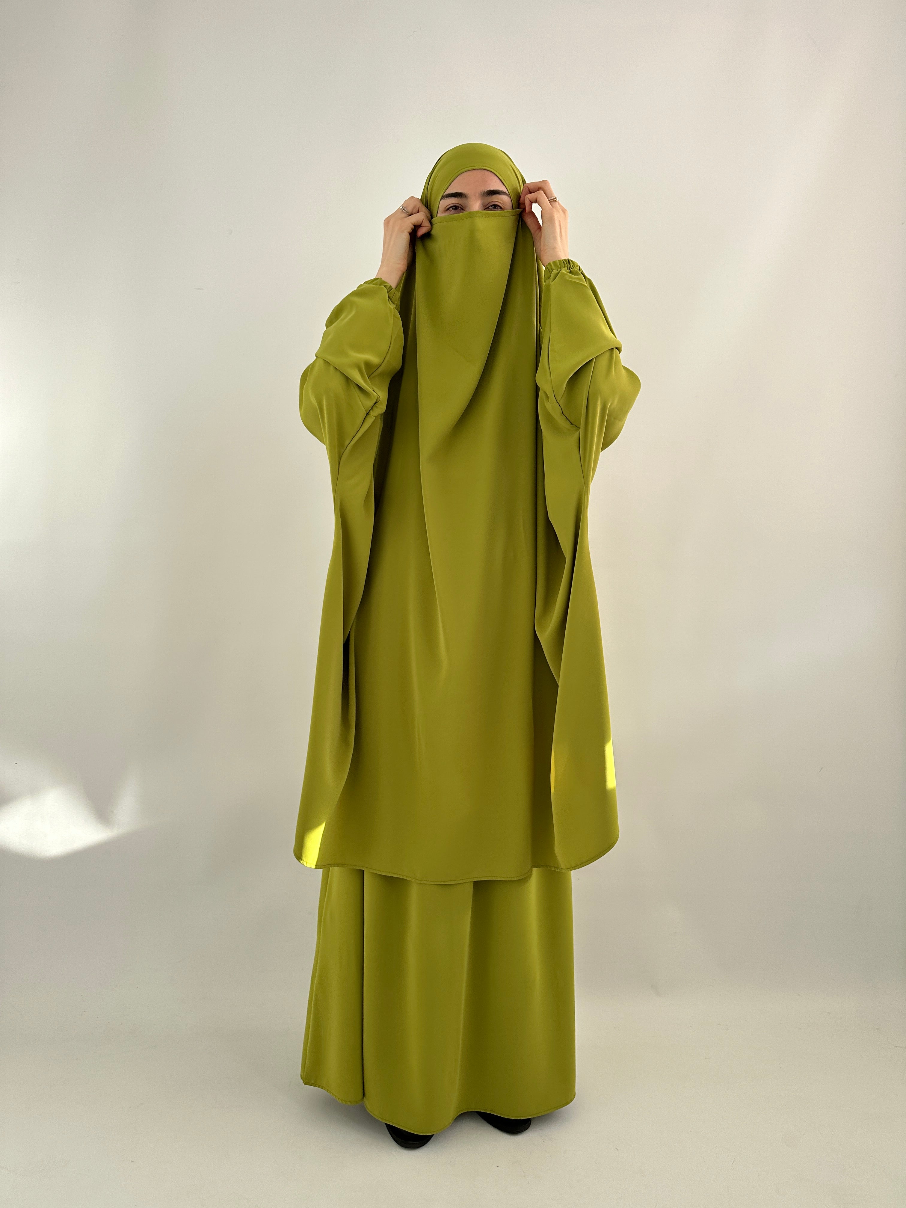 TWO-PIECE MEDINA SILK JILBAB OLIVE