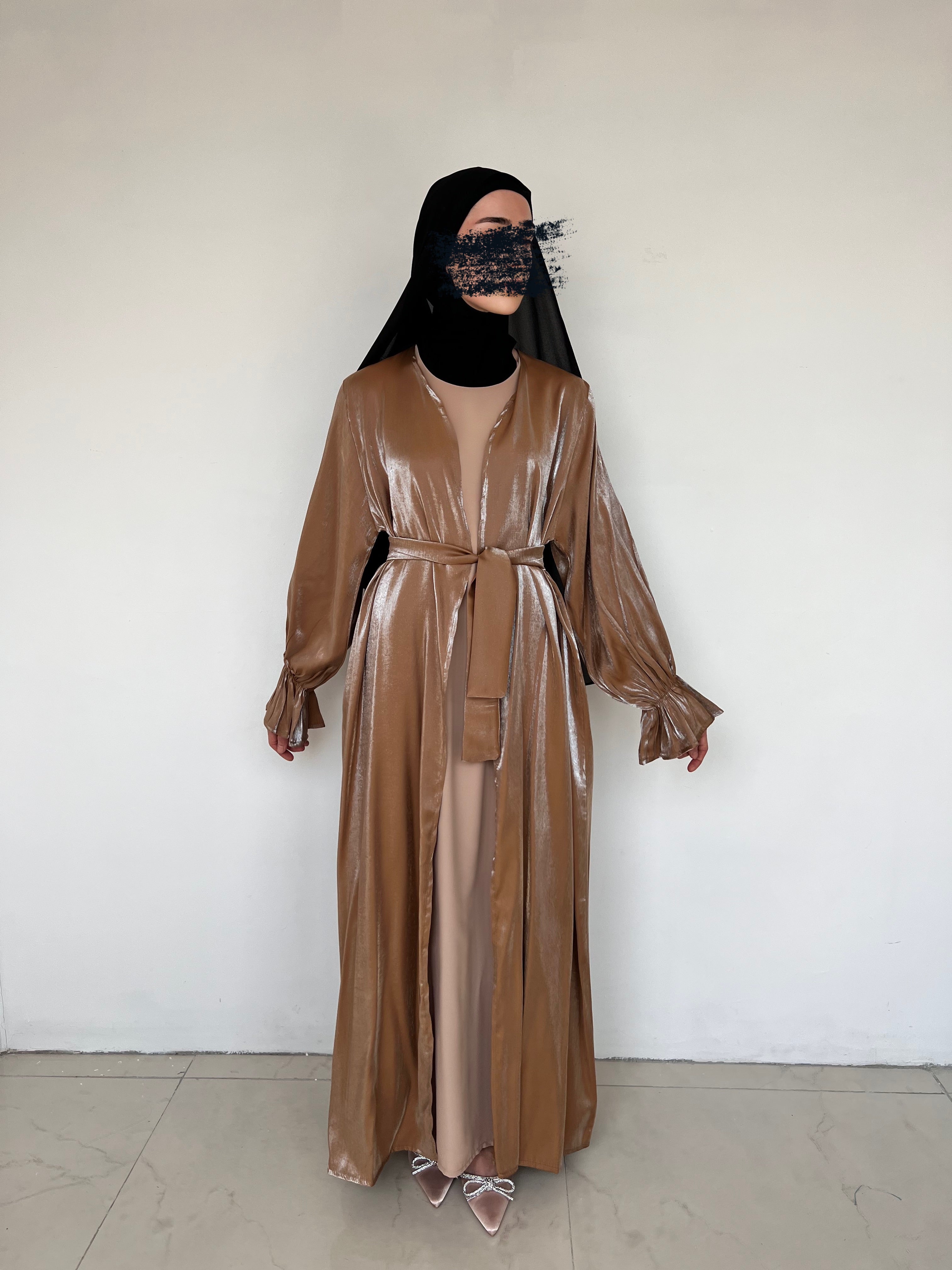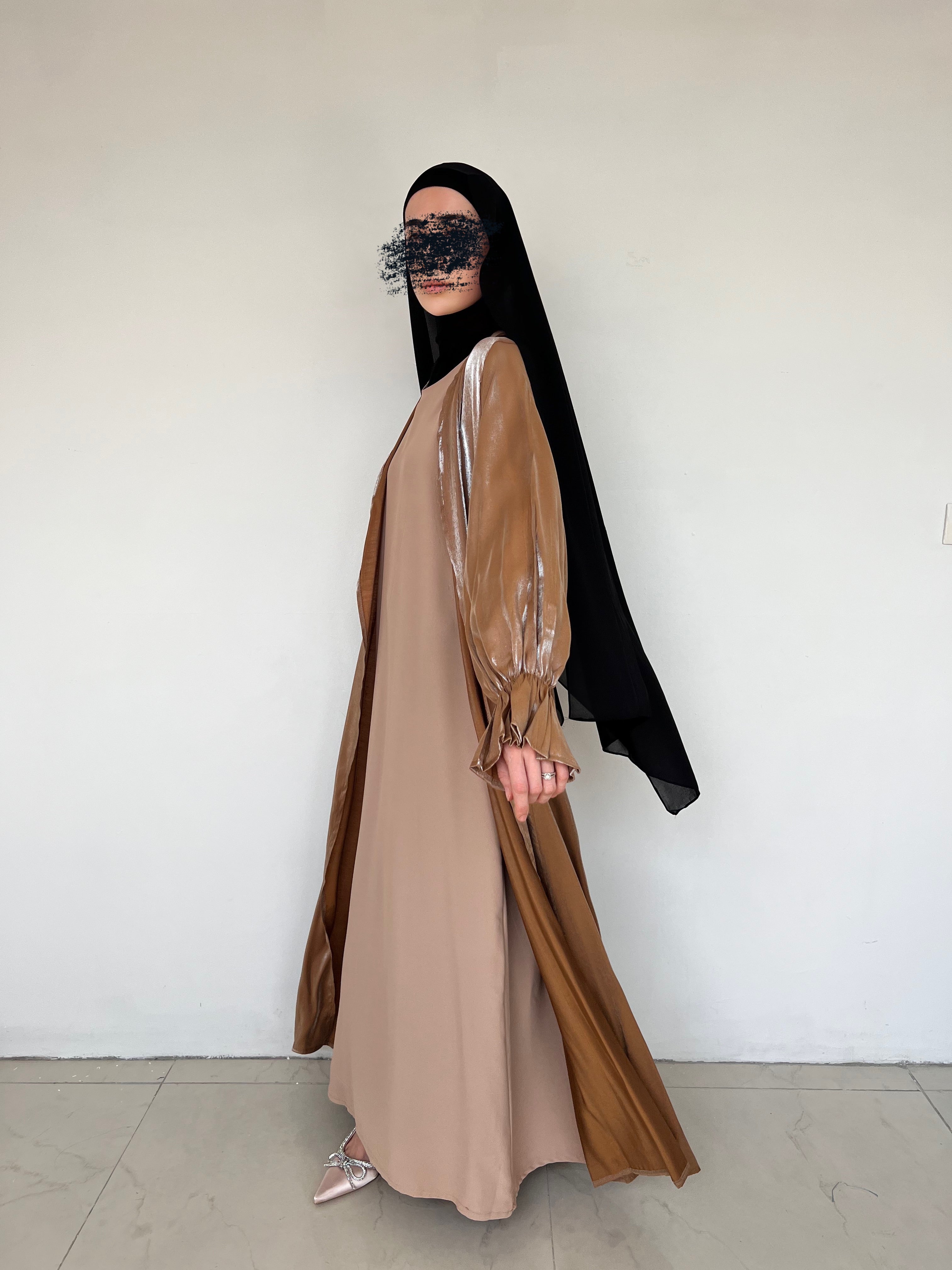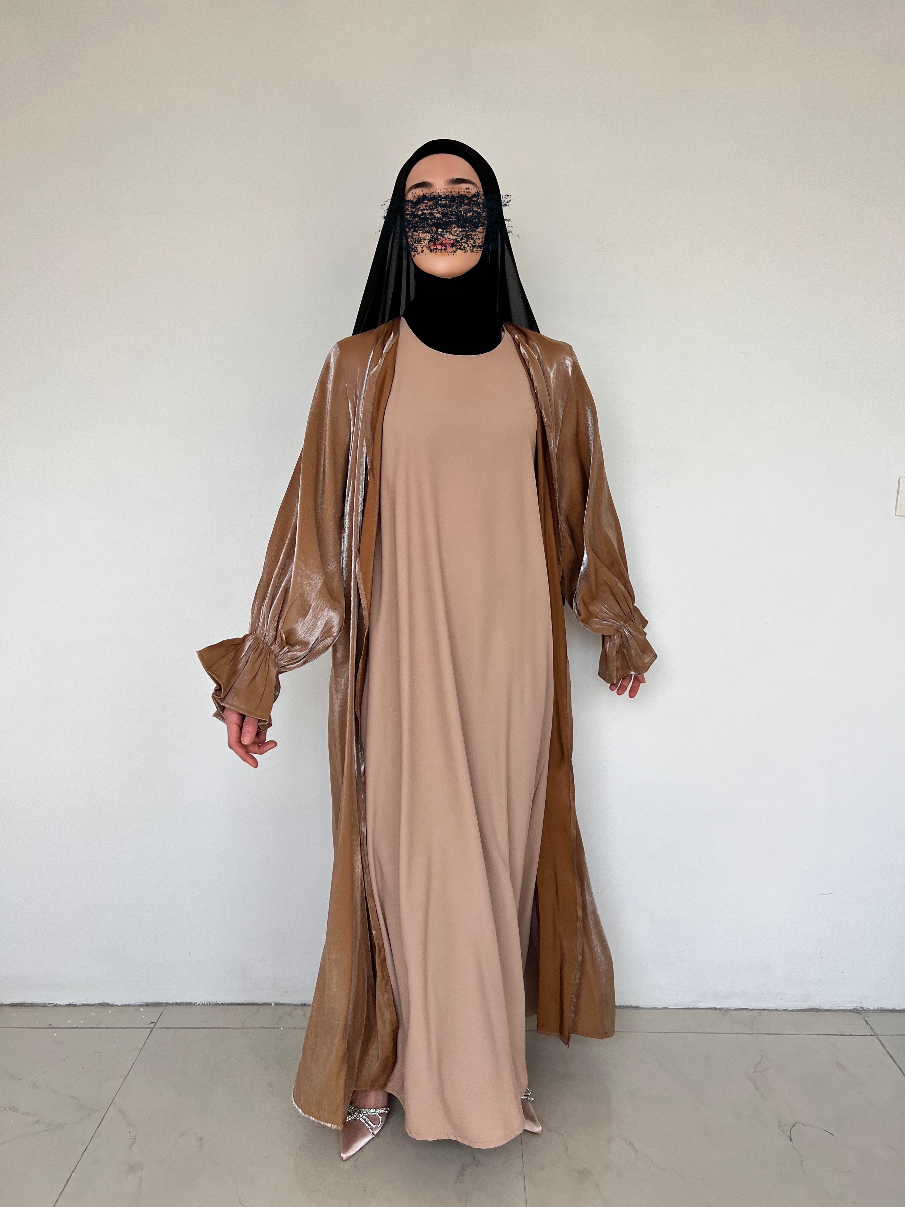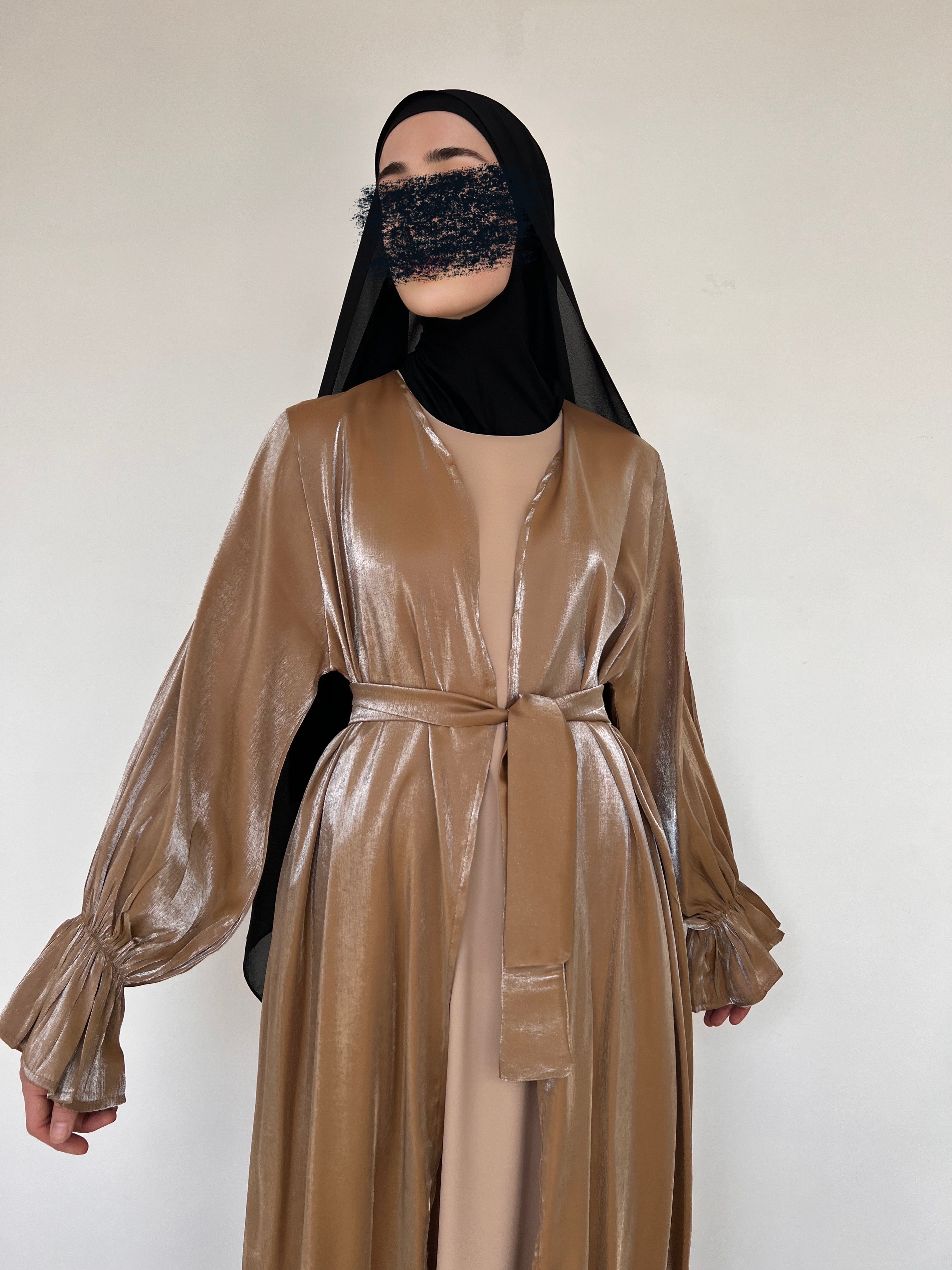 Light and elegant organza kimono, ideal for special occasions or evenings. Made from a fabric type of transparent and delicate fabrics, satin effect, balloon sleeves that add a touch of volume and movement to the set.