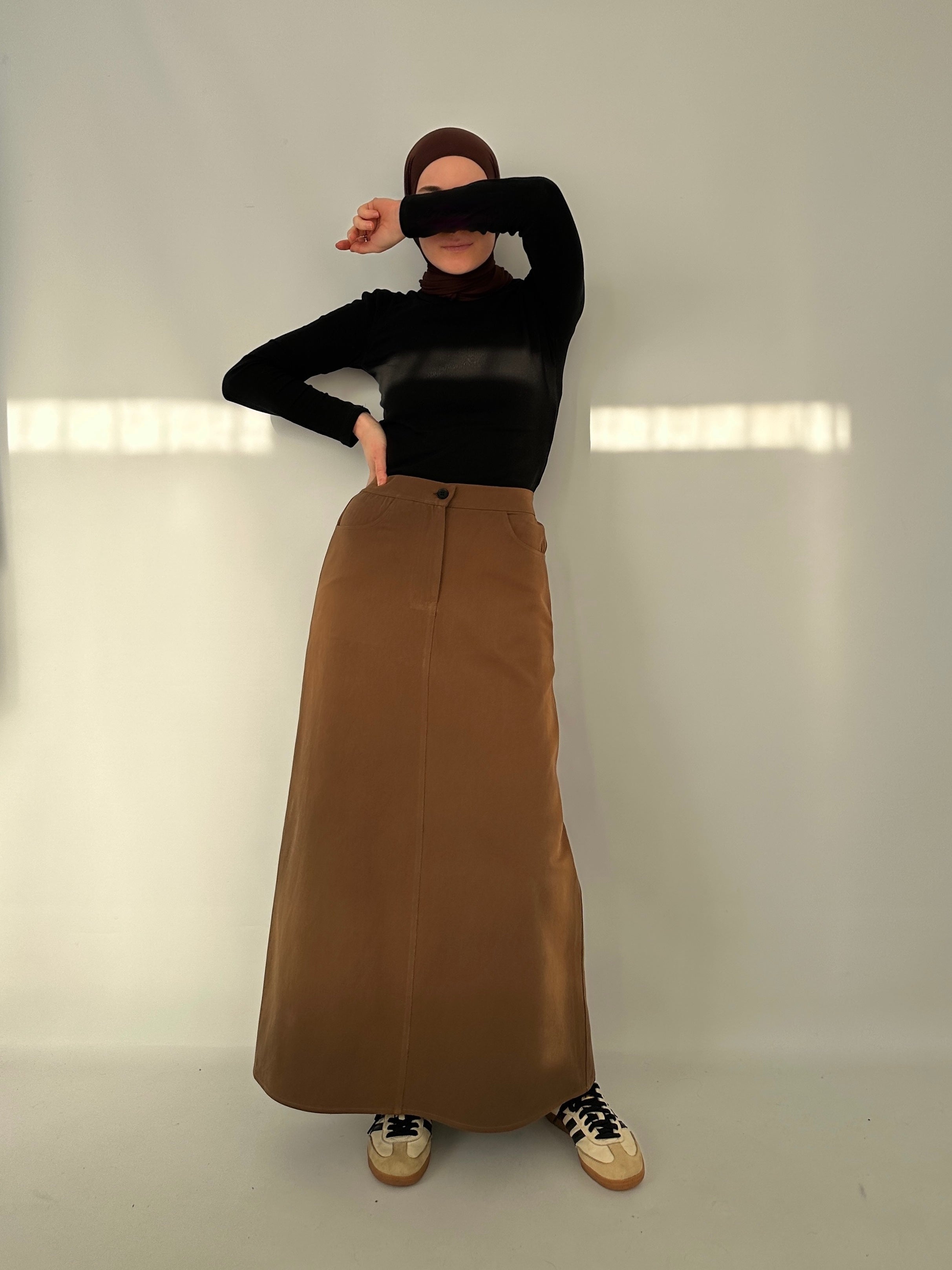 Cette jupe longue en jean coton offre un look à la fois chic et décontracté. Sa coupe classique et ses poches pratiques en font un choix idéal pour le quotidien. Associez-la à vos hauts préférés pour un style intemporel et confortable.